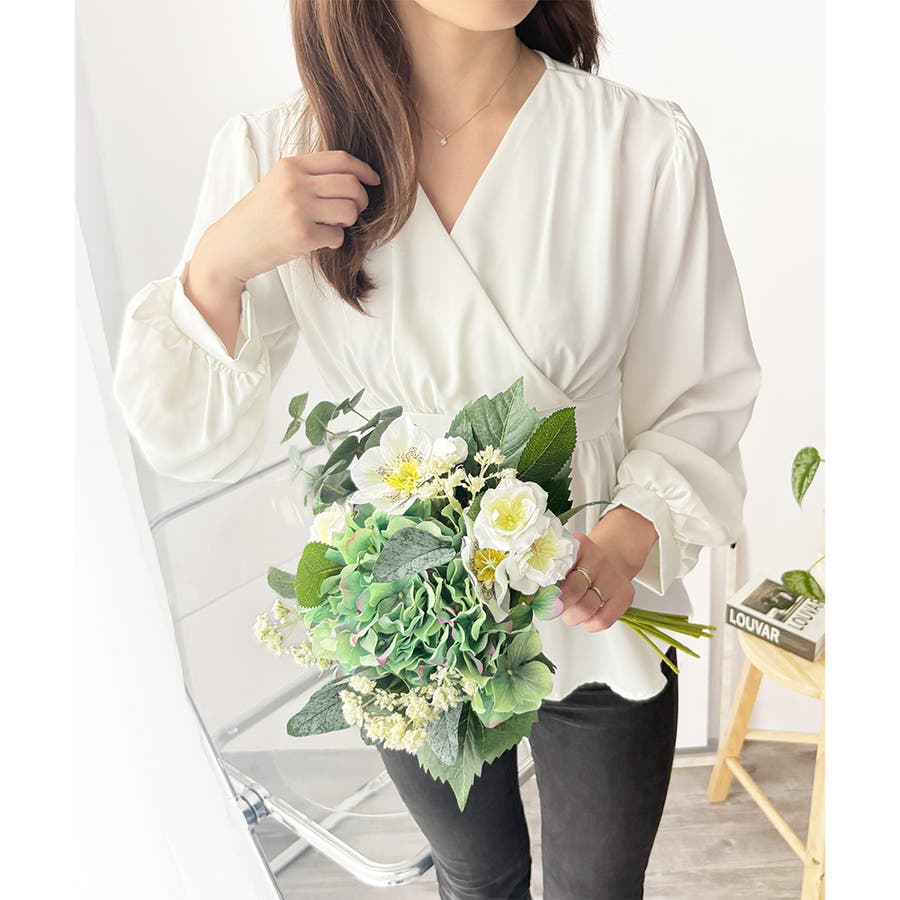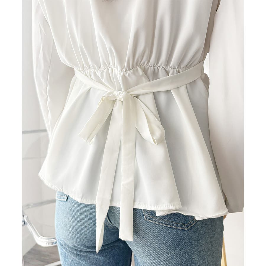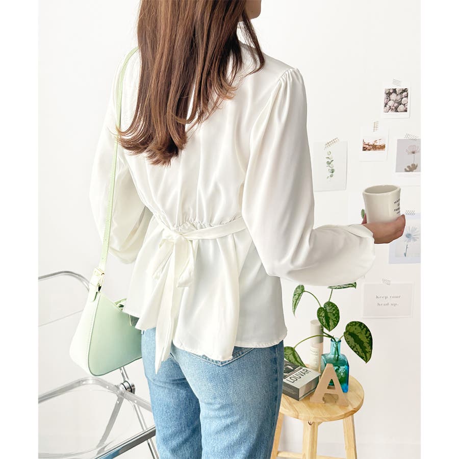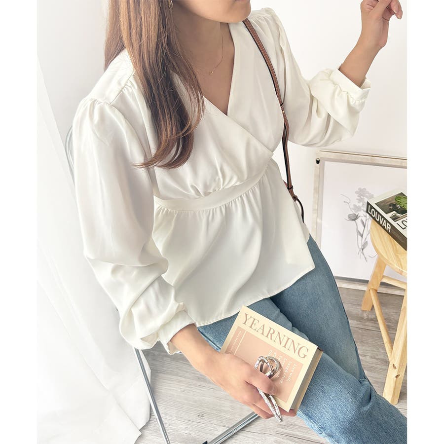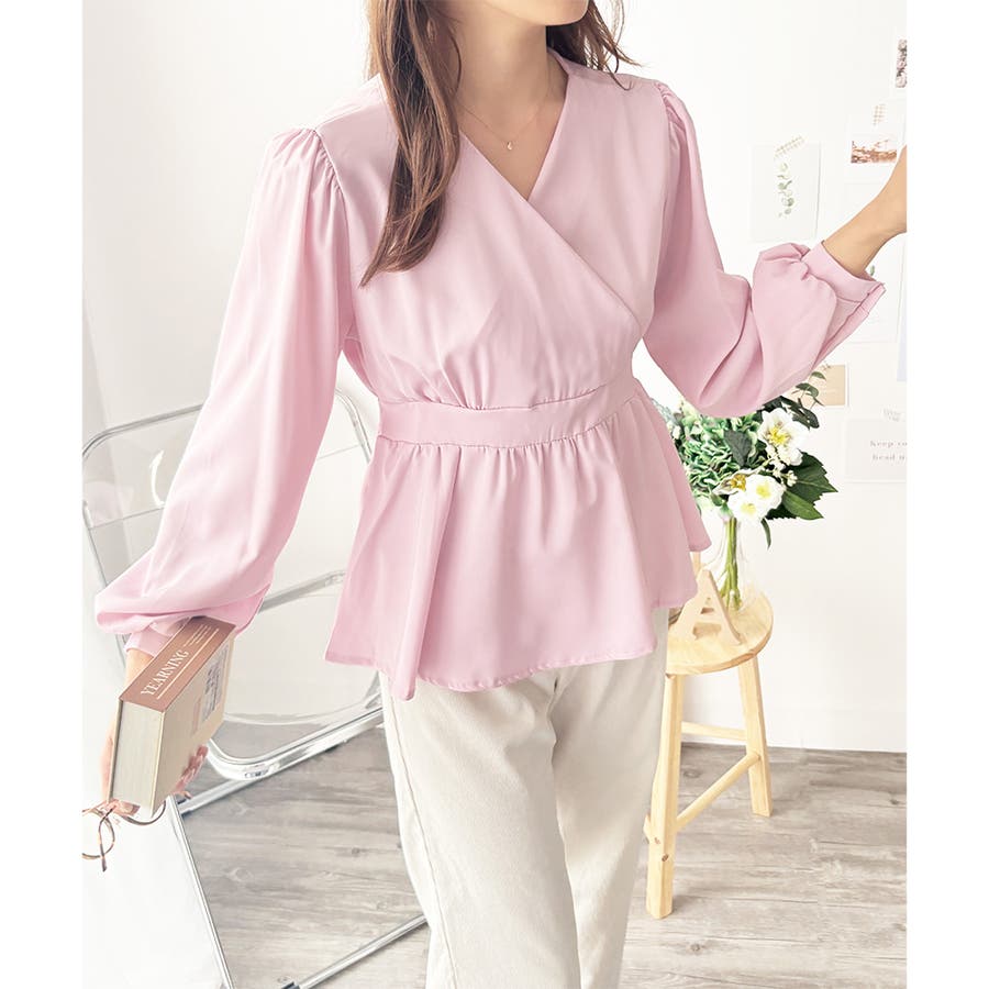 カシュクール風の胸元と、キュッと絞られたウエストデザインが女性らしさを引き立てます。