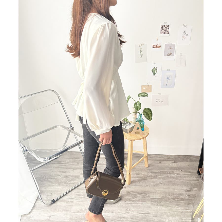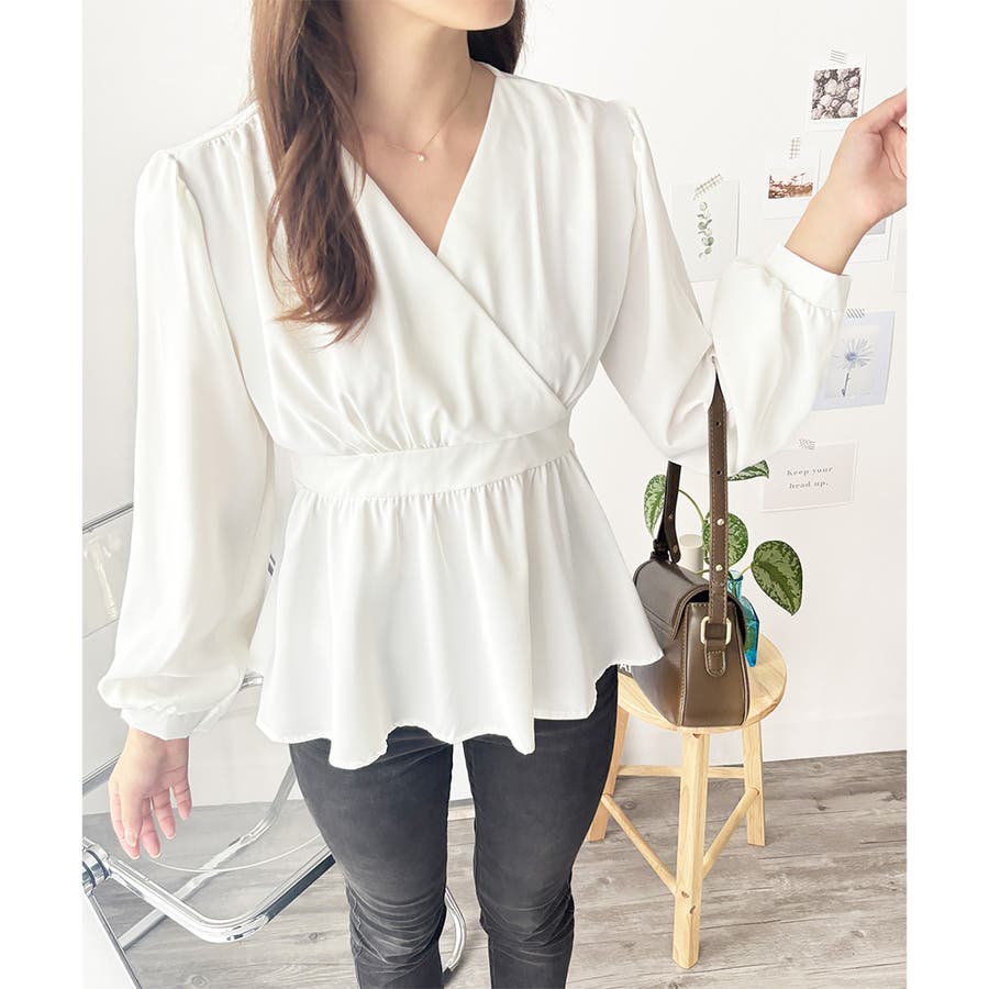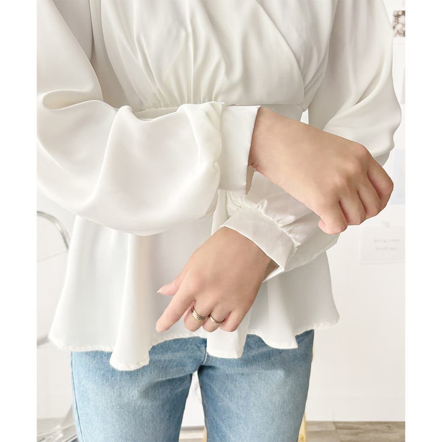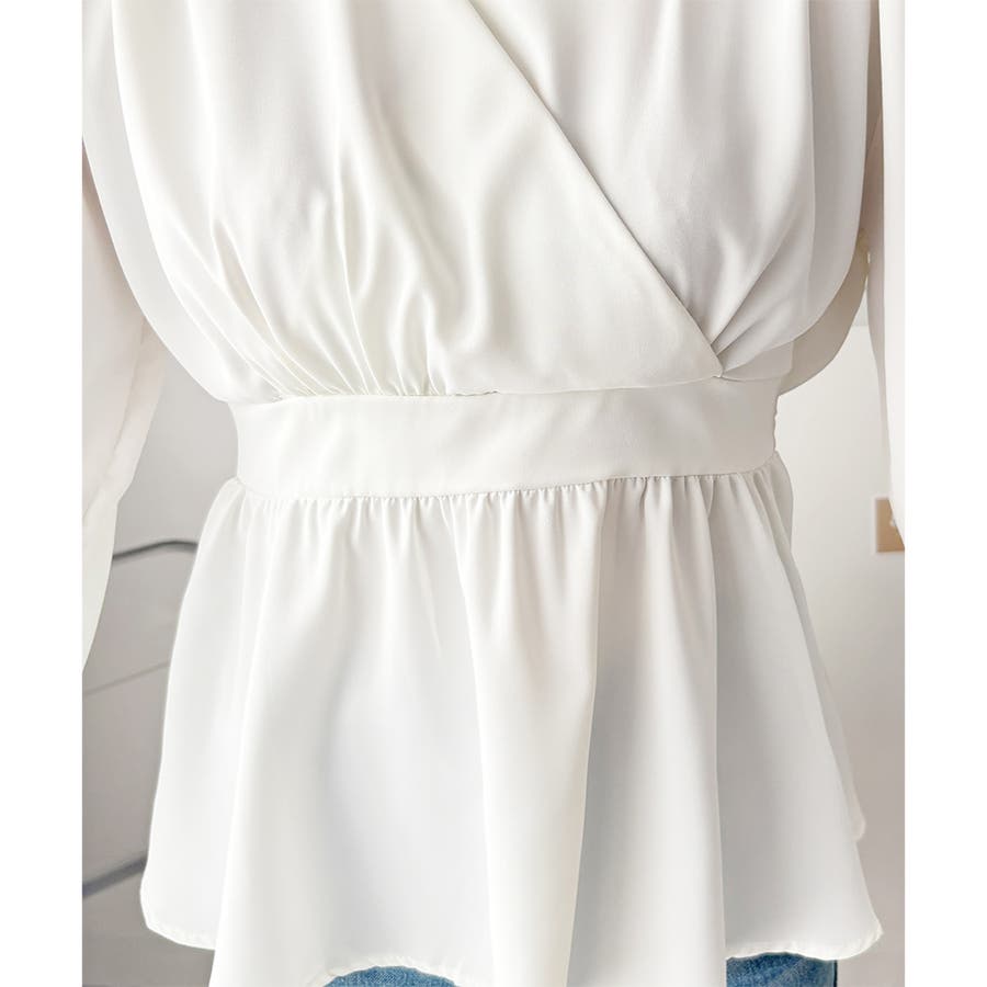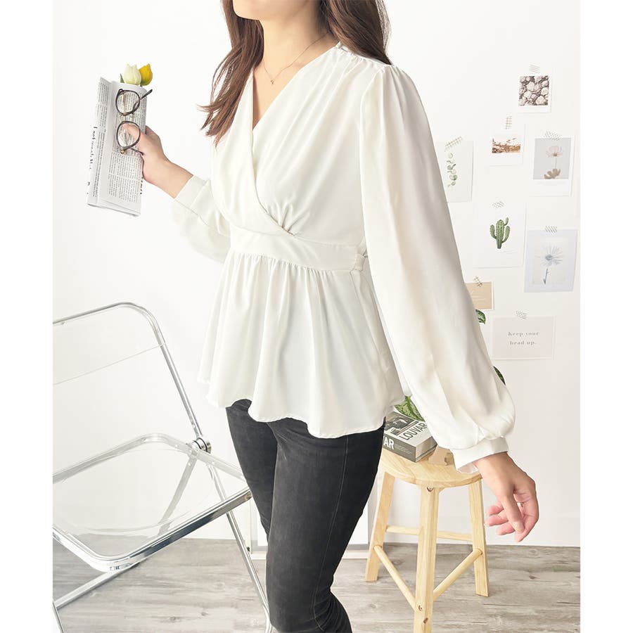 裾に向かって広がるペプラムデザインが腰まわりをふんわりカバー。
