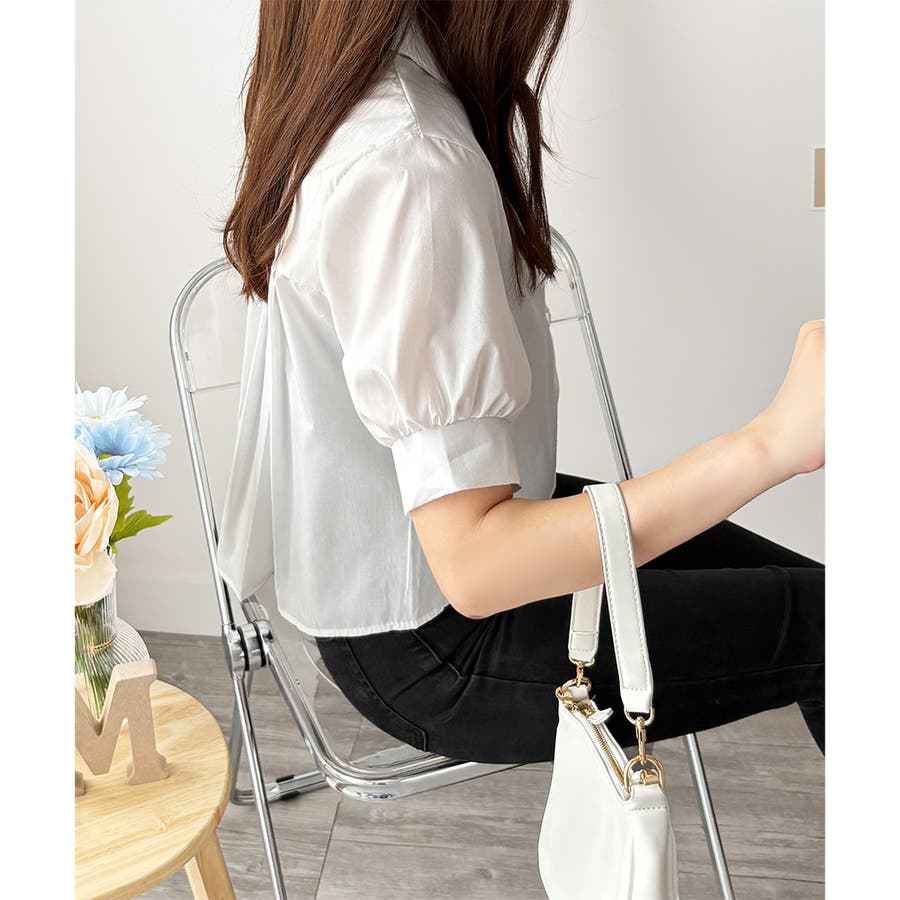 袖は軽くふくらみのあるシルエットで大人かわいさを演出。