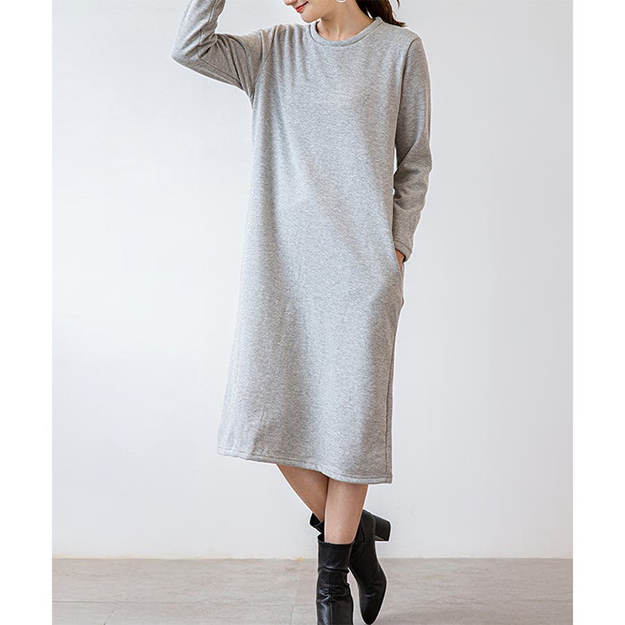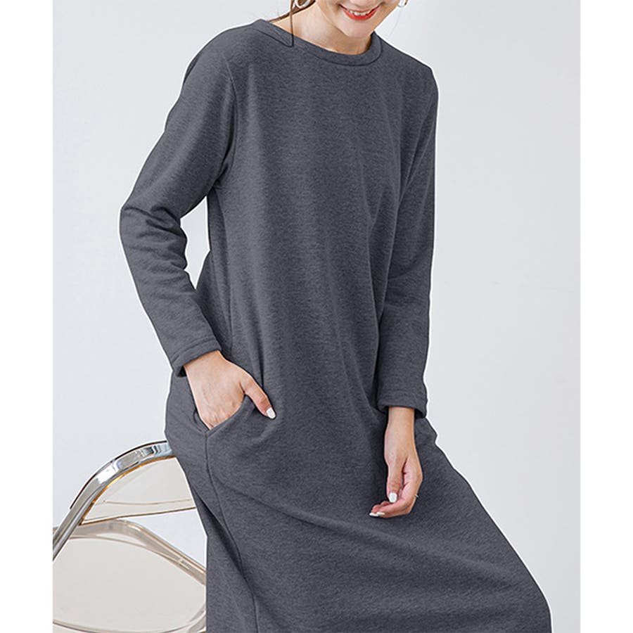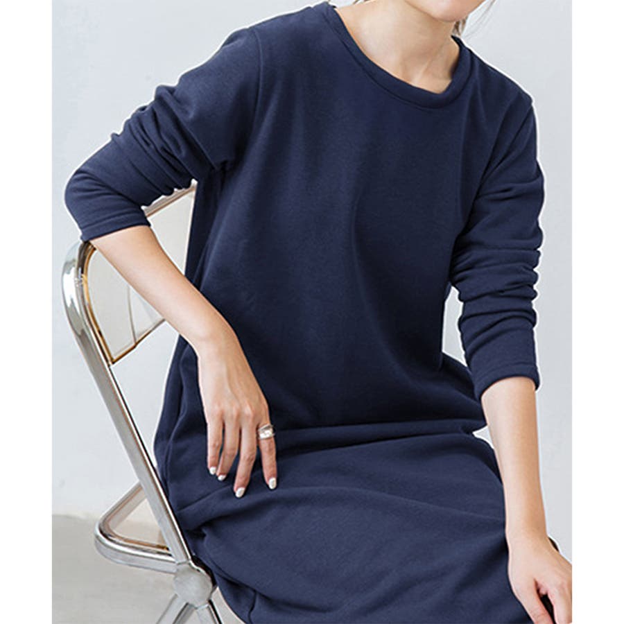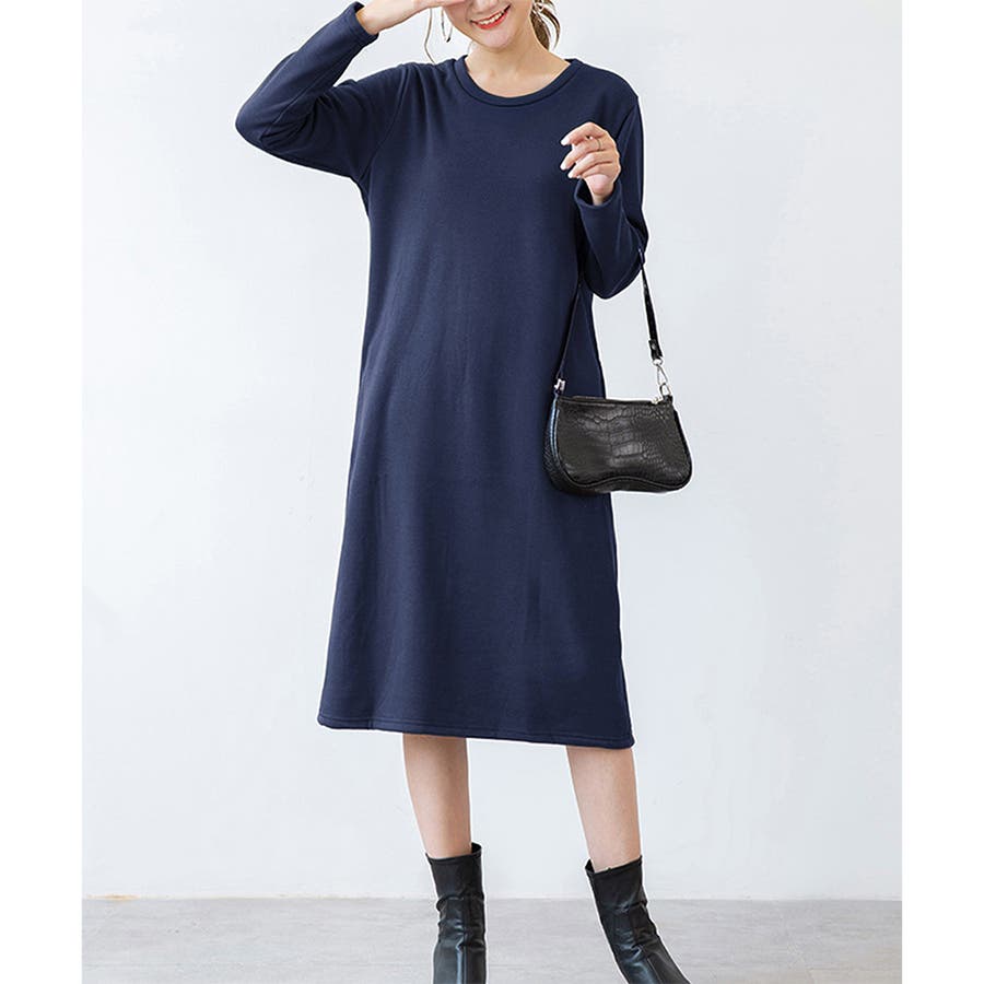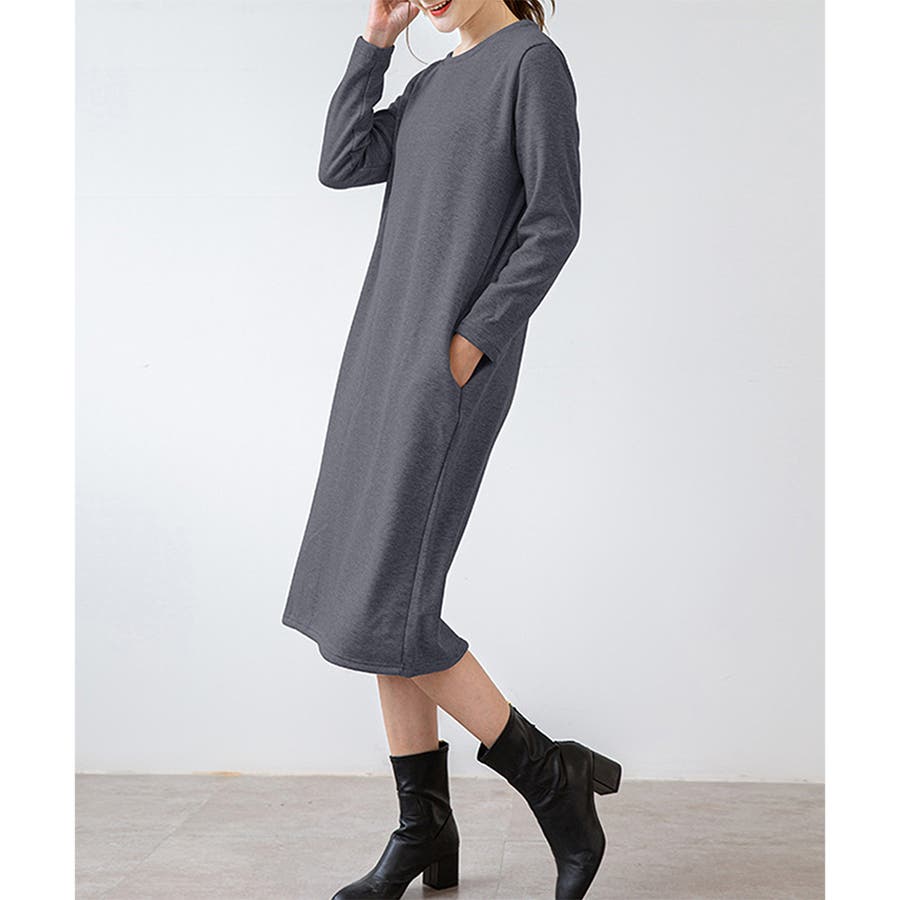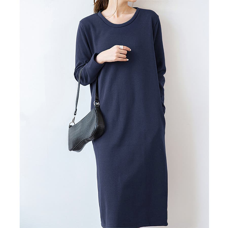 ナチュラルフィット裏起毛ワンピース ロング あったか