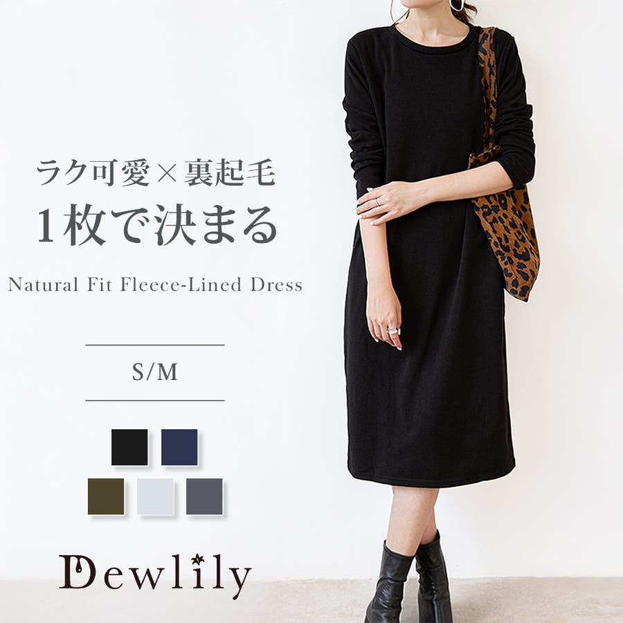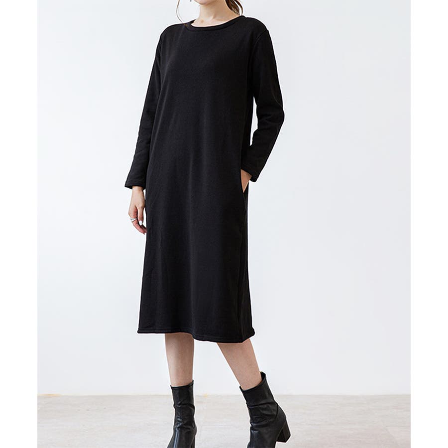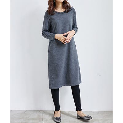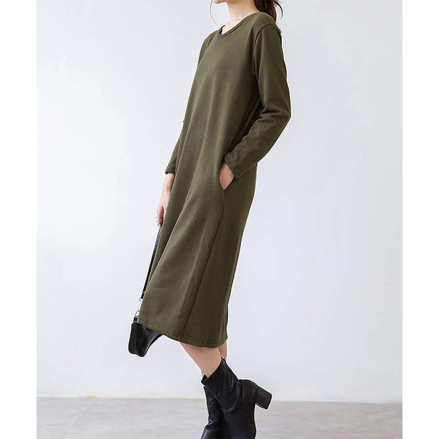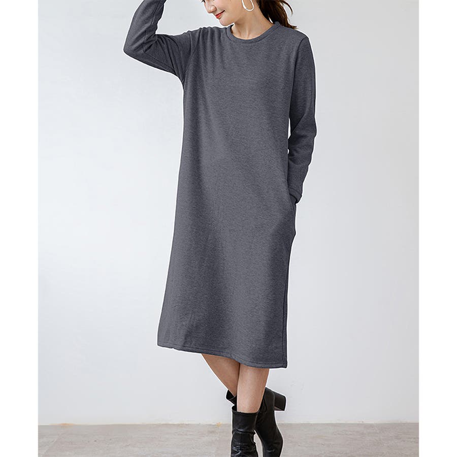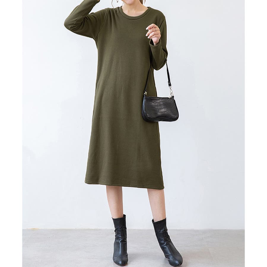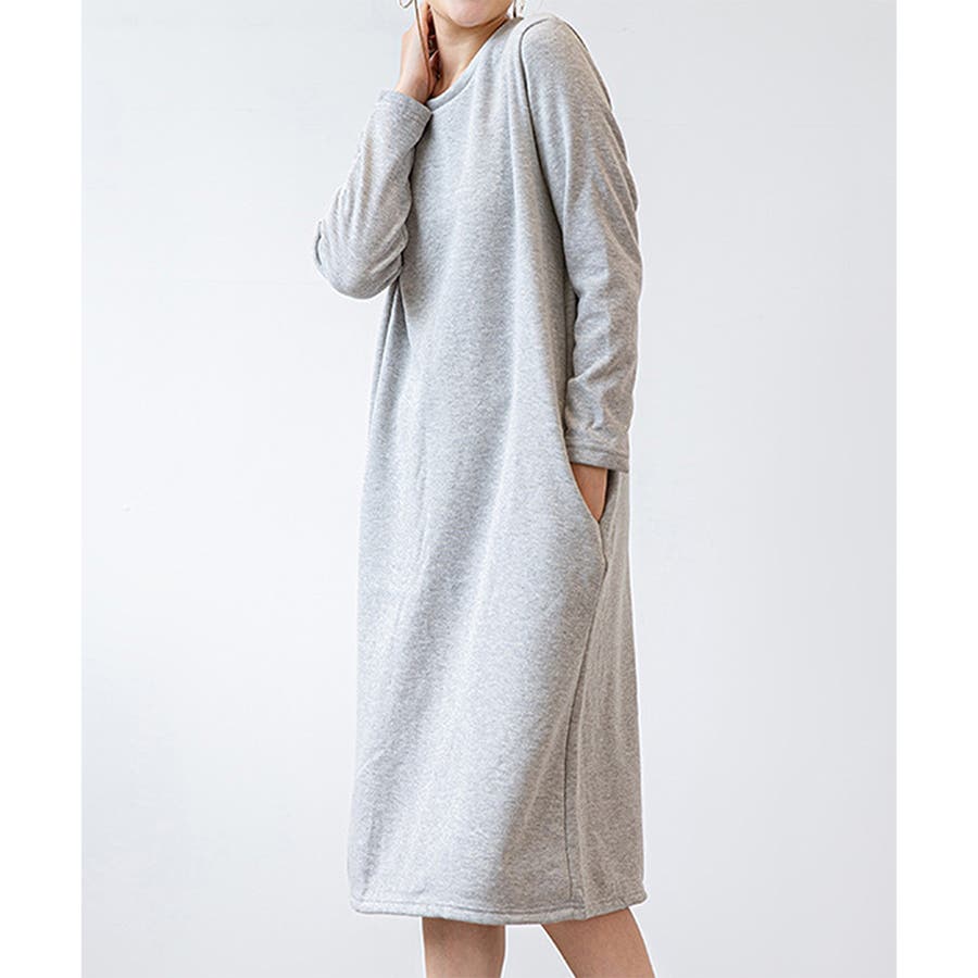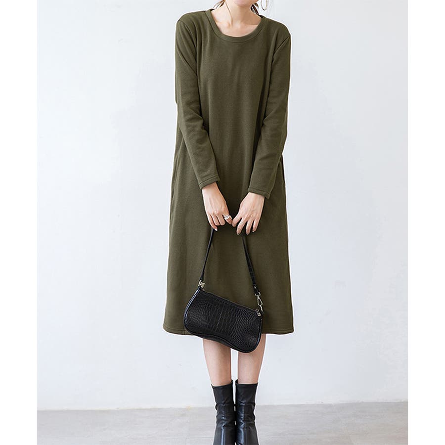 ナチュラルフィット裏起毛ワンピース ロング あったか