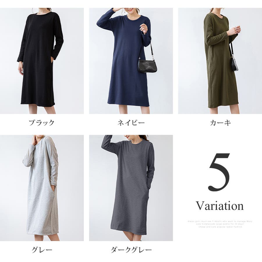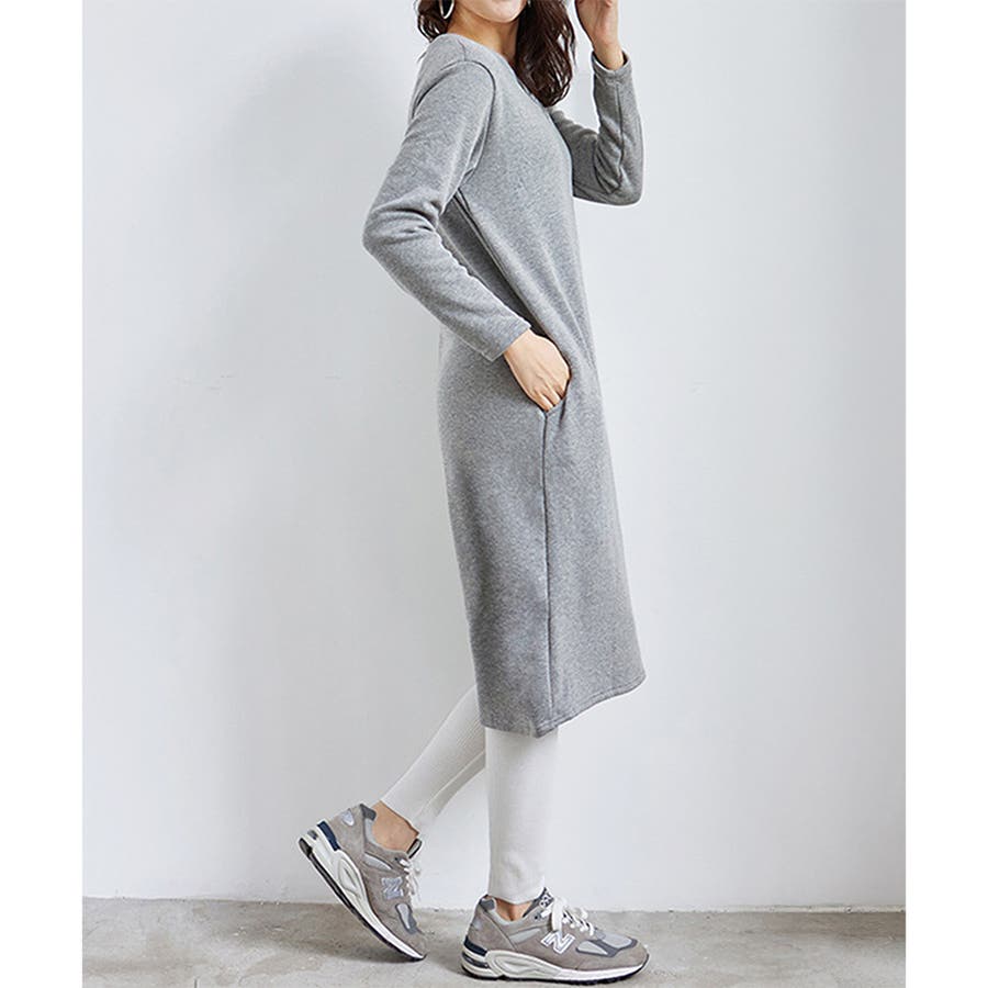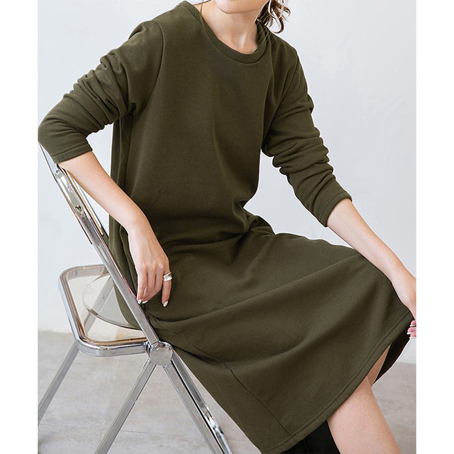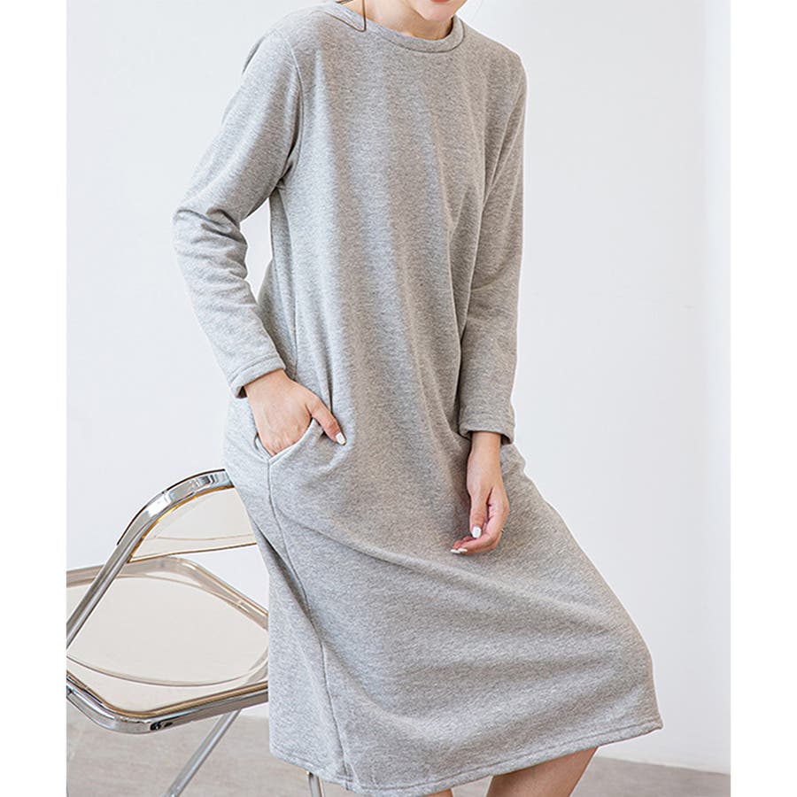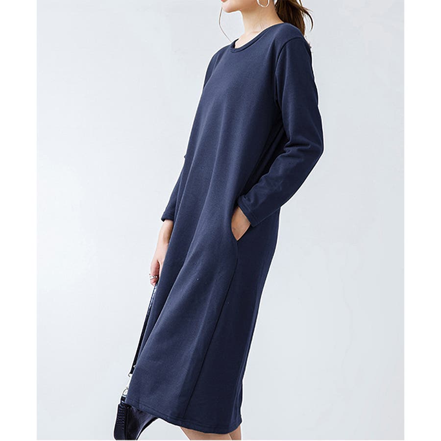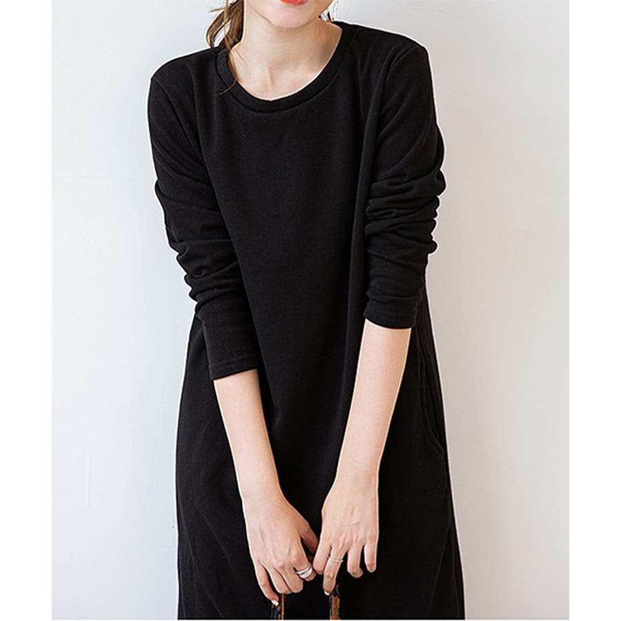 ナチュラルフィット裏起毛ワンピース ロング あったか