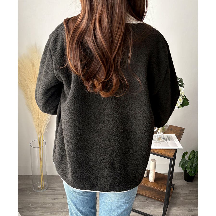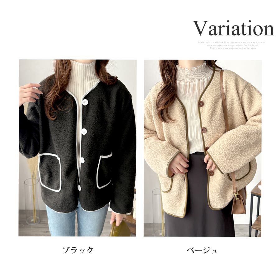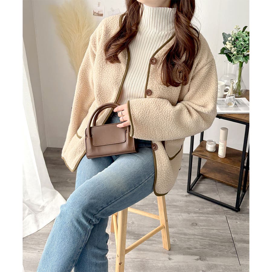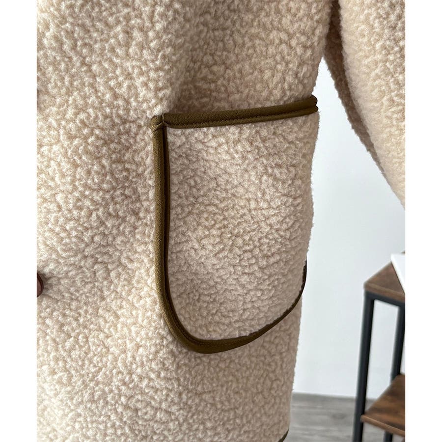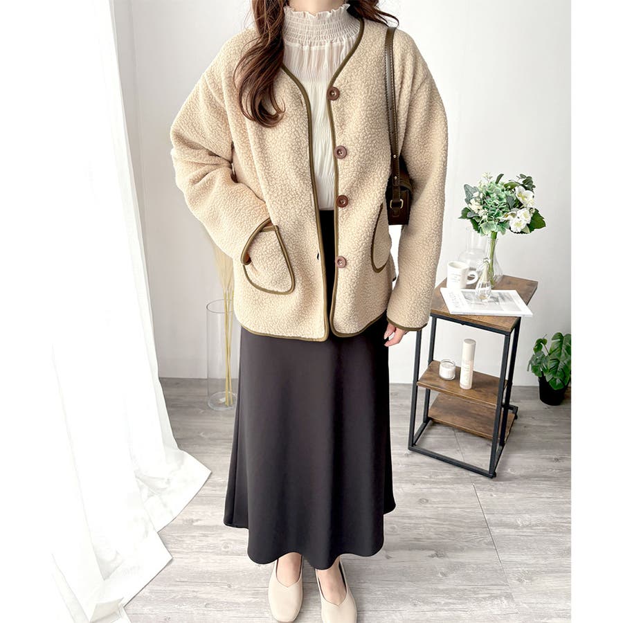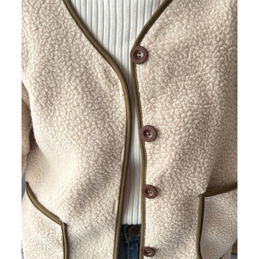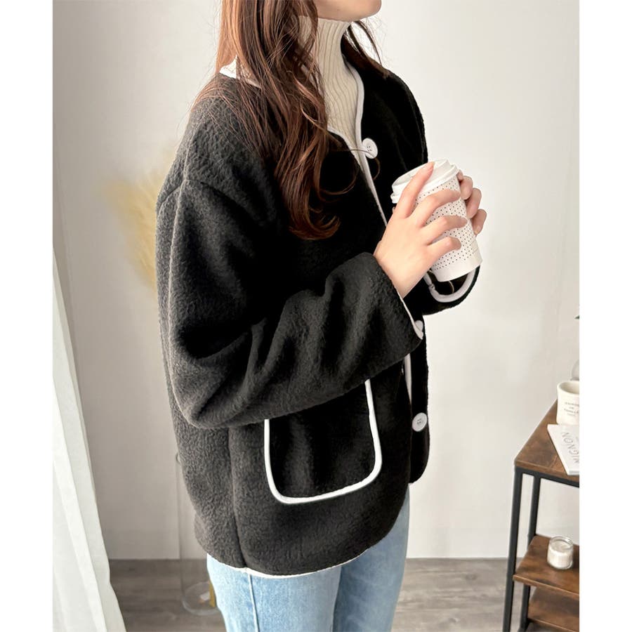 ナチュラルなボア素材に、さりげない配色ラインがアクセントになったアウター◎