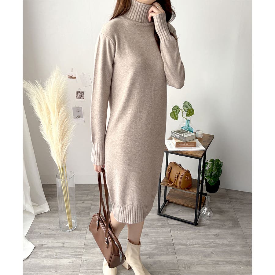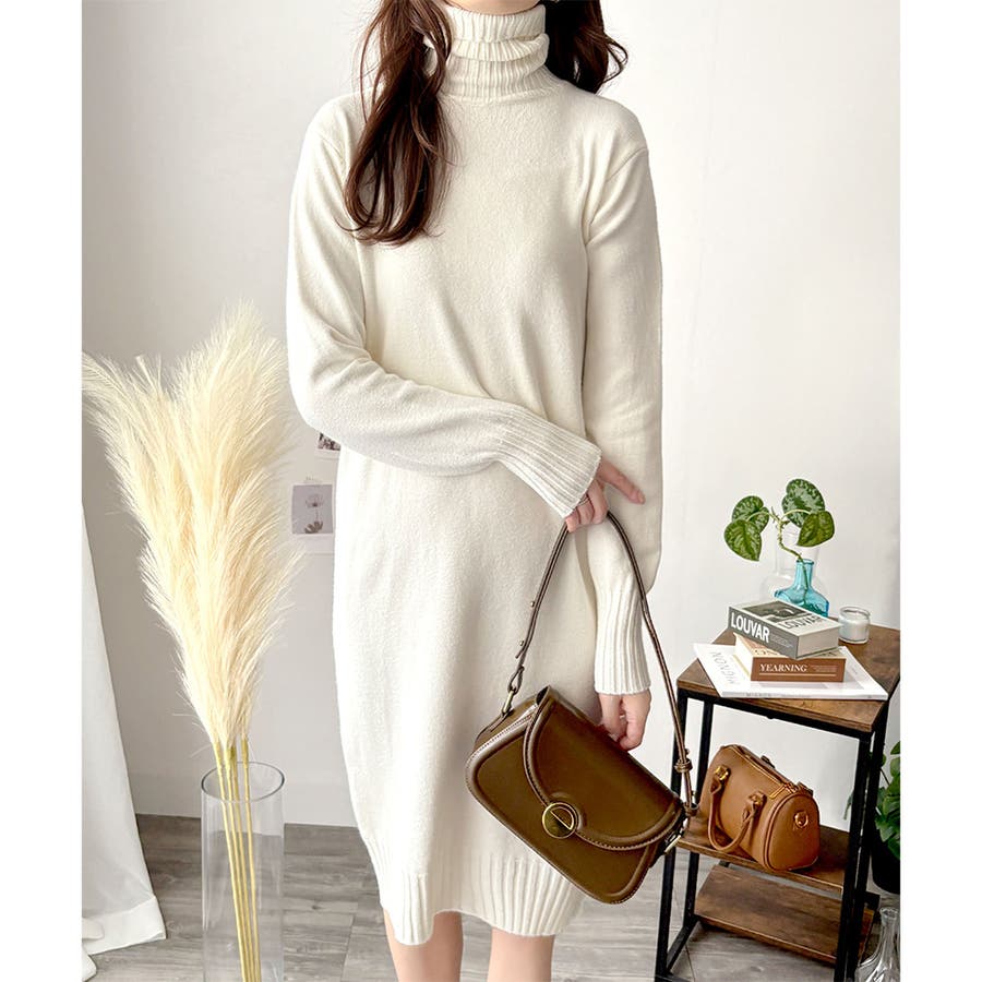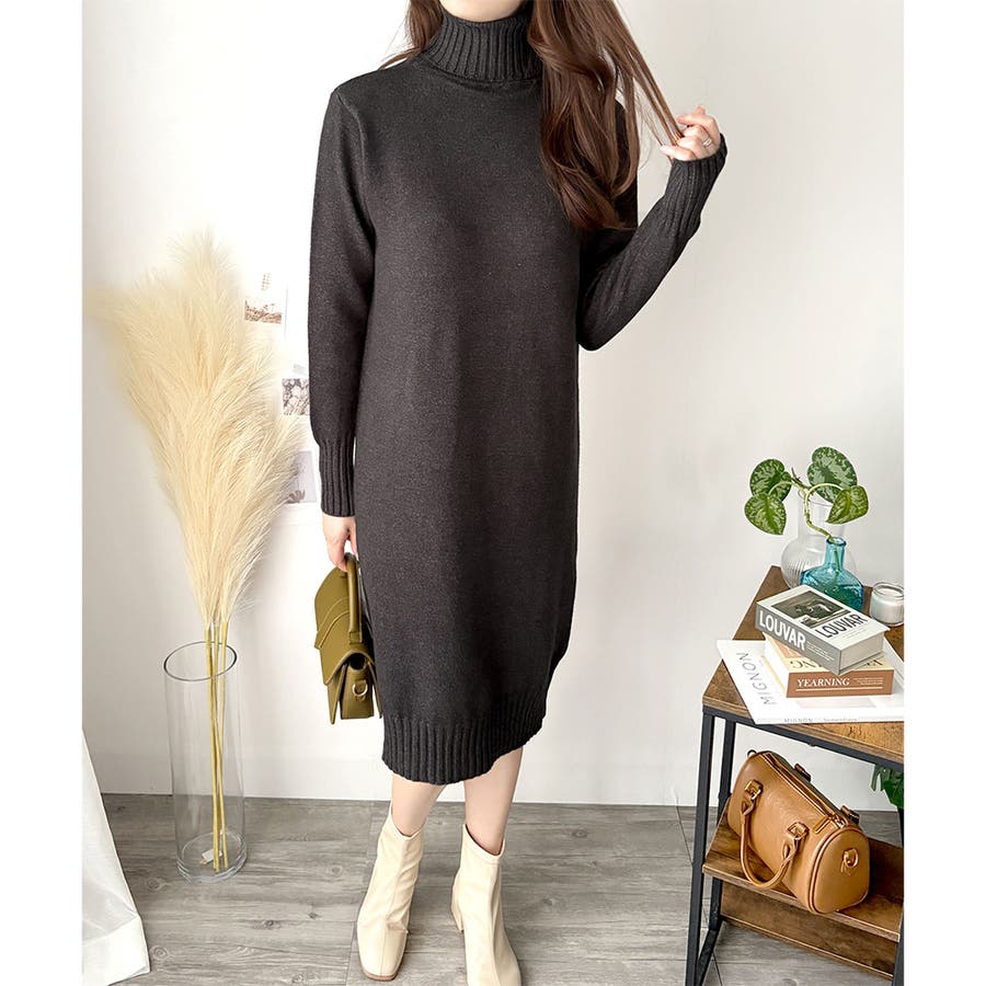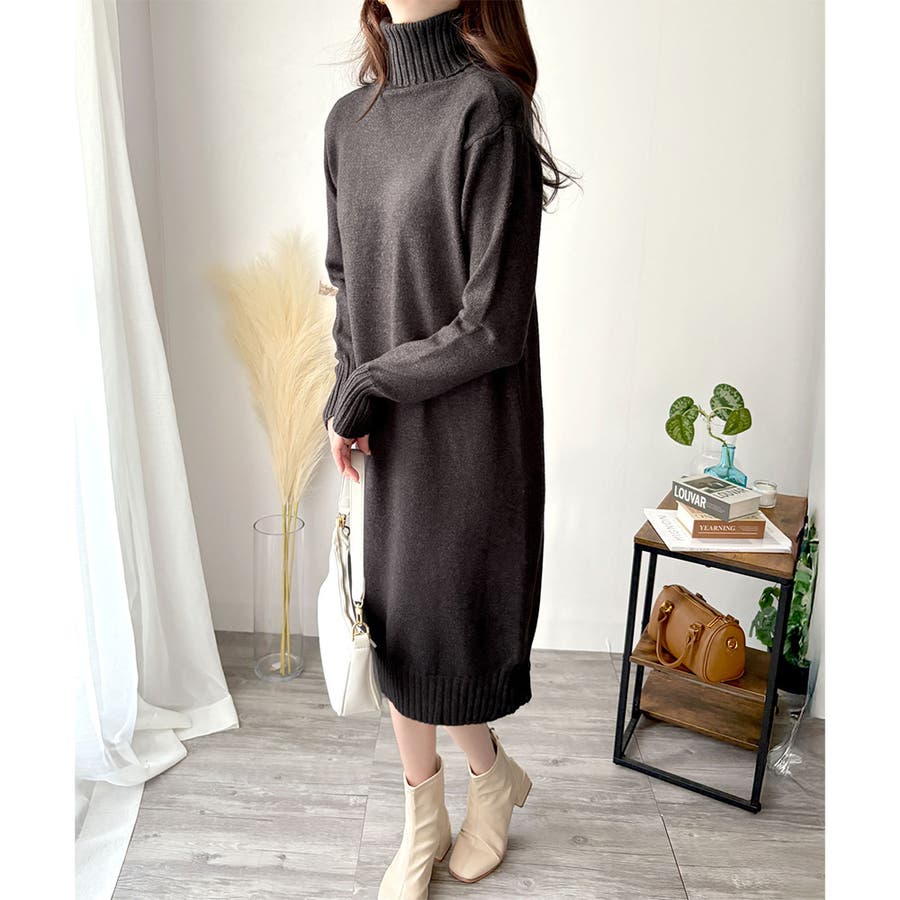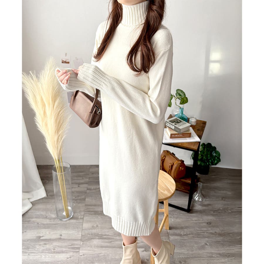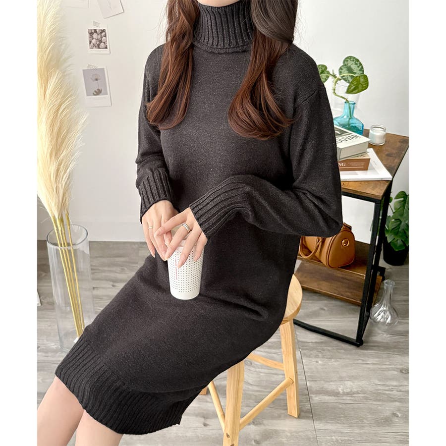 タートルネックニットロングワンピース レディース 秋冬