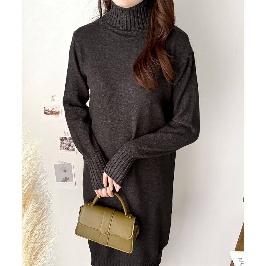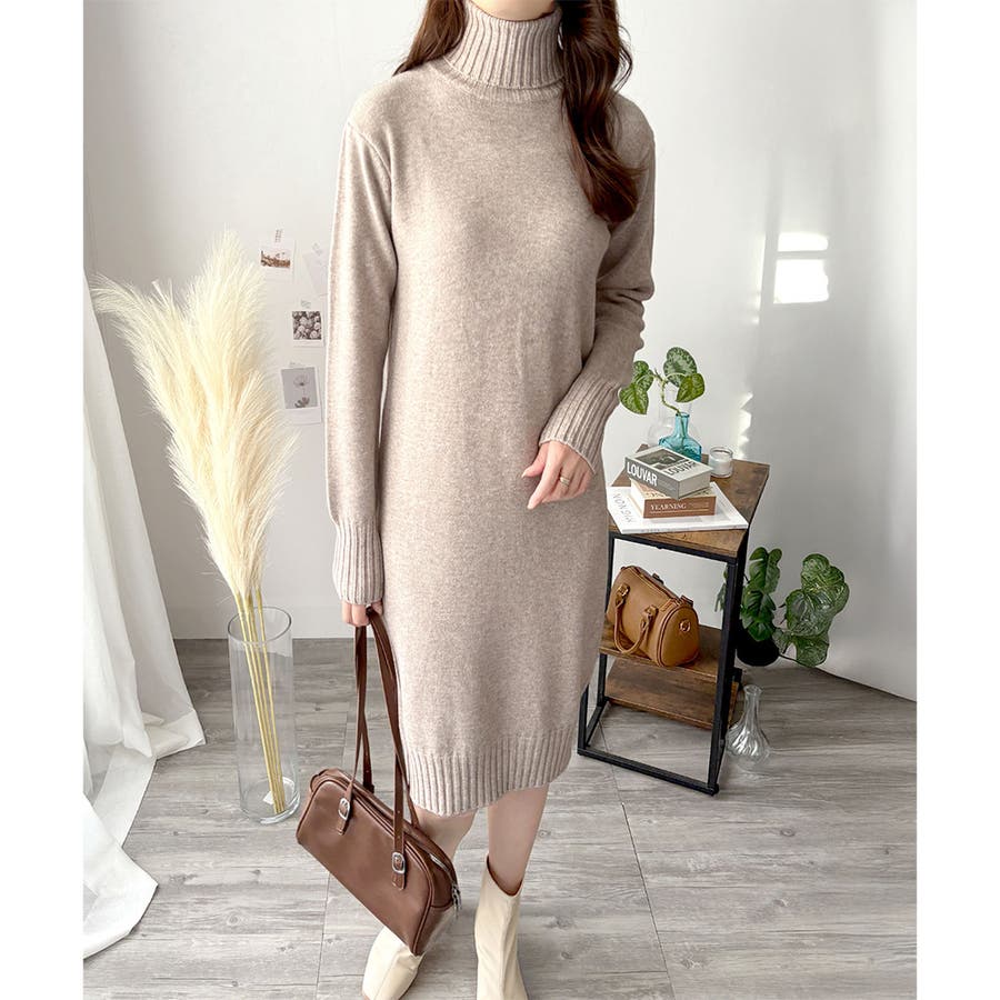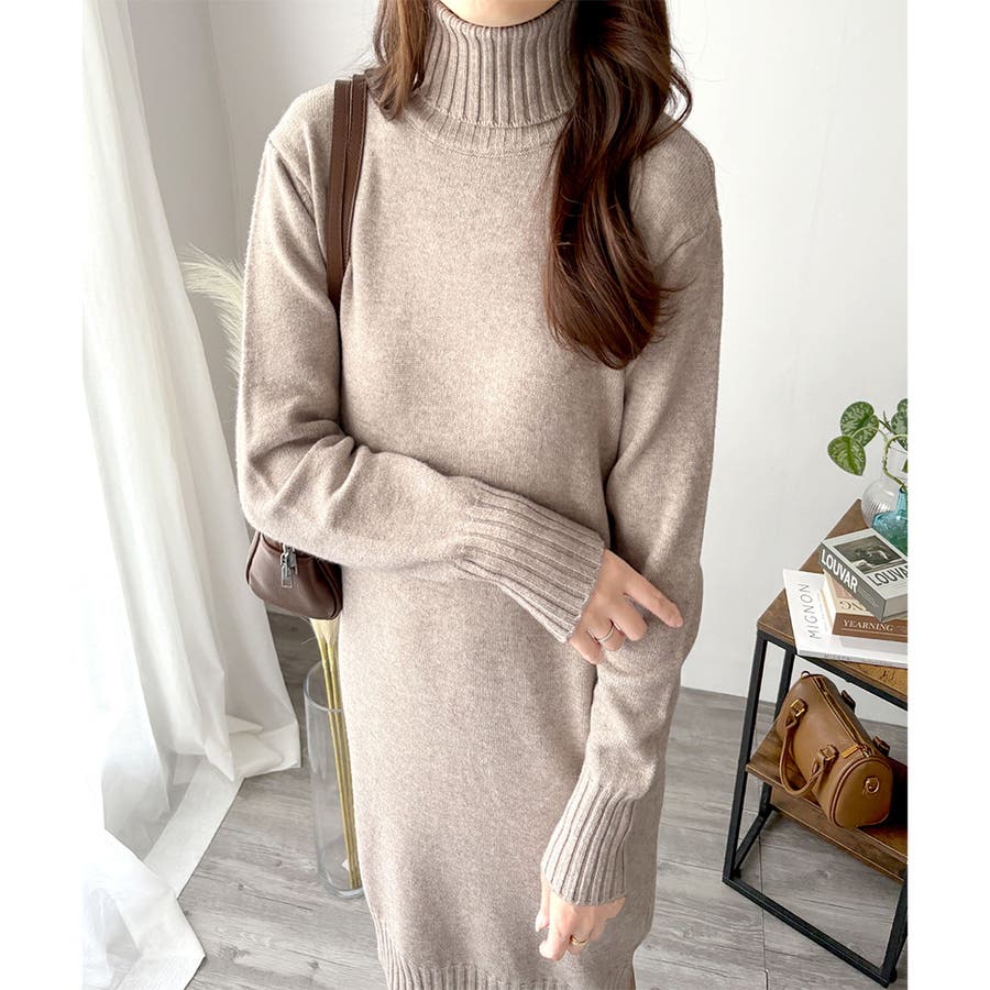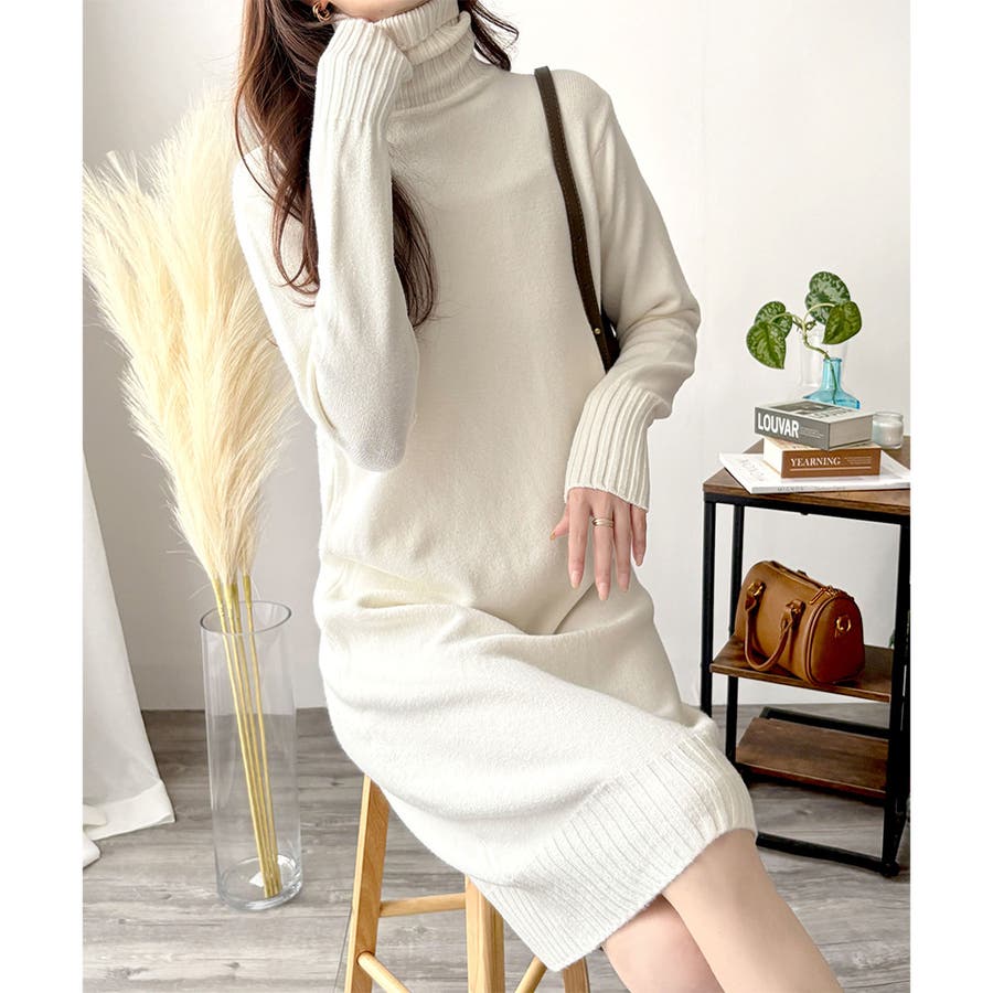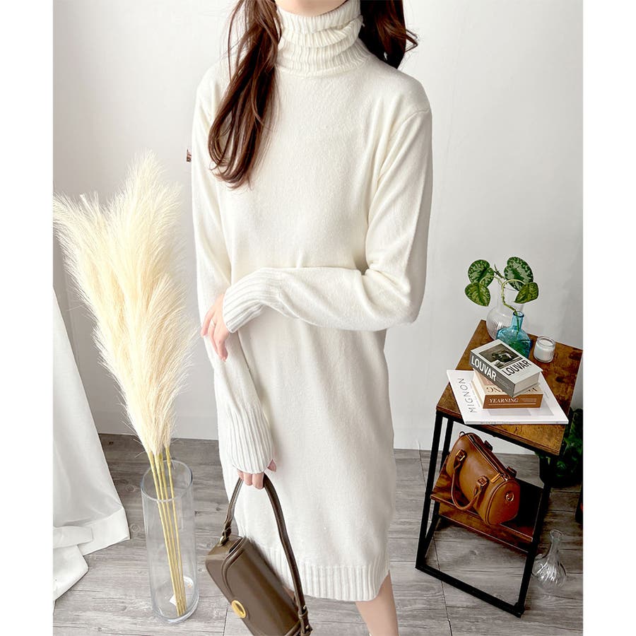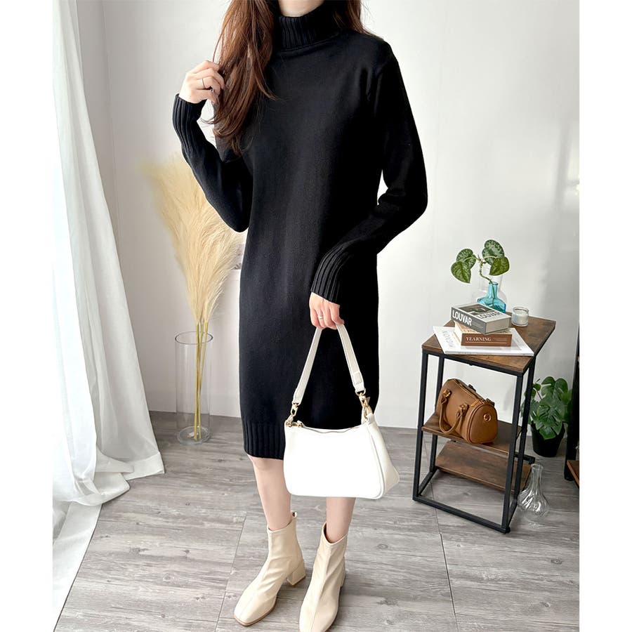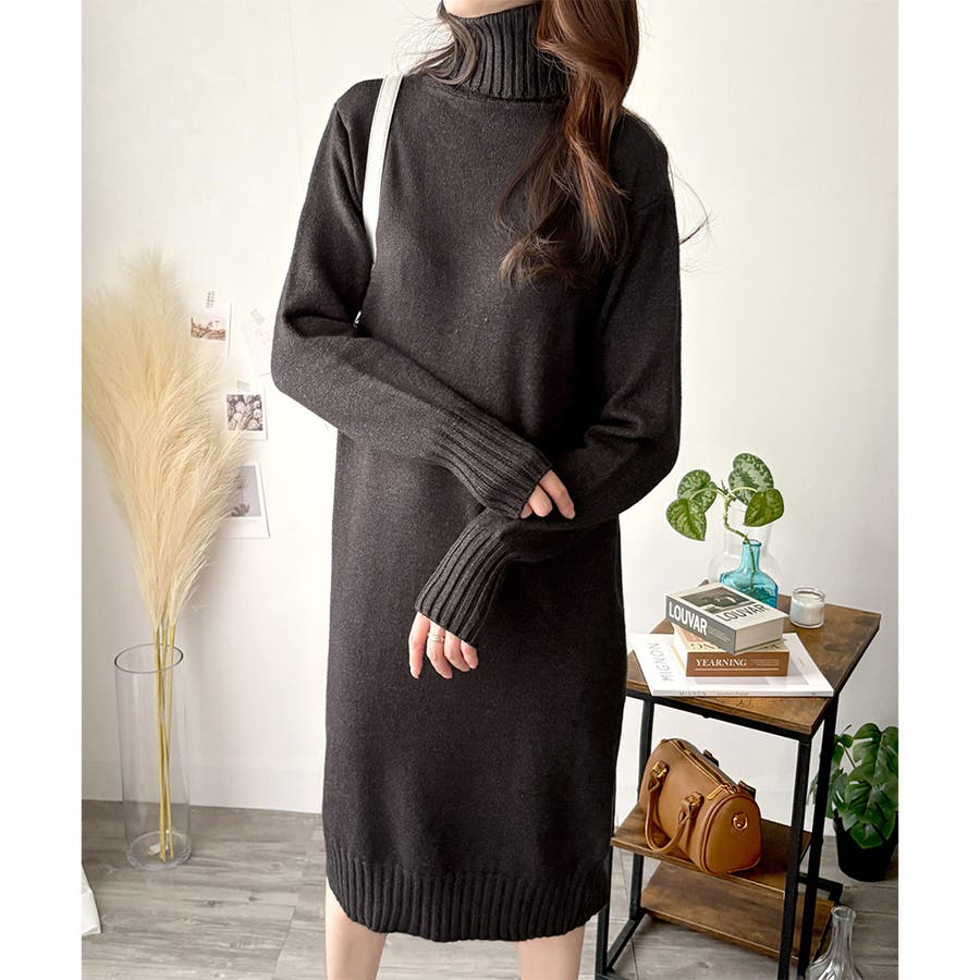 タートルネックニットロングワンピース レディース 秋冬