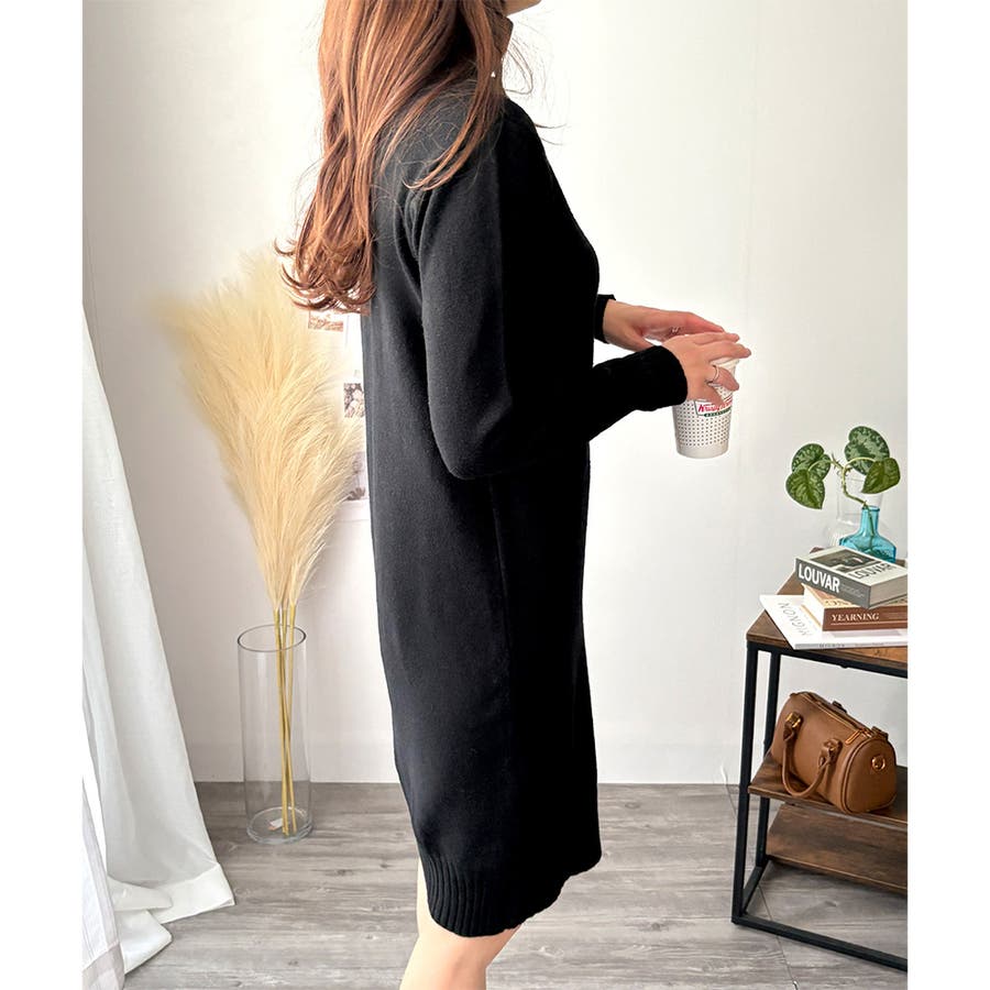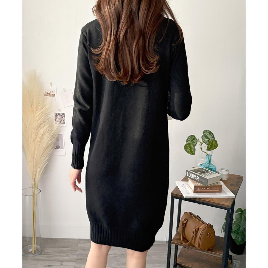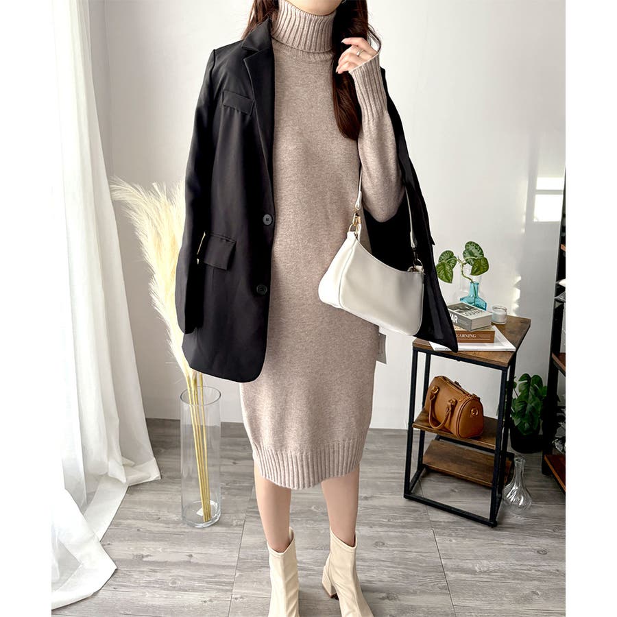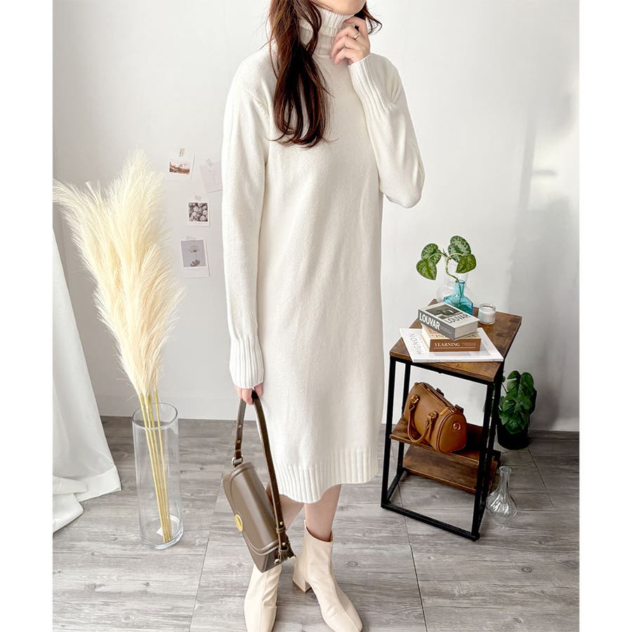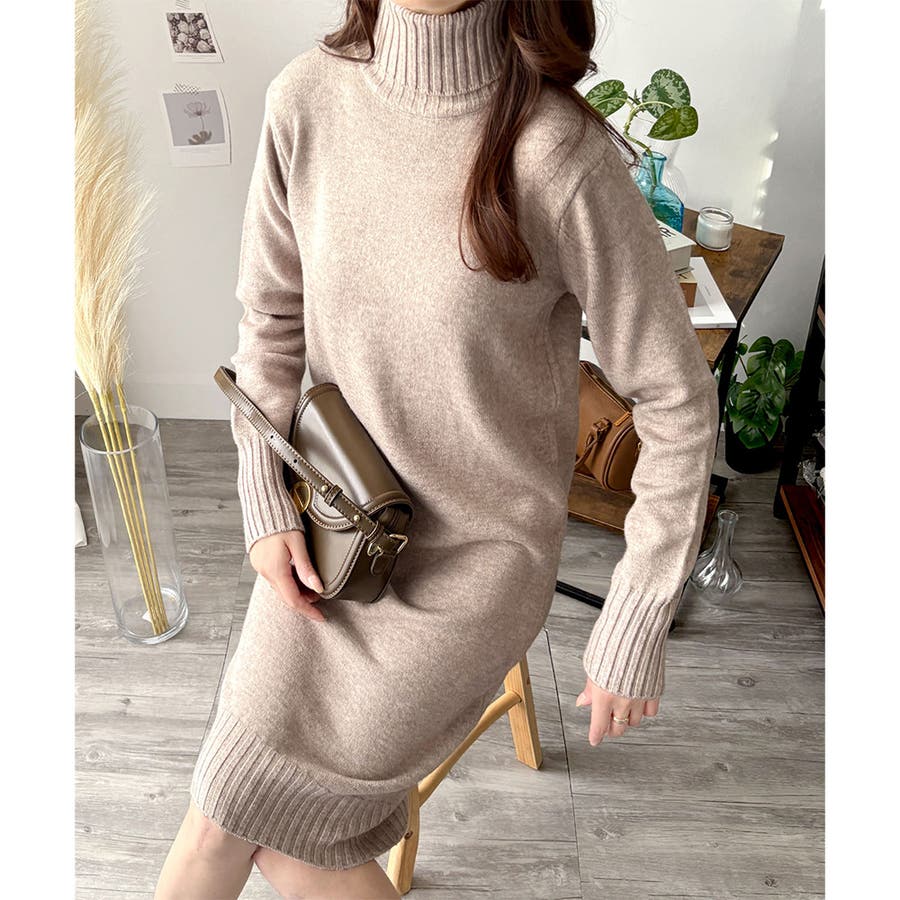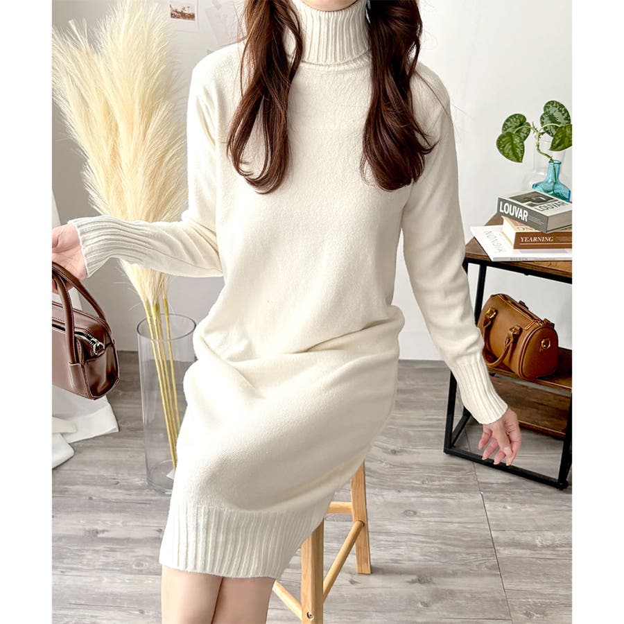 タートルネックニットロングワンピース レディース 秋冬