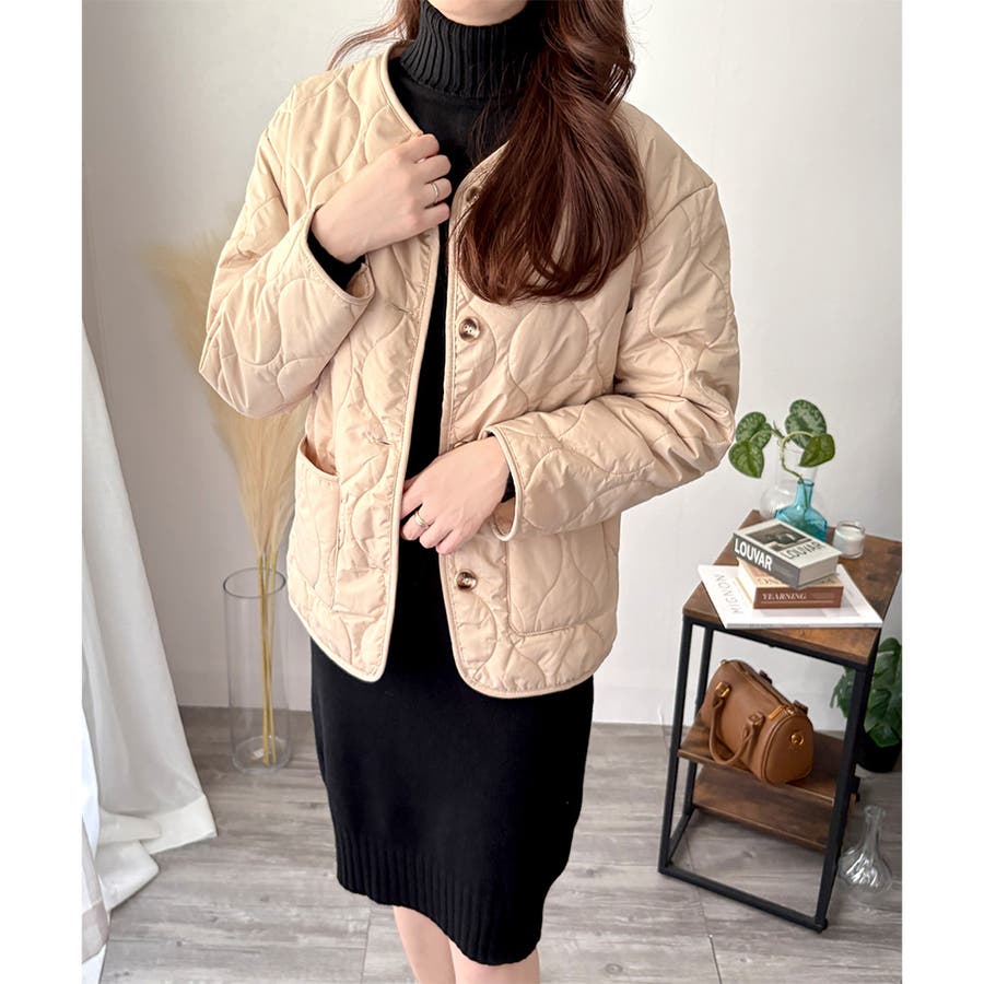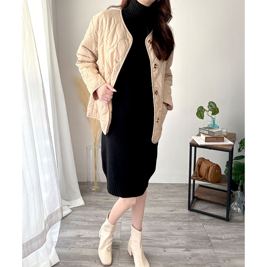 ふんわりと立ち上がるハイネックが、首元をやさしく包み込み小顔効果も叶える♪