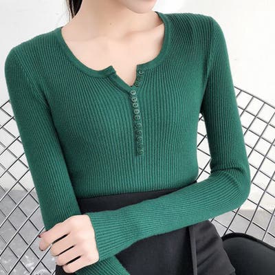 薄手Vネック インナーニット 長袖ニット
