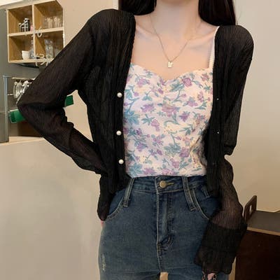 シアー パールボタン ショートカーディガン 羽織り 冷房対策 韓国 韓国ファッション