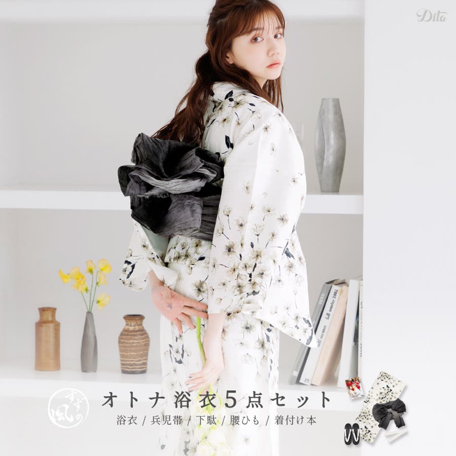の届いてすぐに1人で着られる合計5点セットです。毎年ランキング1位を獲得するDitaの浴衣は、SNSでも話題の人気商品。ここでしか買えない大人かわいい浴衣で素敵な夏の思い出を..♪