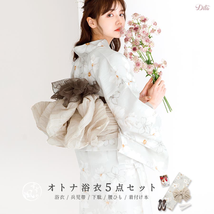の届いてすぐに1人で着られる合計5点セットです。毎年ランキング1位を獲得するDitaの浴衣は、SNSでも話題の人気商品。ここでしか買えない大人かわいい浴衣で素敵な夏の思い出を..♪