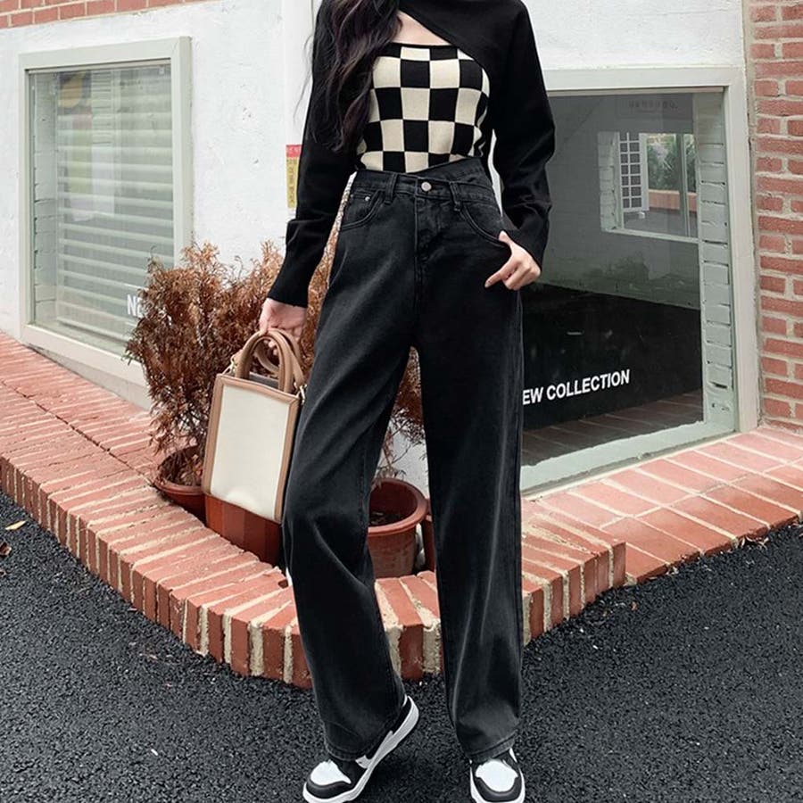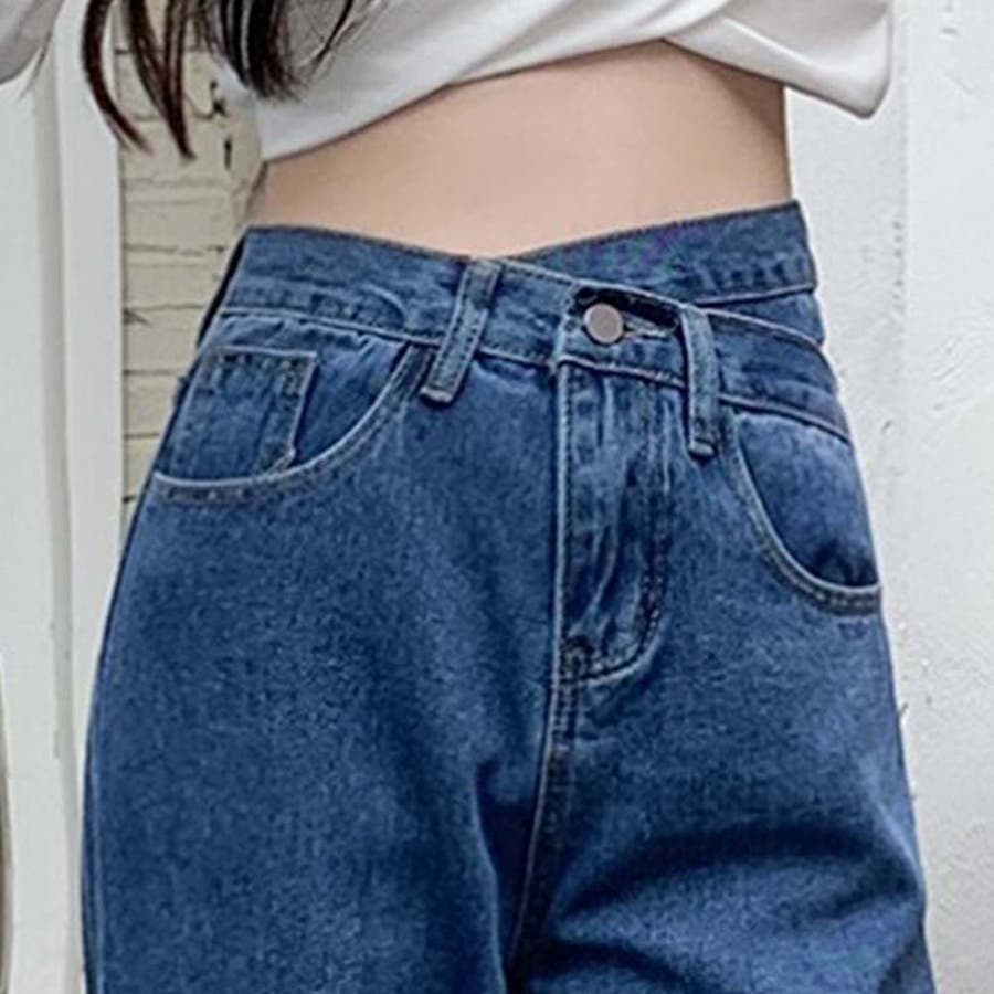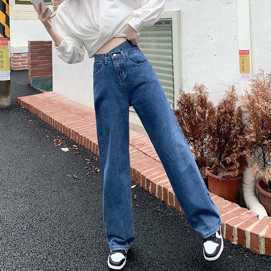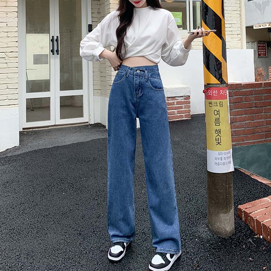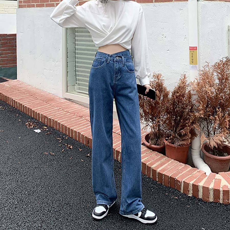 デザインウエストワイドデニムパンツ【韓国ファッション】【春夏新商品】