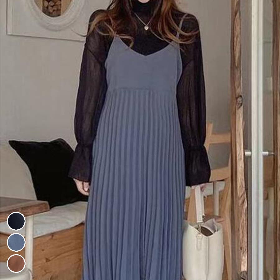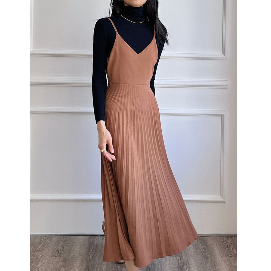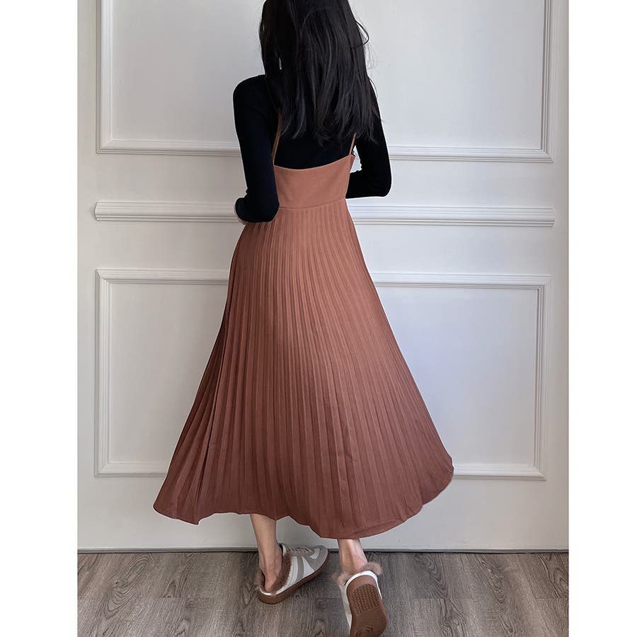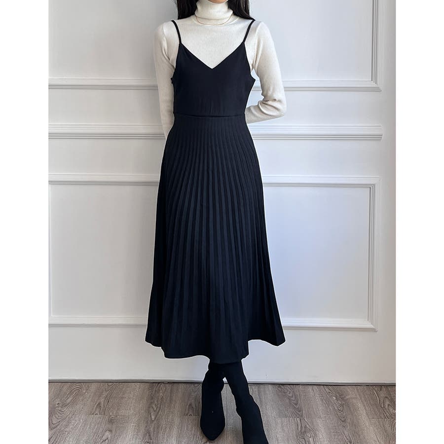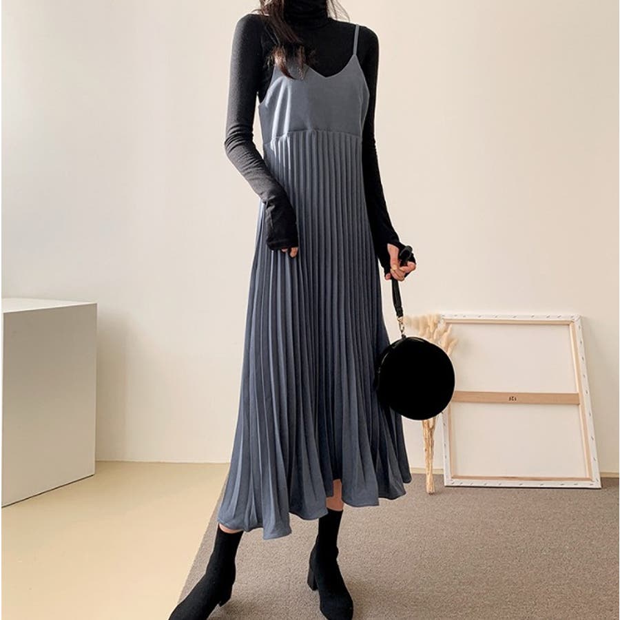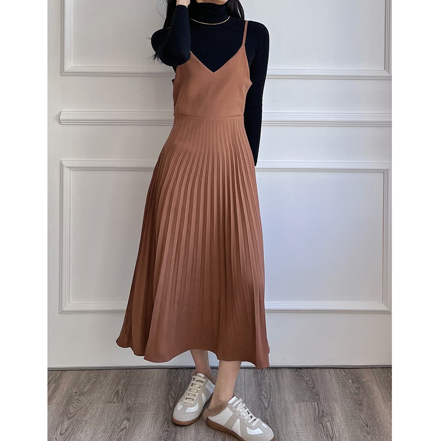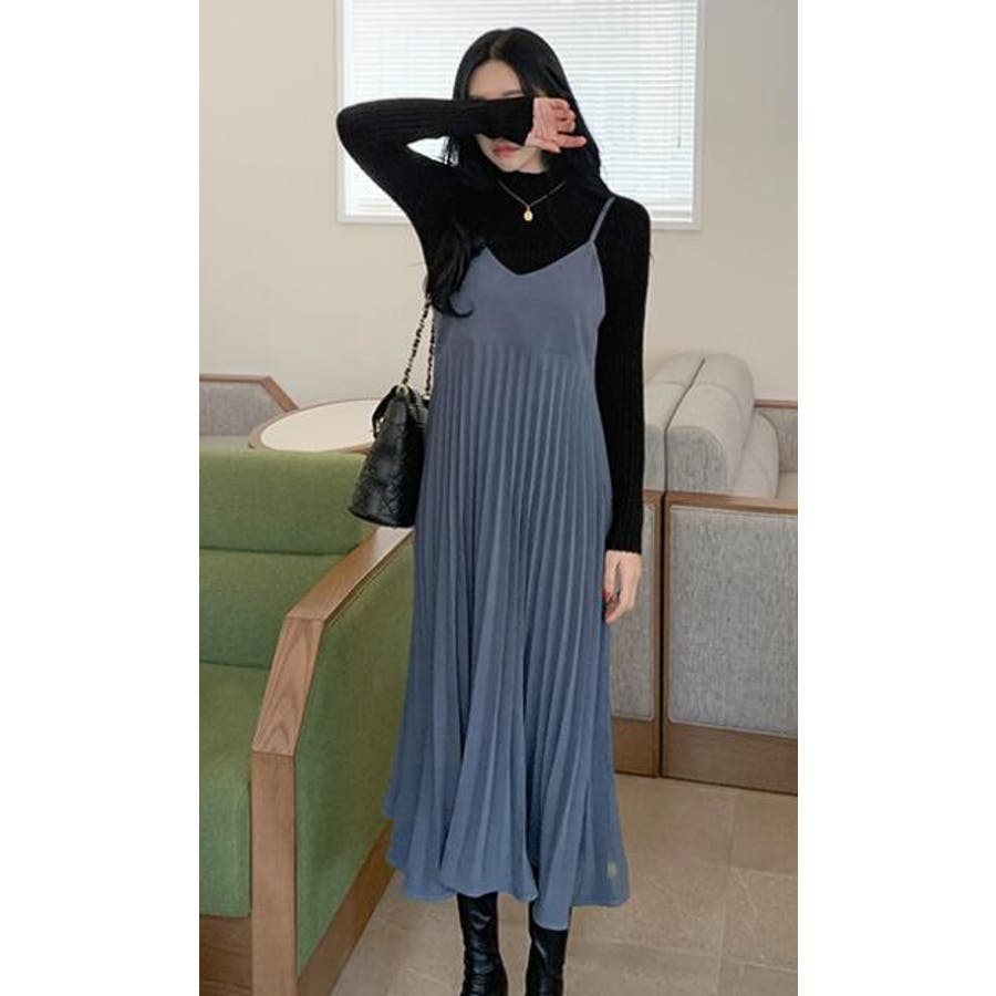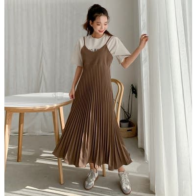 プリーツ切り替えキャミワンピース【韓国ファッション】