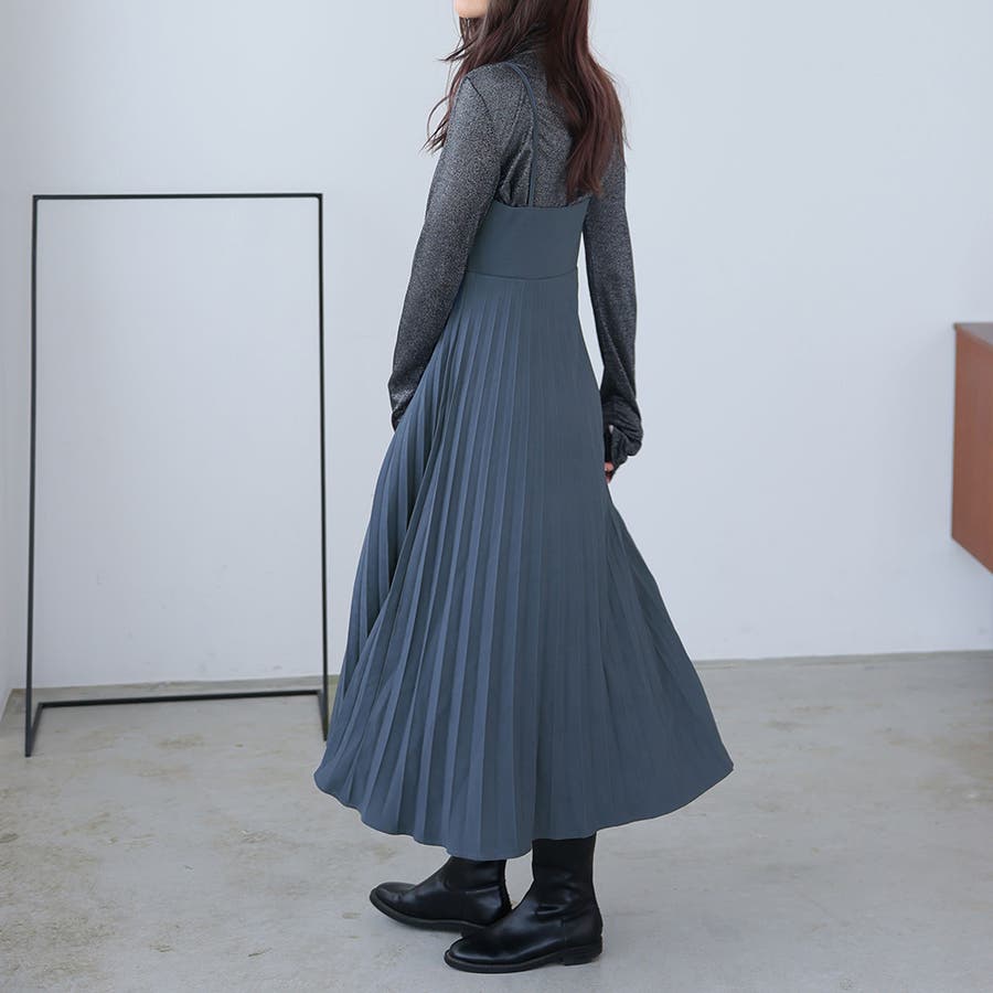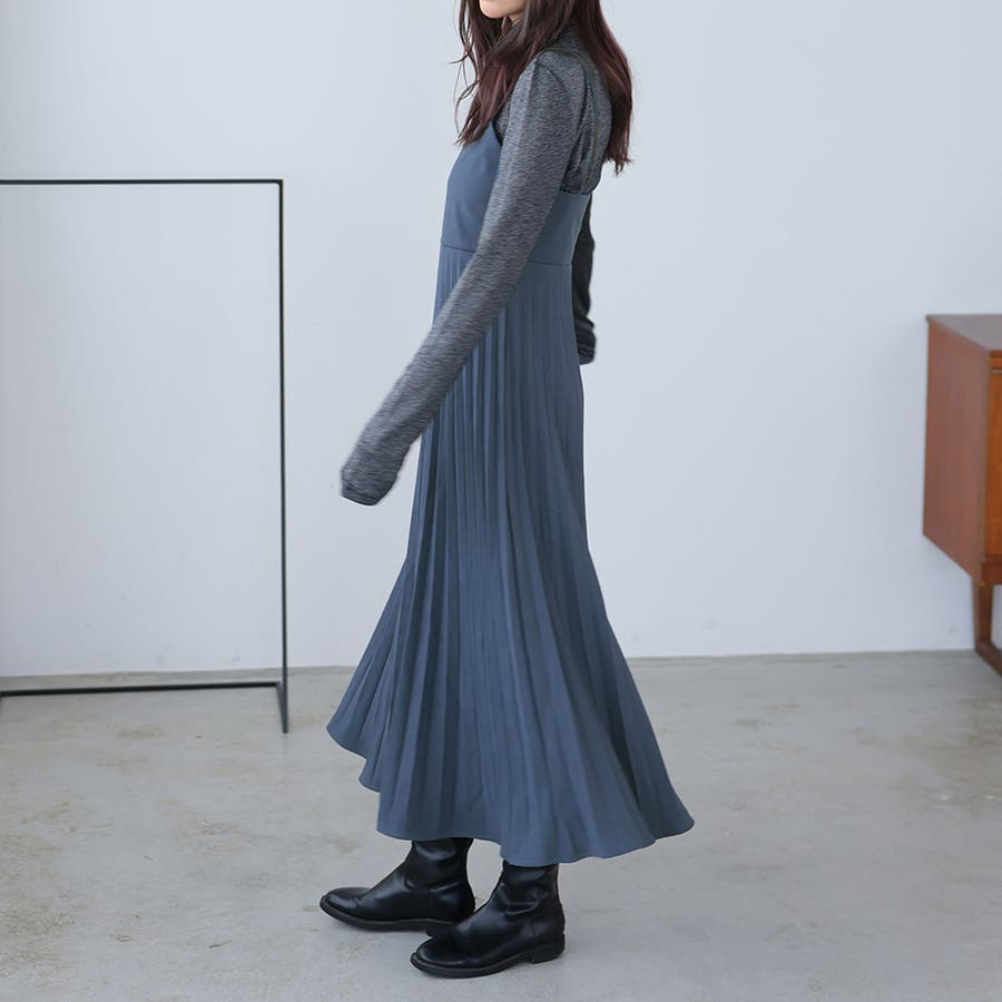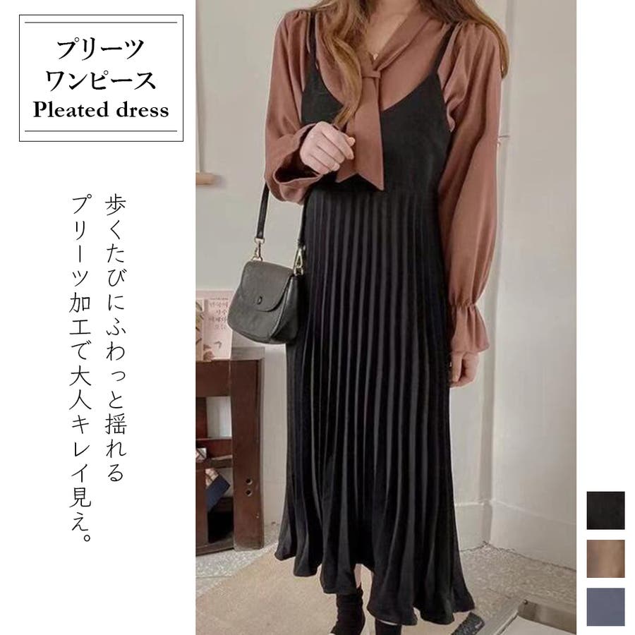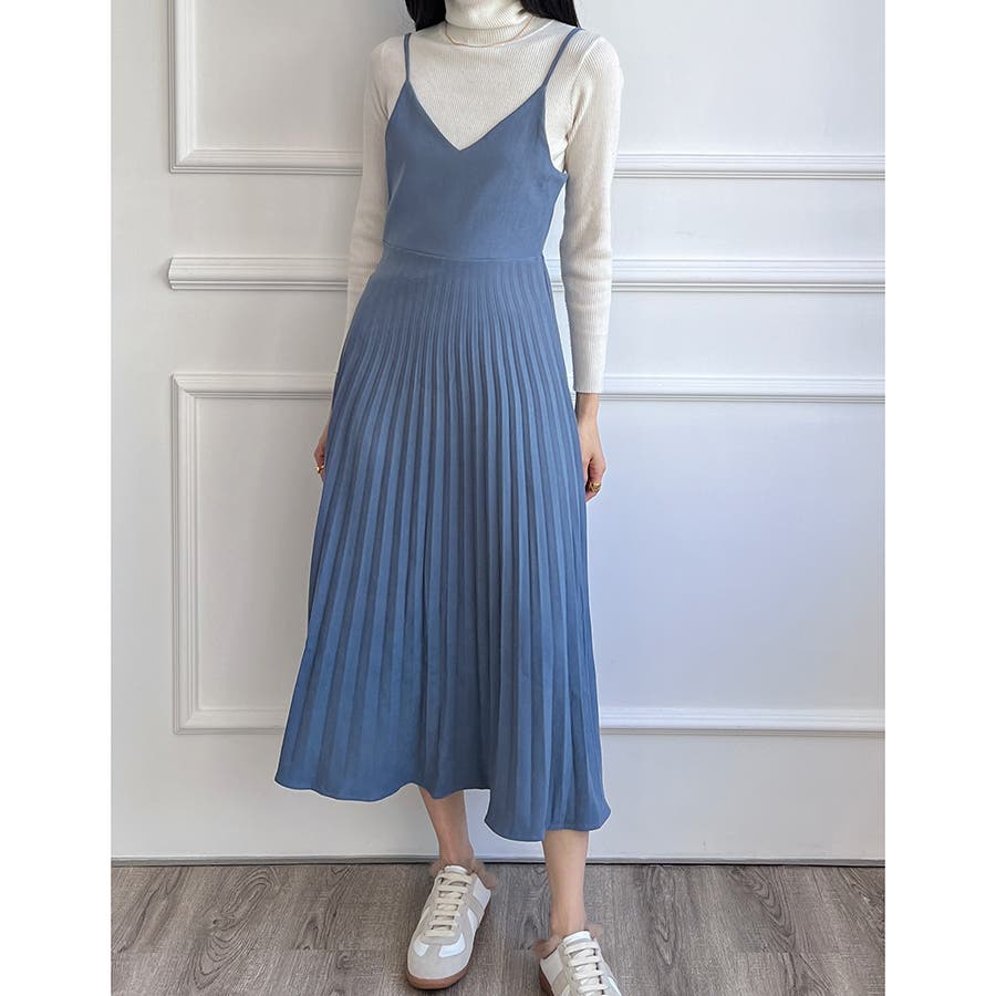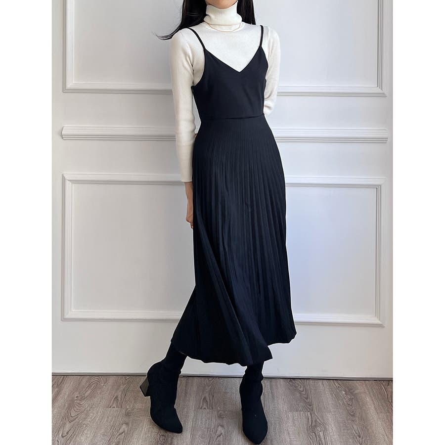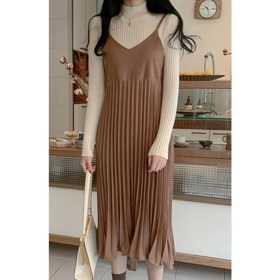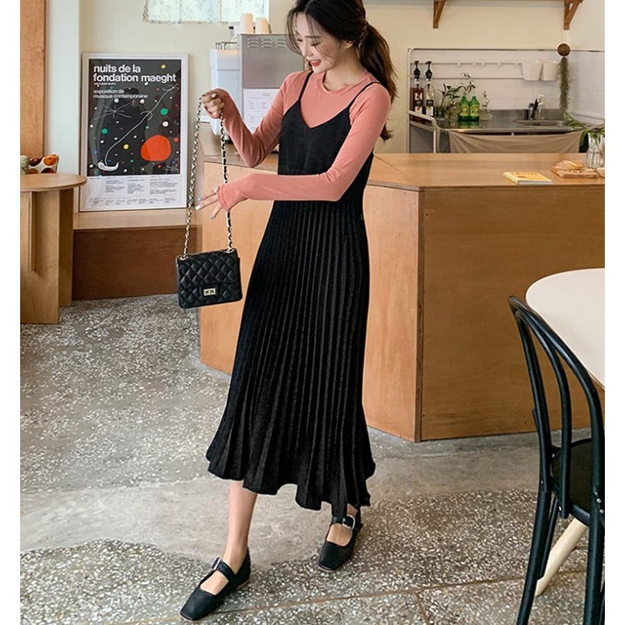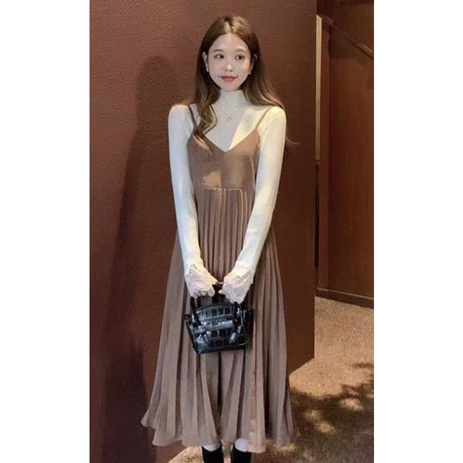 プリーツ切り替えキャミワンピース【韓国ファッション】
