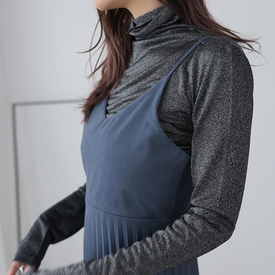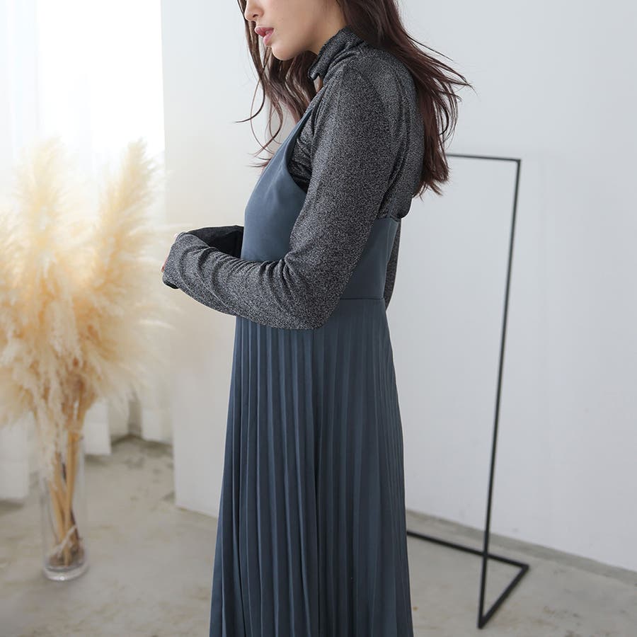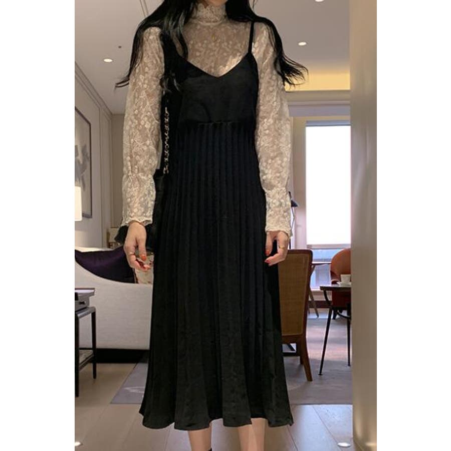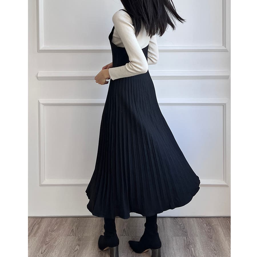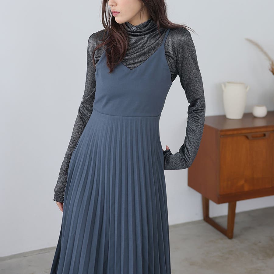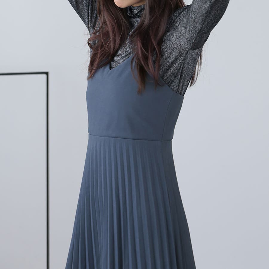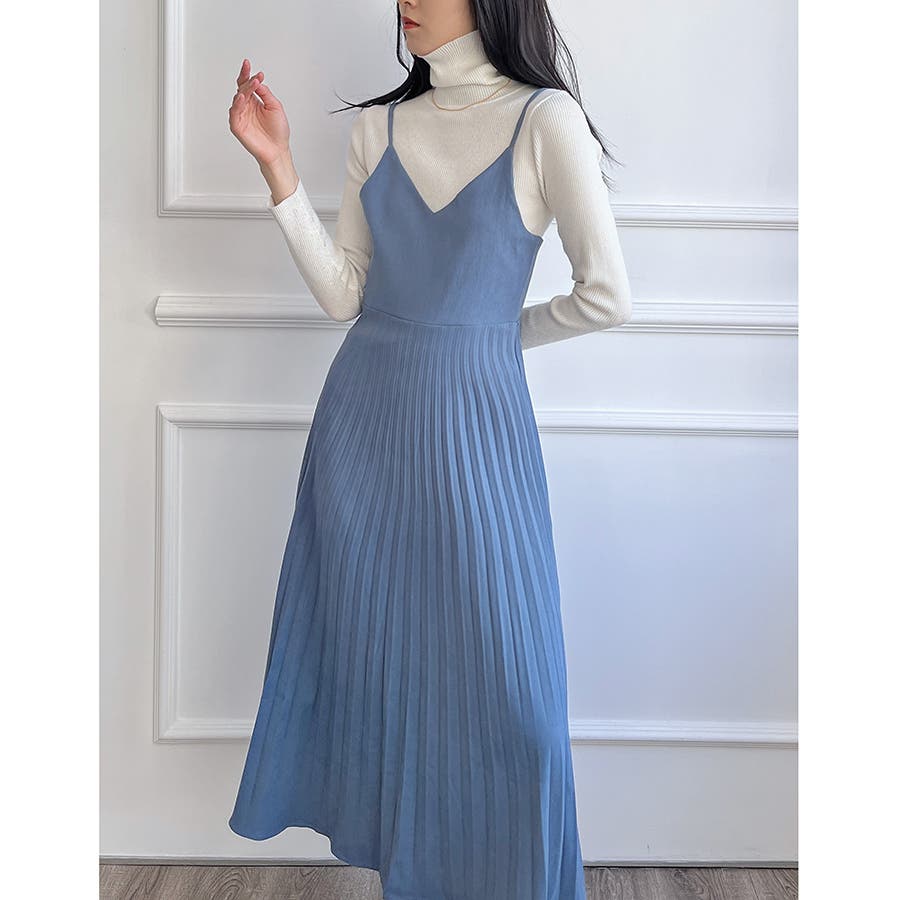 プリーツ切り替えキャミワンピース【韓国ファッション】