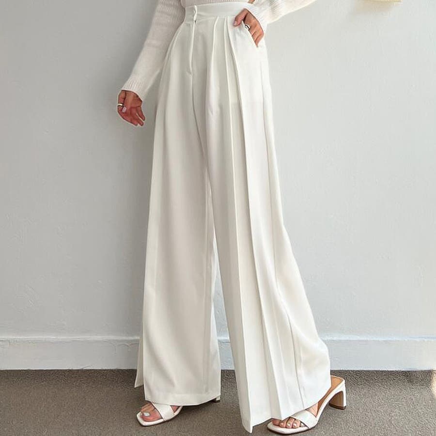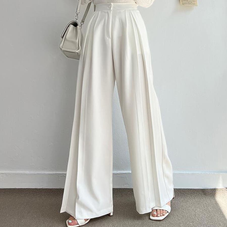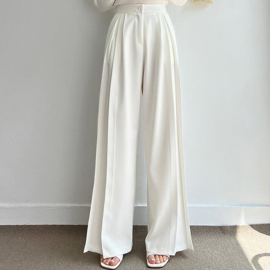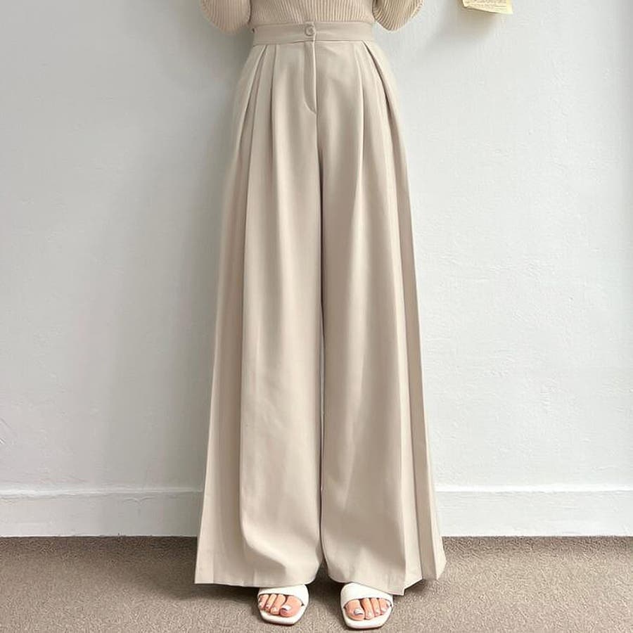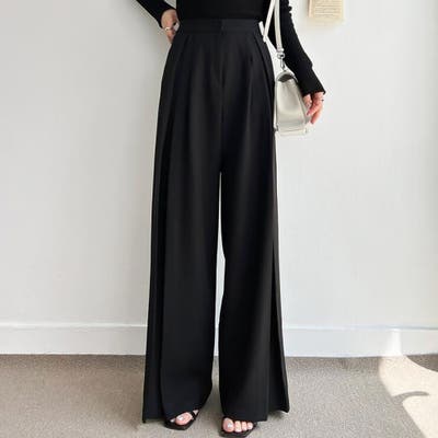程よくワイドでこなれた印象の女性らしいキレイめパンツ