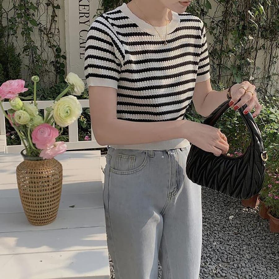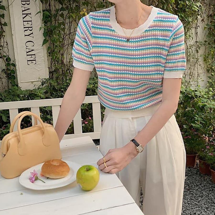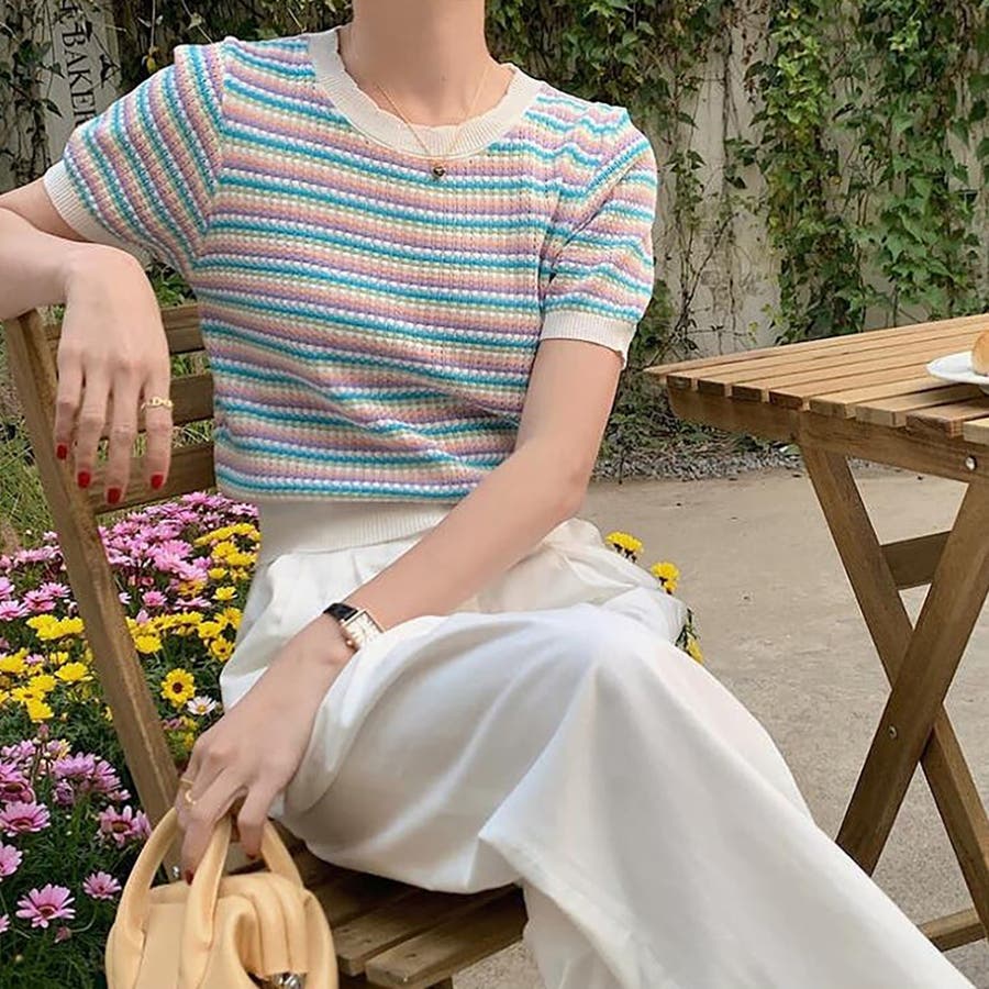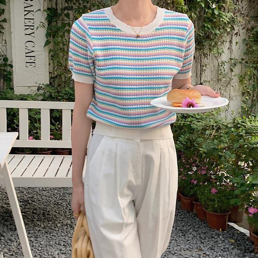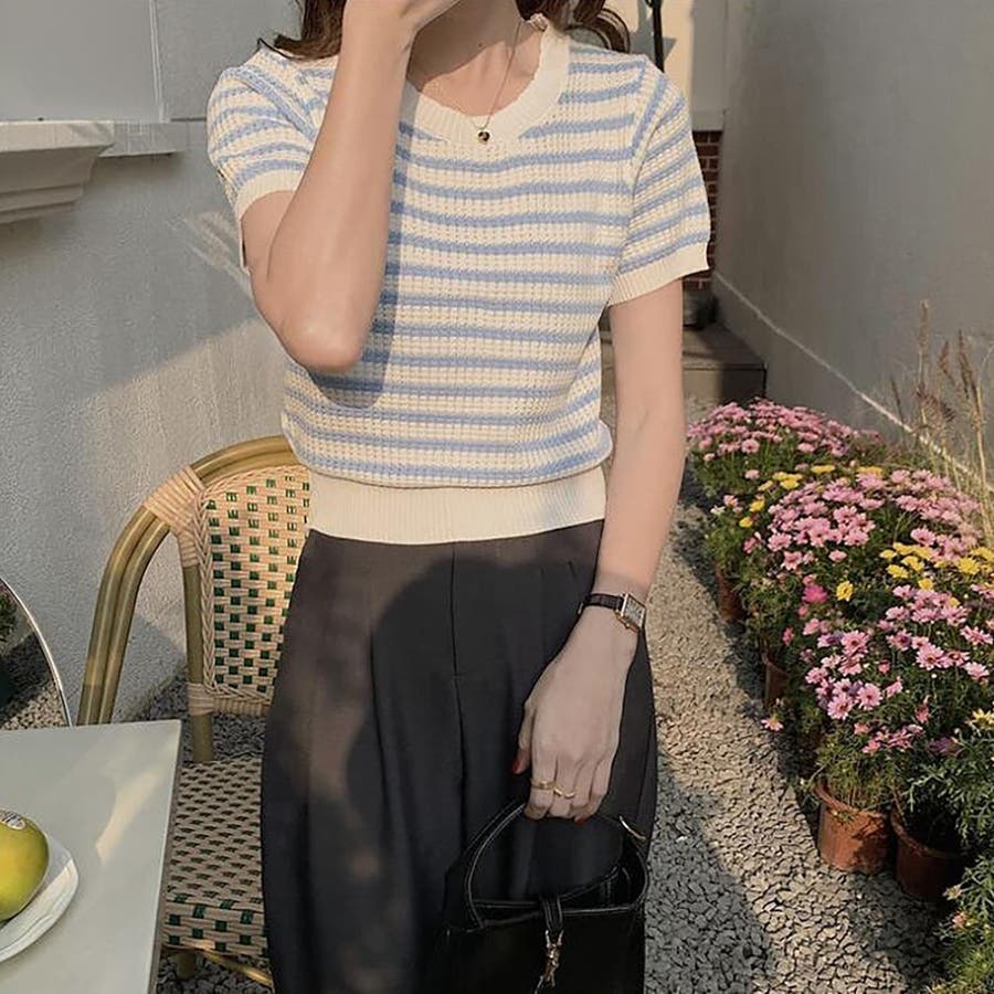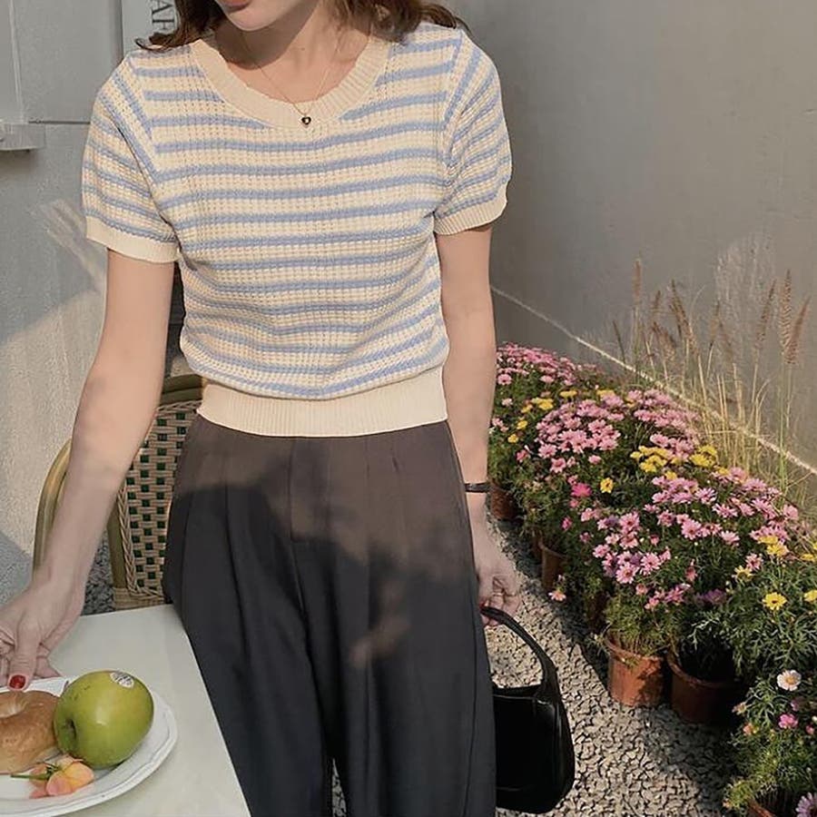 爽やかなボーダー柄がシーズンライクなサマーニット