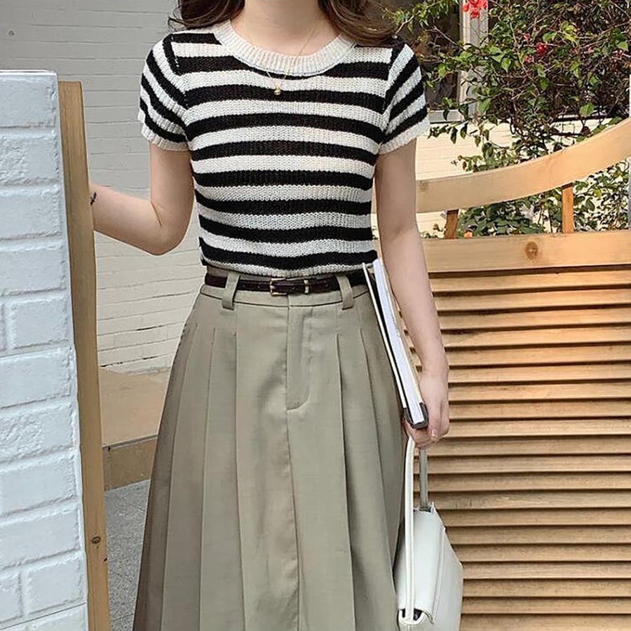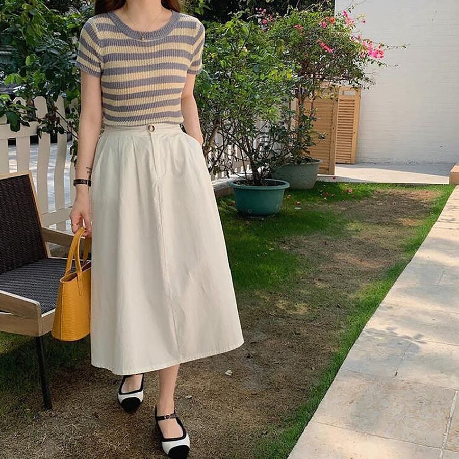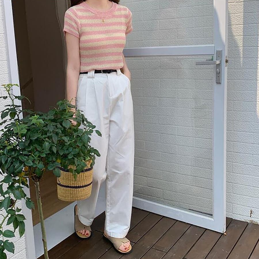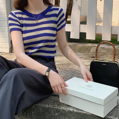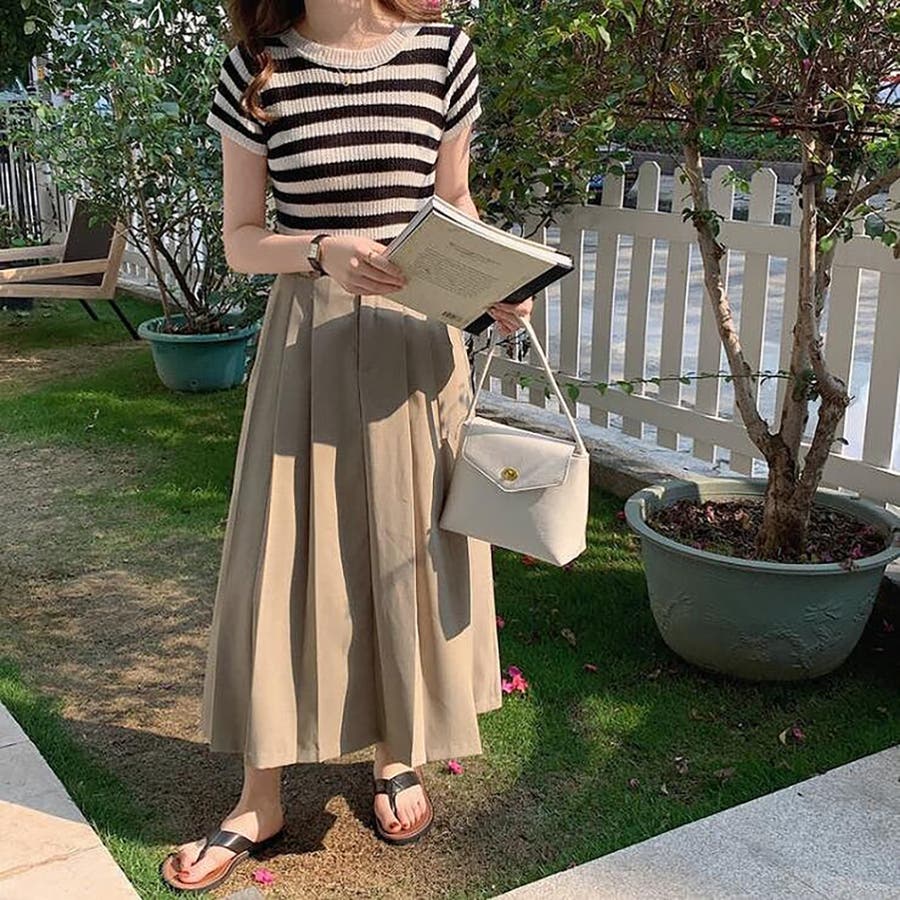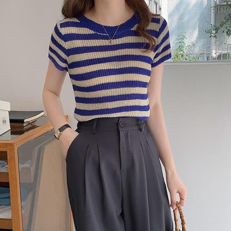 サイズはピッタリめなので、わりとコンパクトに着られるので、パンツでもスカートでも合わせられてとてもいいです!