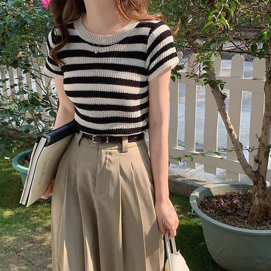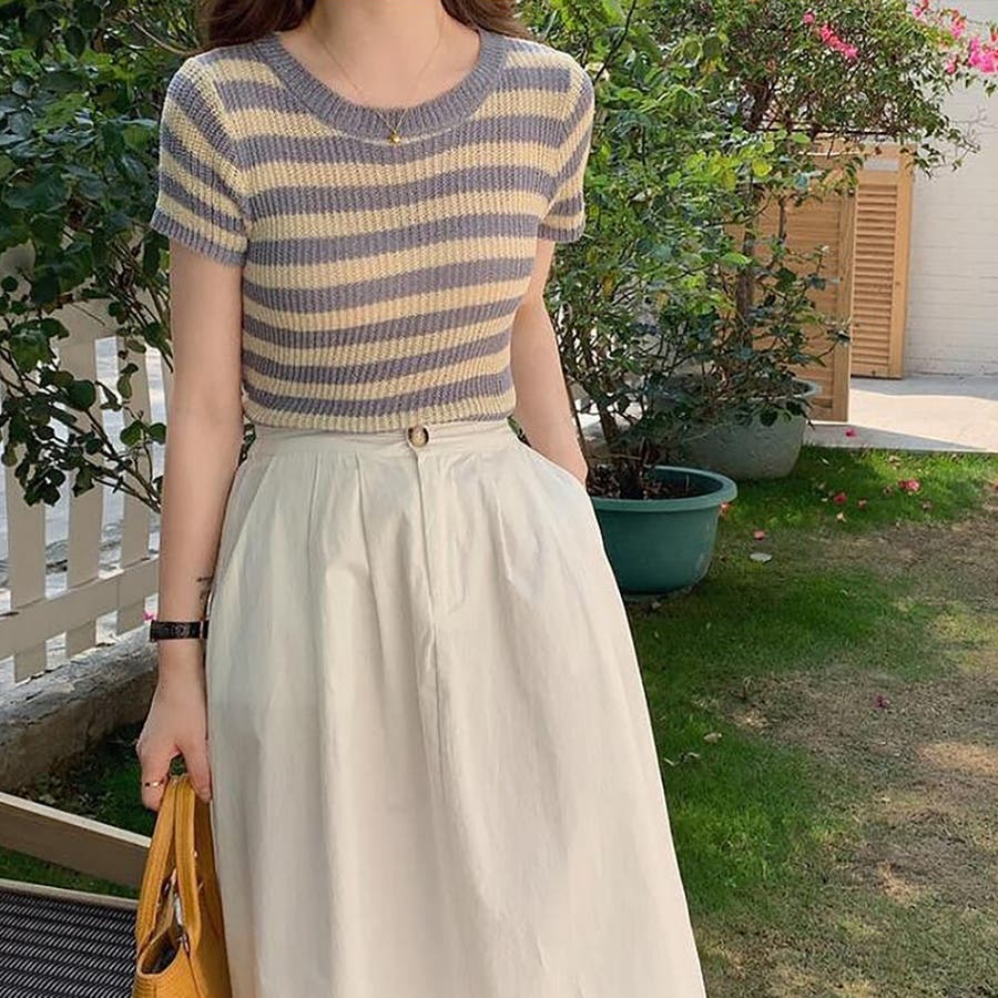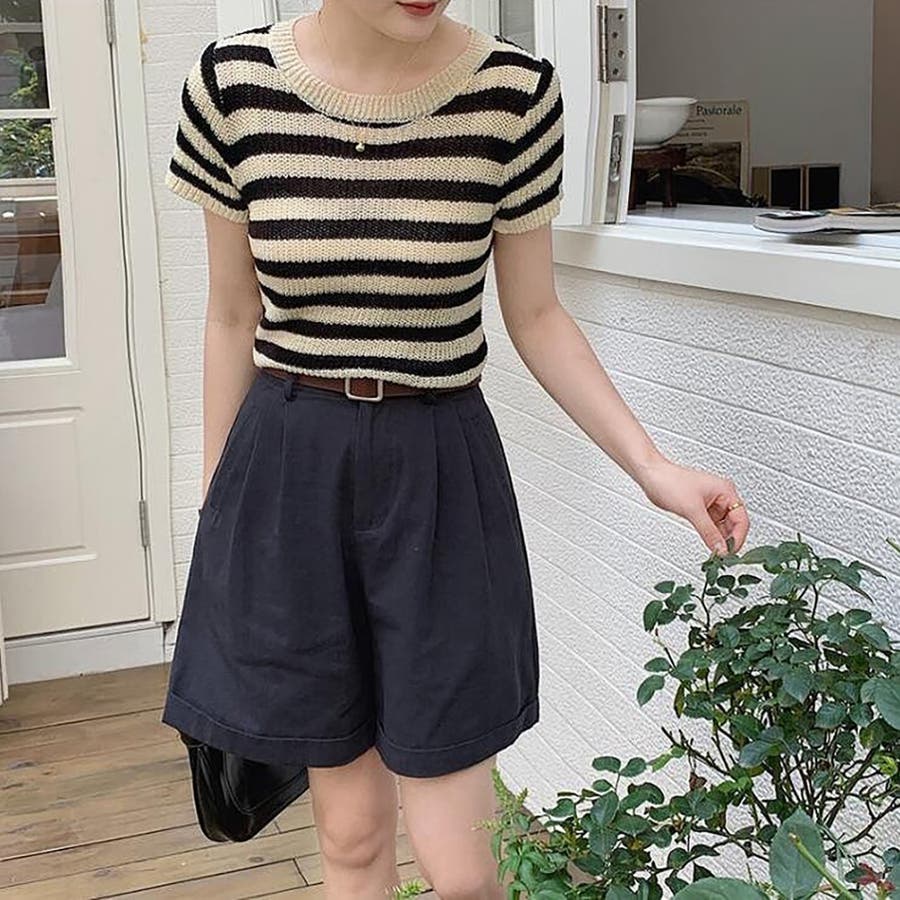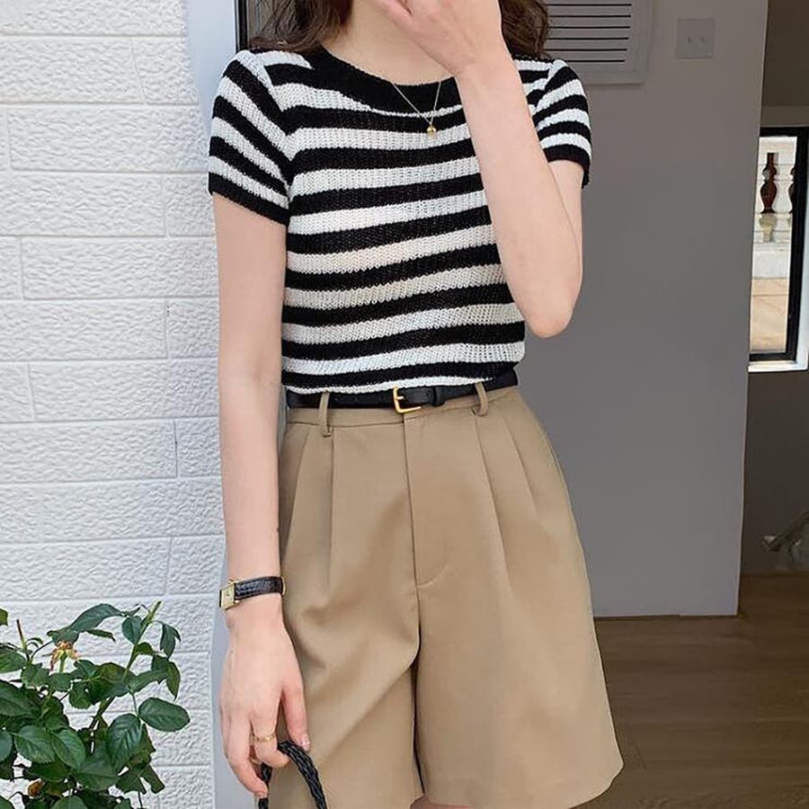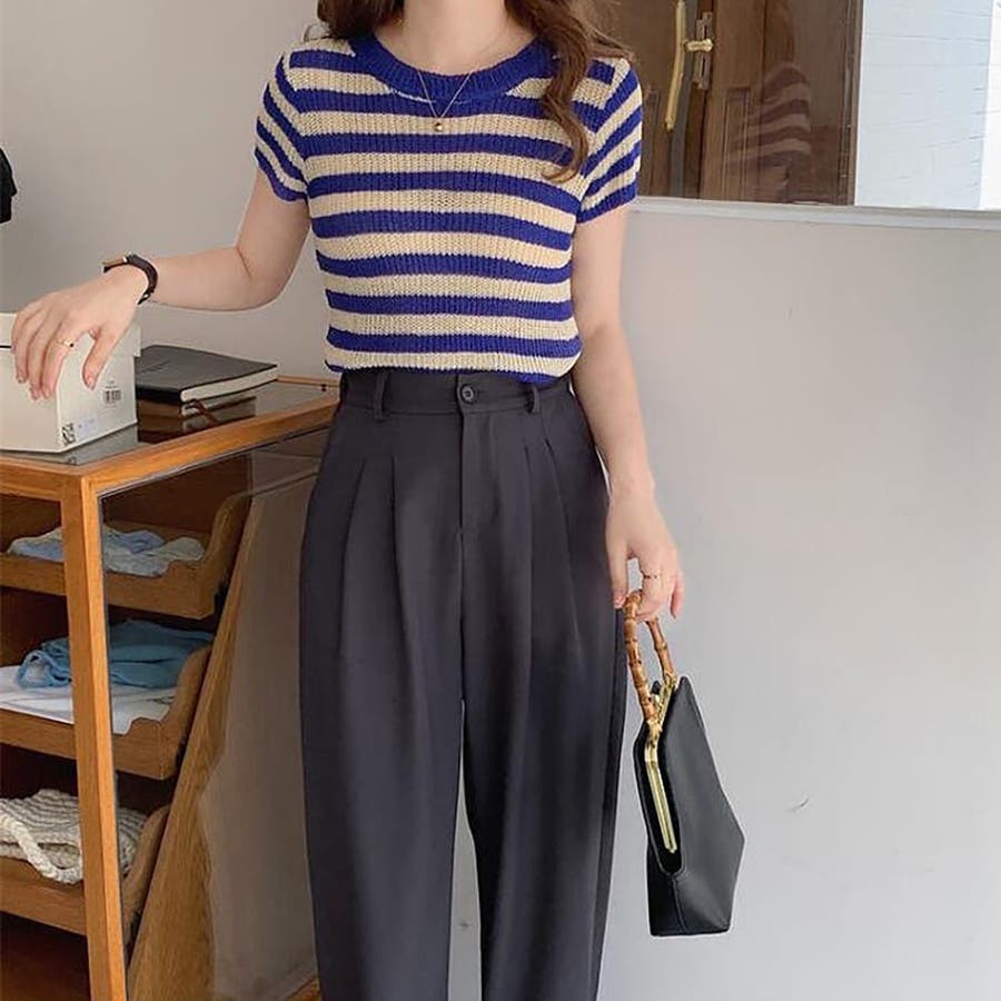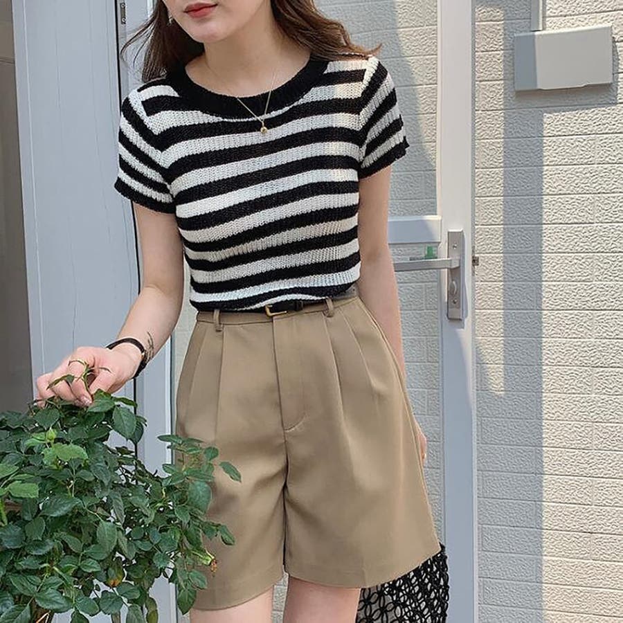 サイズはピッタリめなので、わりとコンパクトに着られるので、パンツでもスカートでも合わせられてとてもいいです!