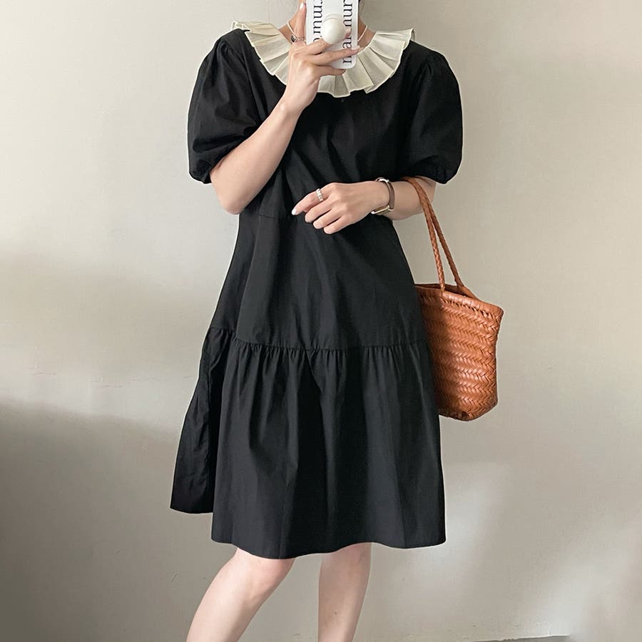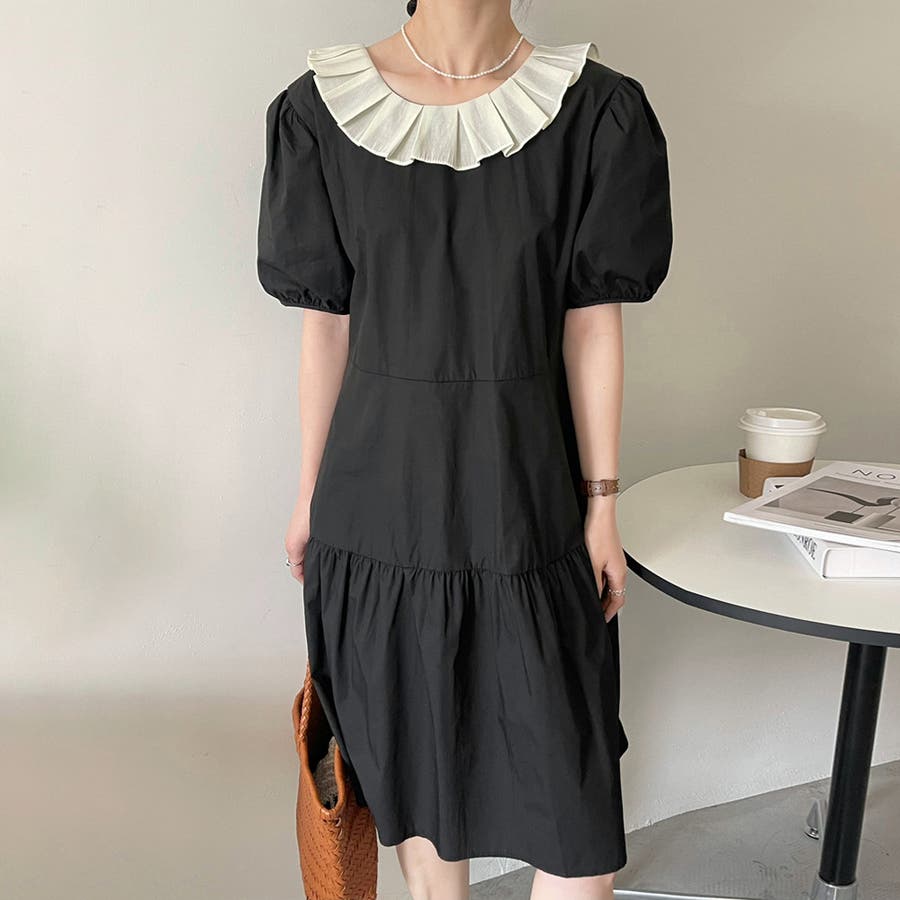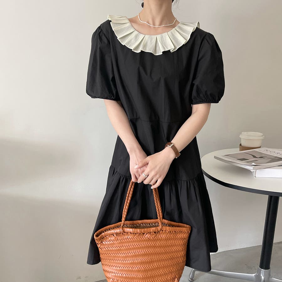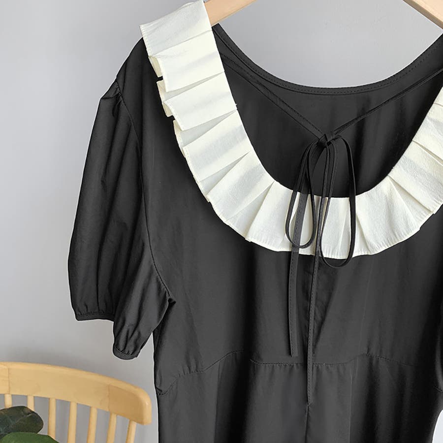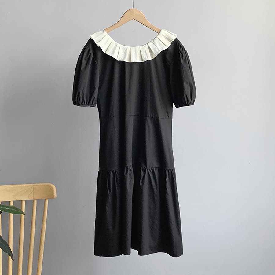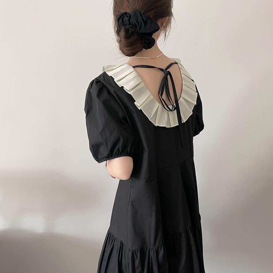 フリル衿背中あきリボンワンピース【韓国ファッション】