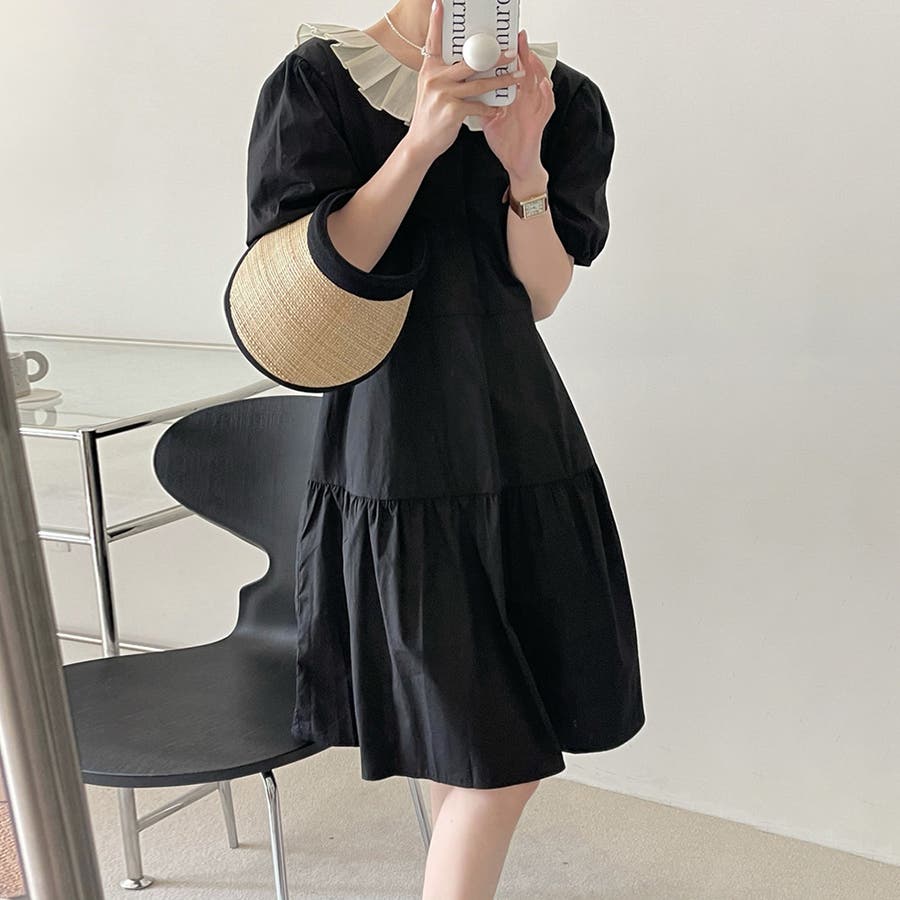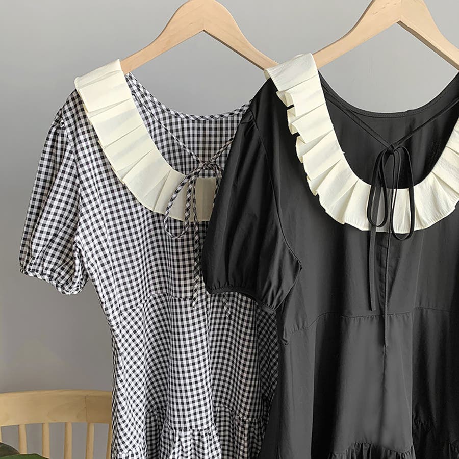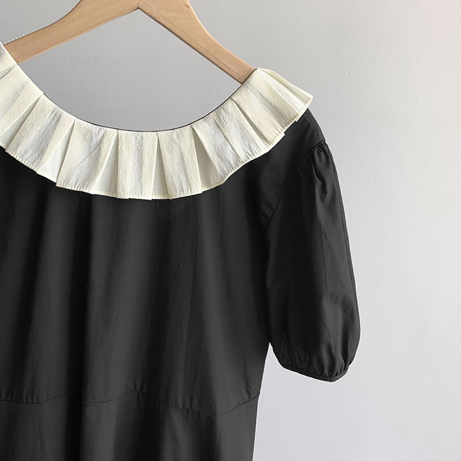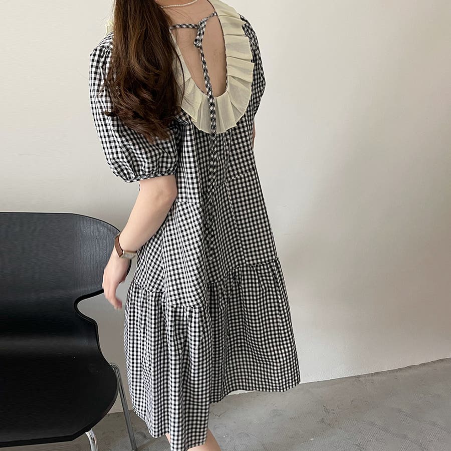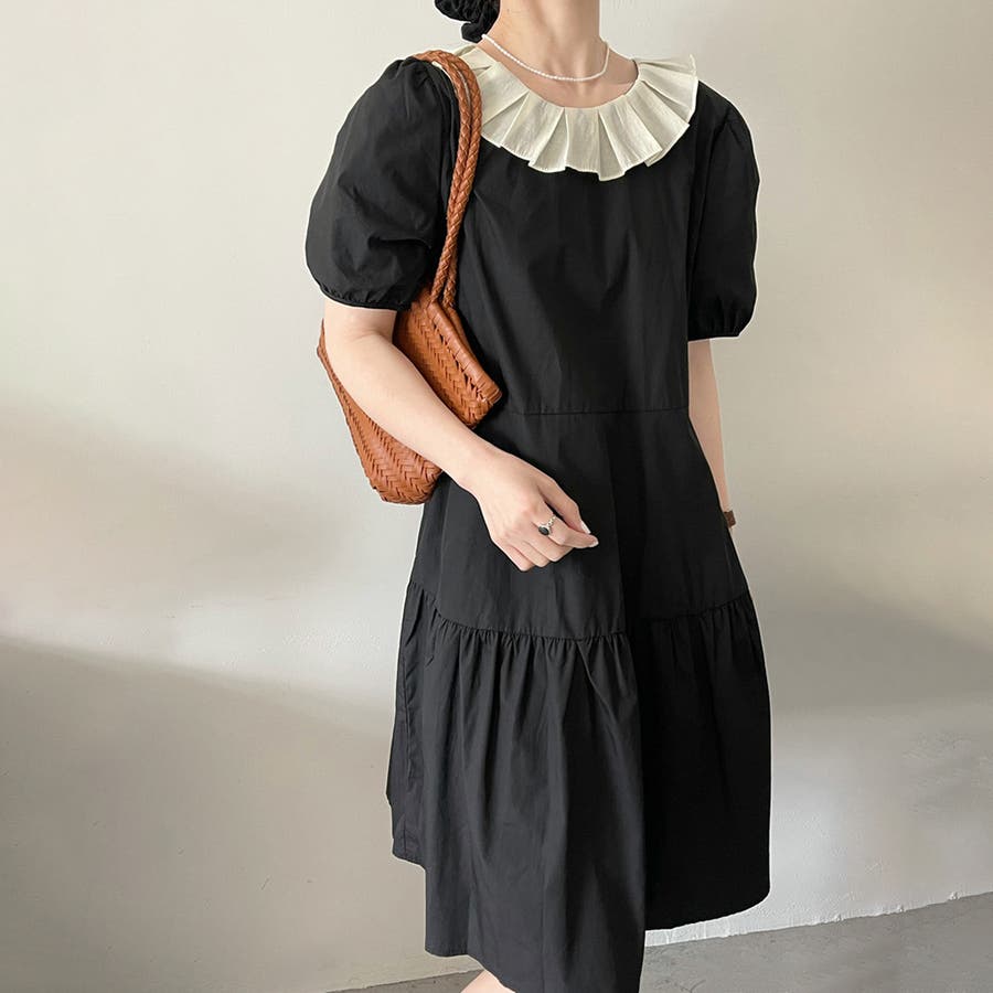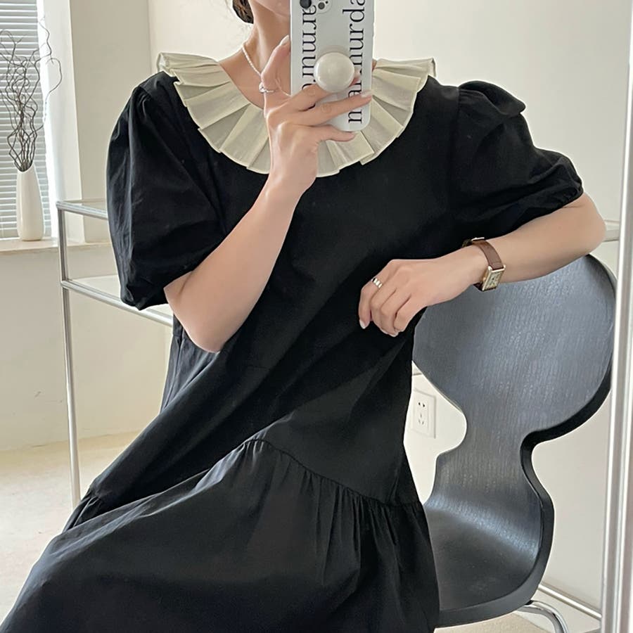 フリル衿背中あきリボンワンピース【韓国ファッション】