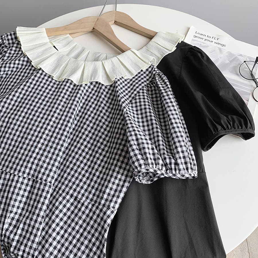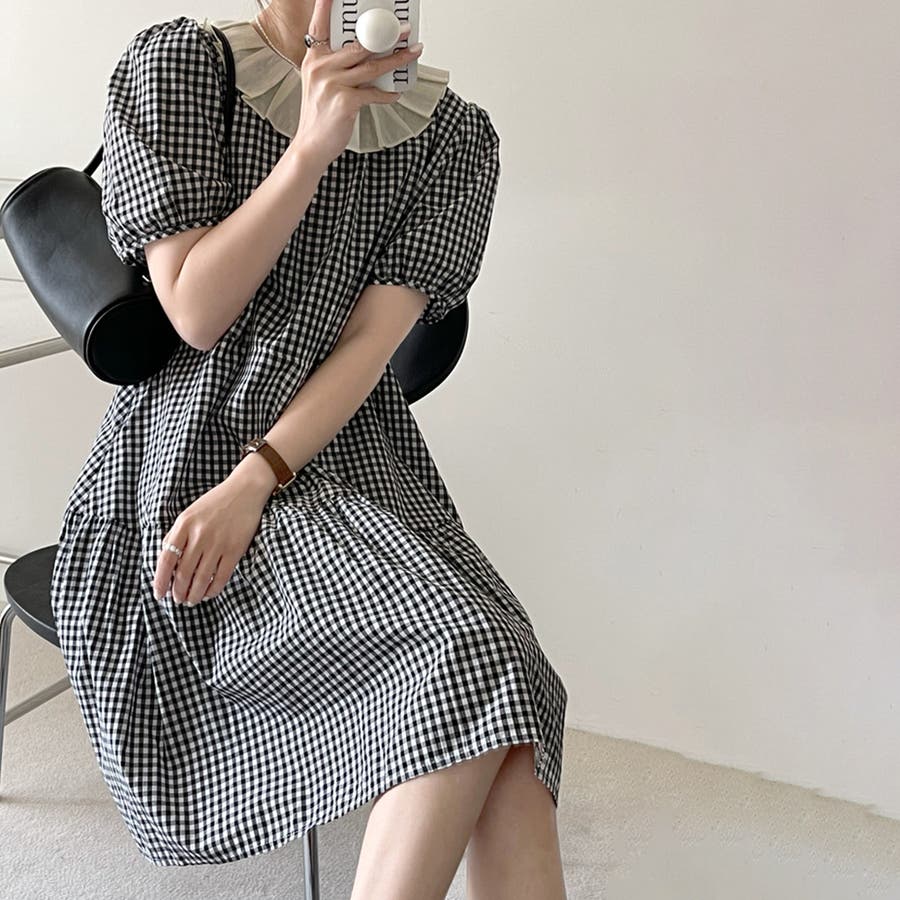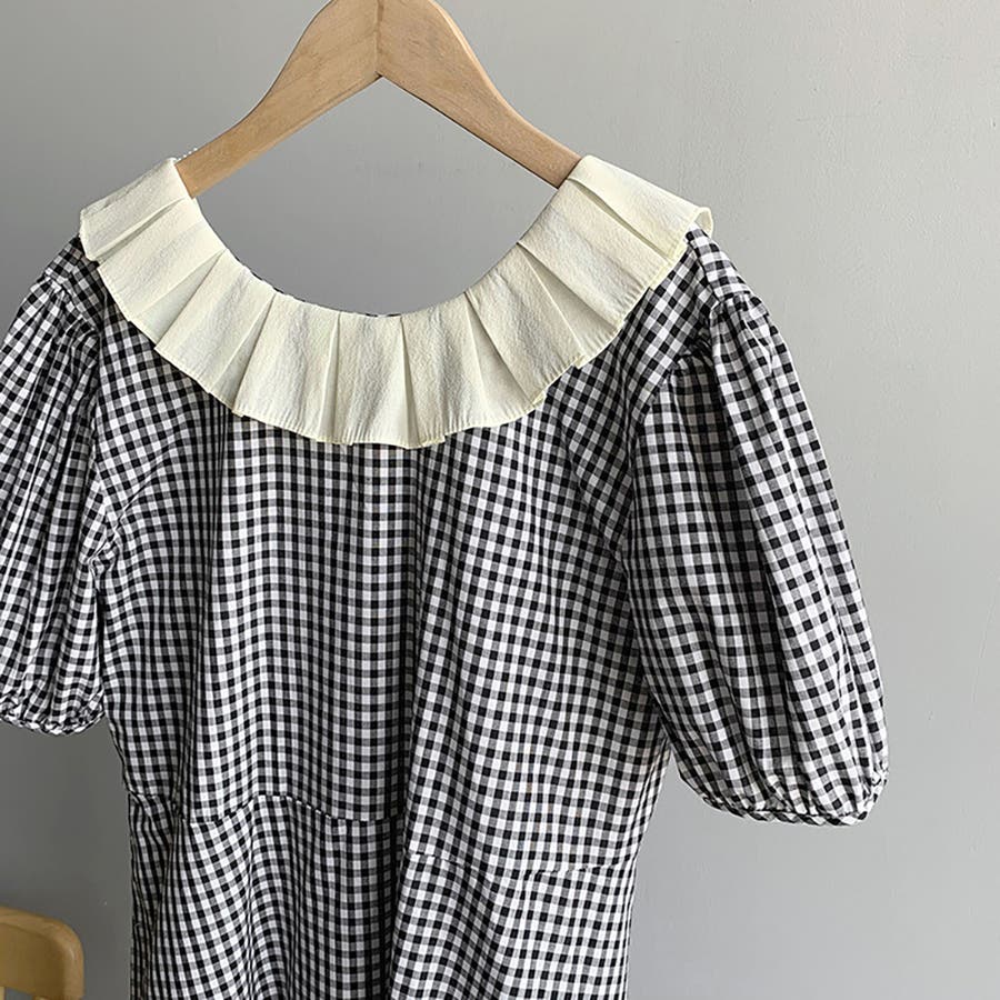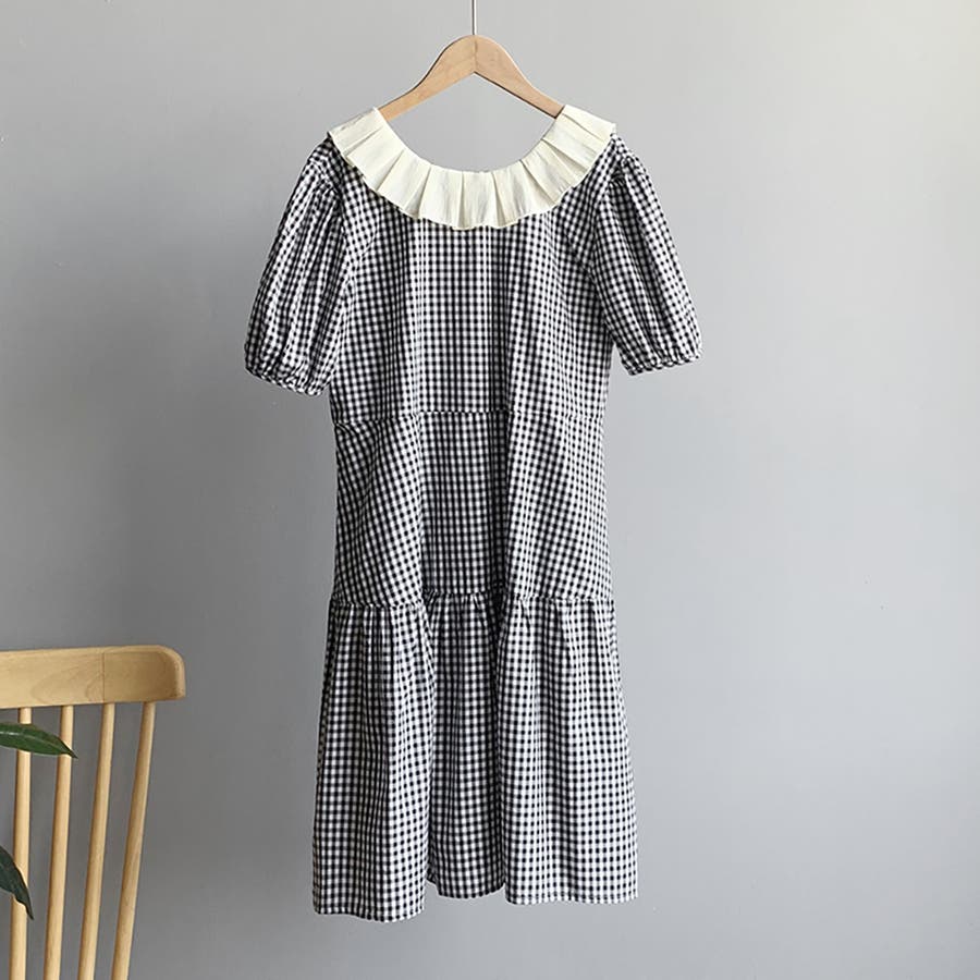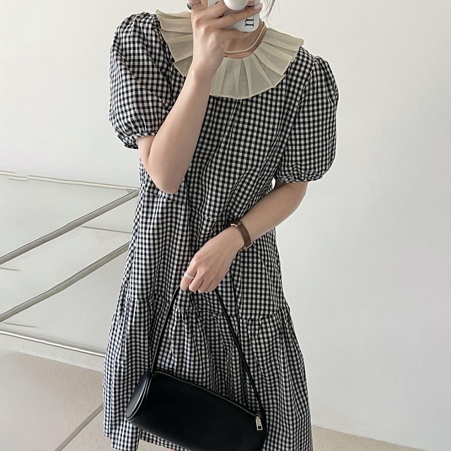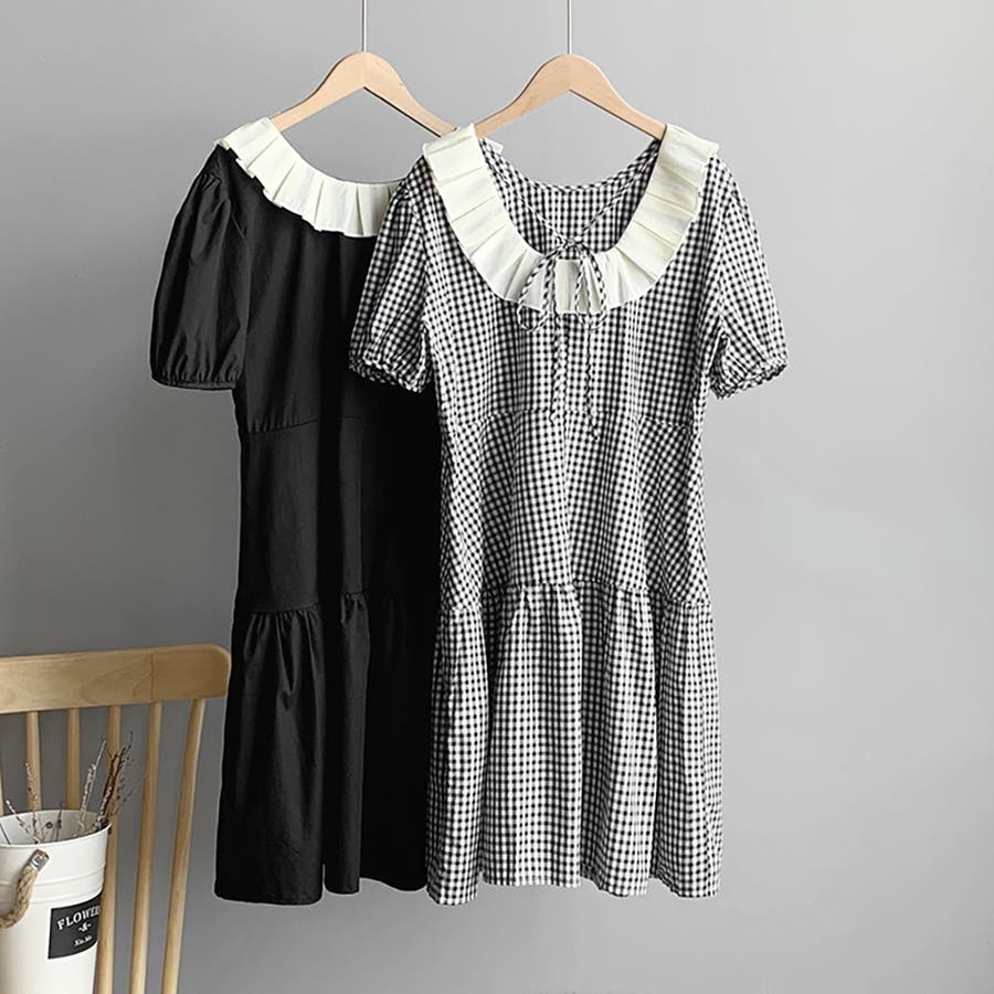 フリル衿背中あきリボンワンピース【韓国ファッション】