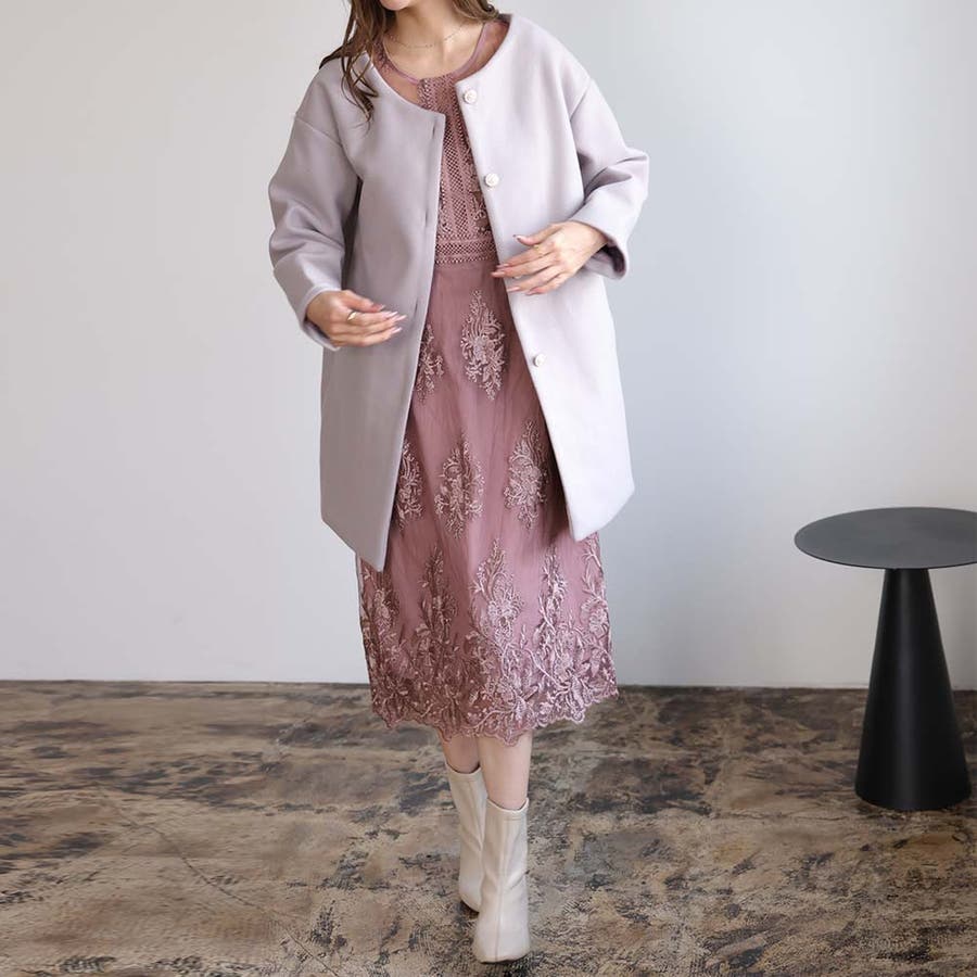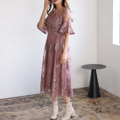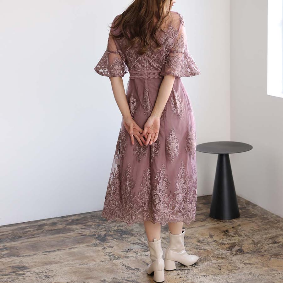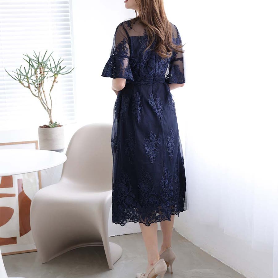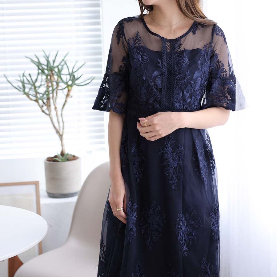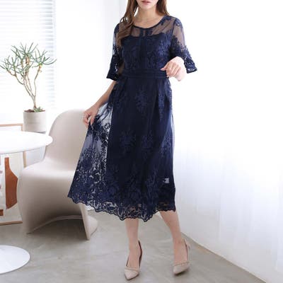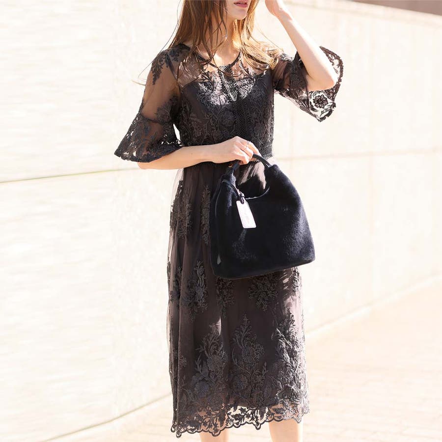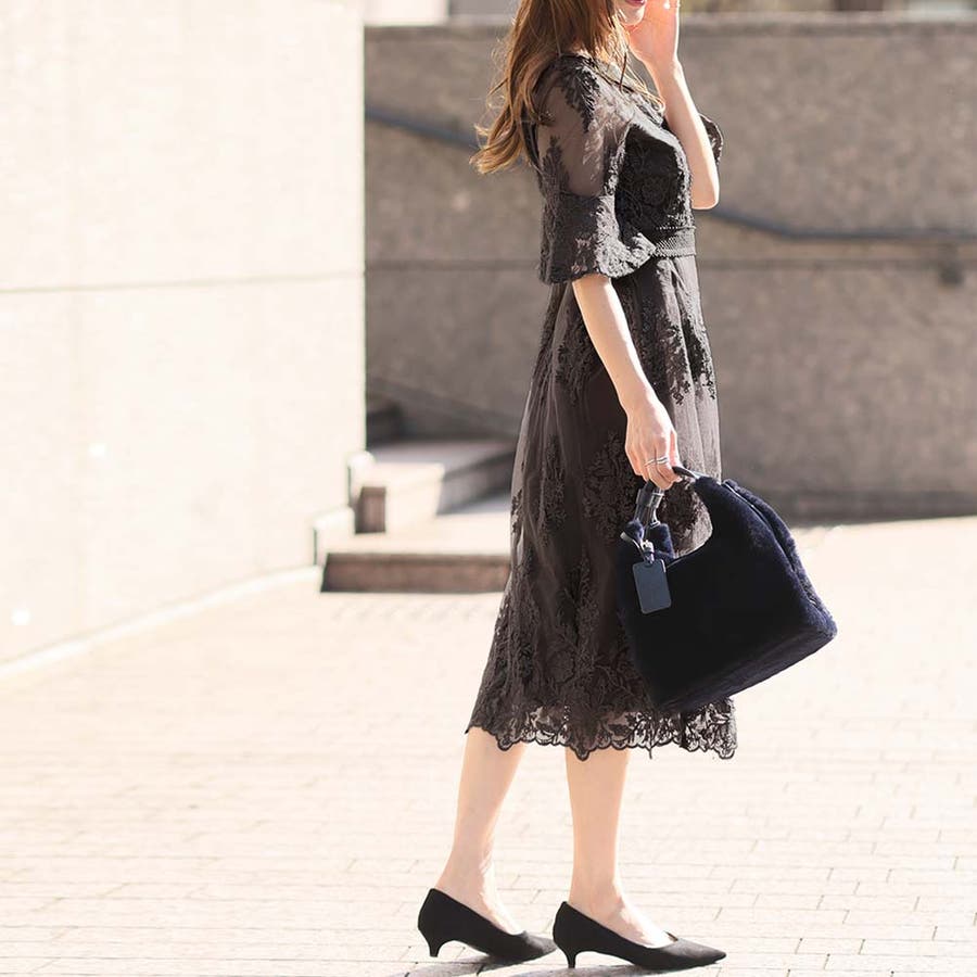 《一枚でシックな装い決まる総レース仕立てのミモレ丈ワンピース》