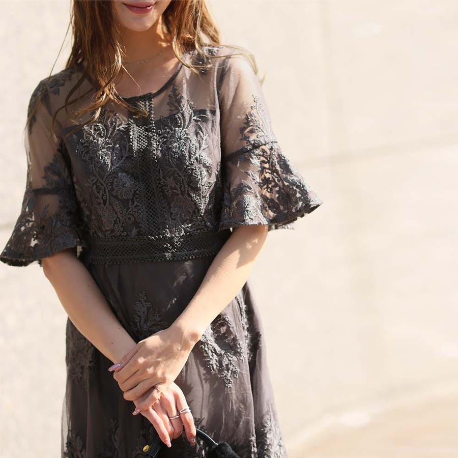 エレガントなレース模様とシアー素材の抜け感が大人の色気を醸す総レースワンピースです。