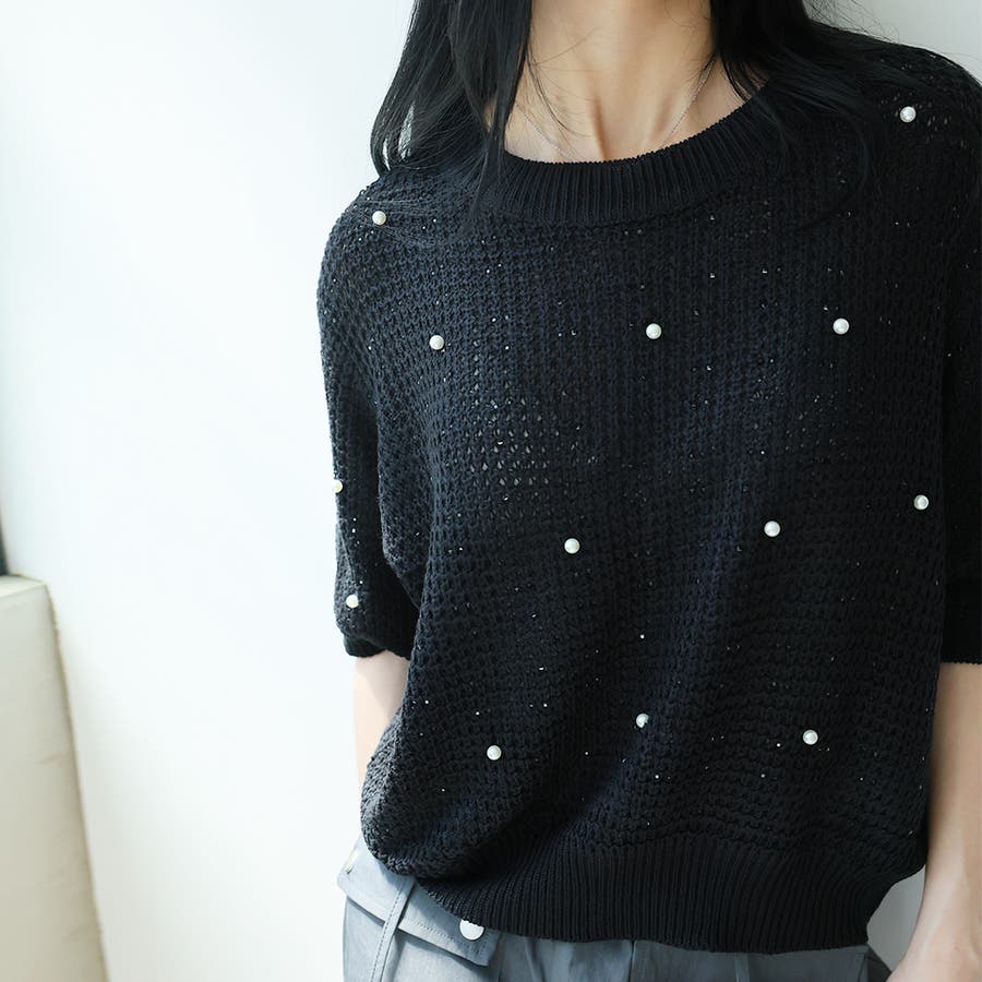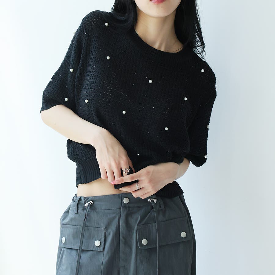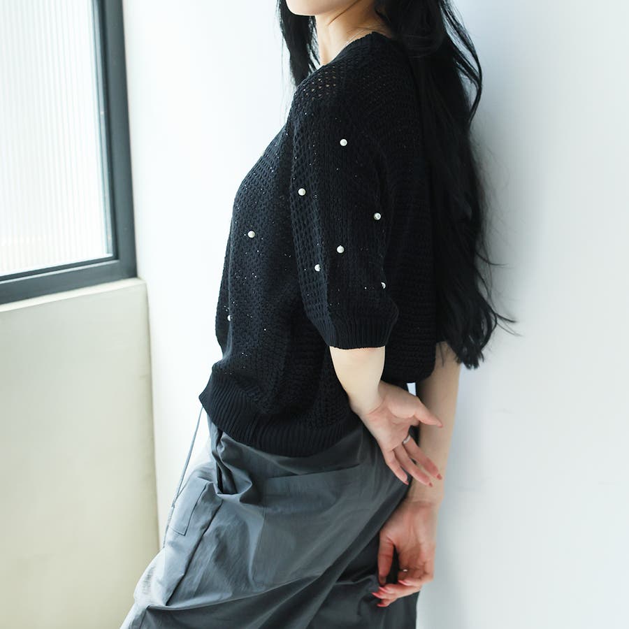 前身頃にパールとラインスーンを散りばめた着映えする1枚♡