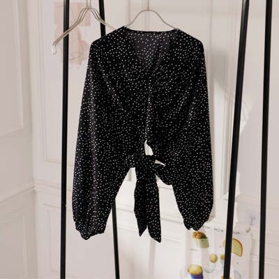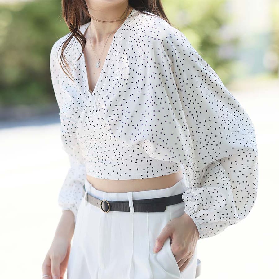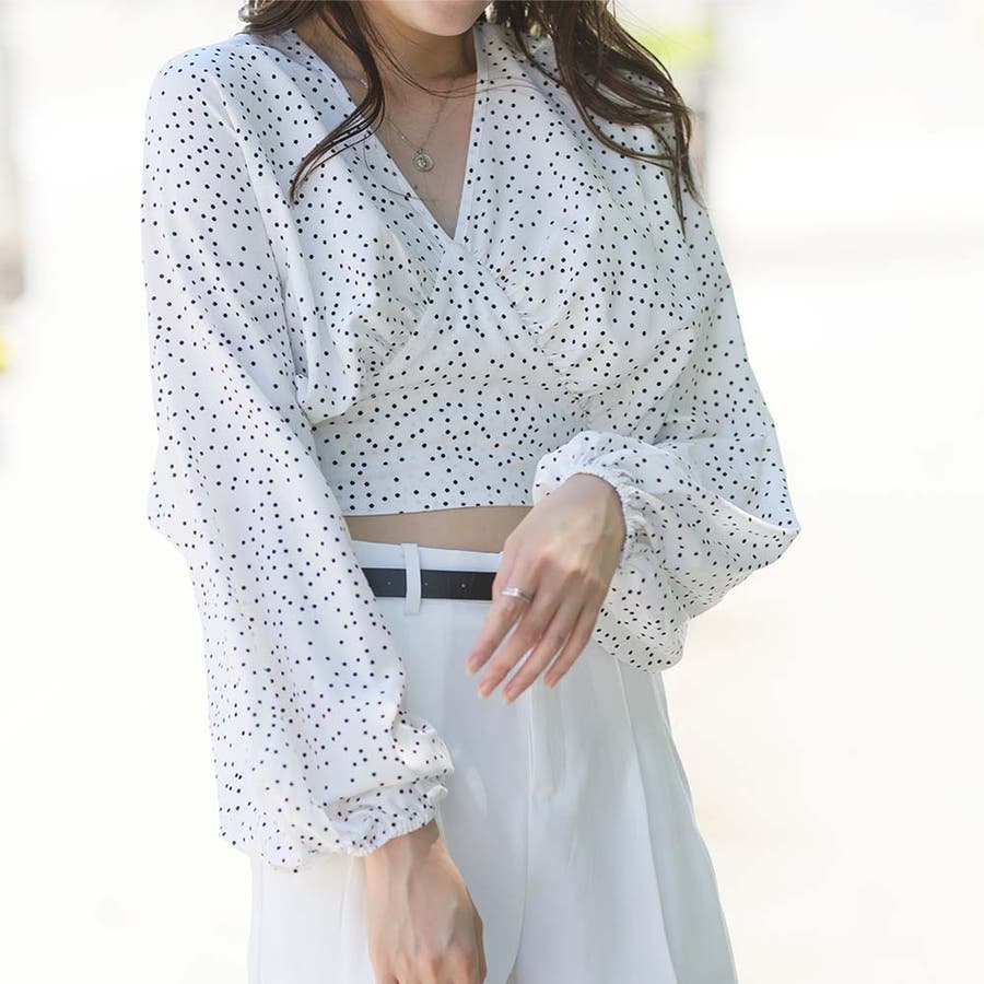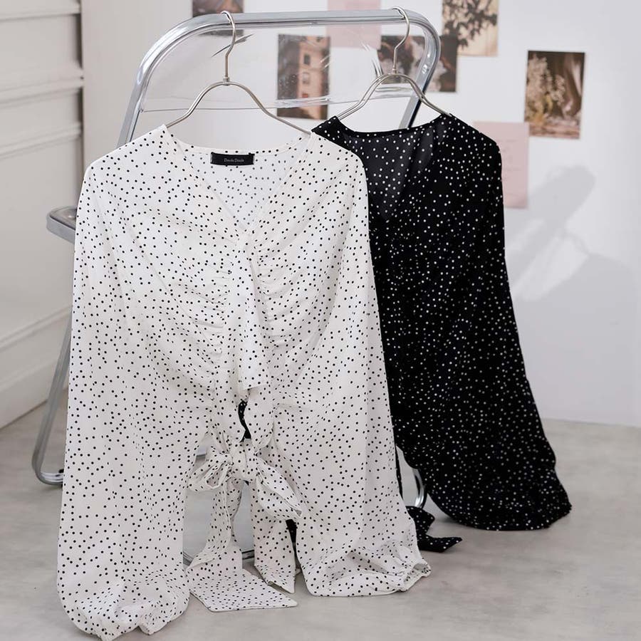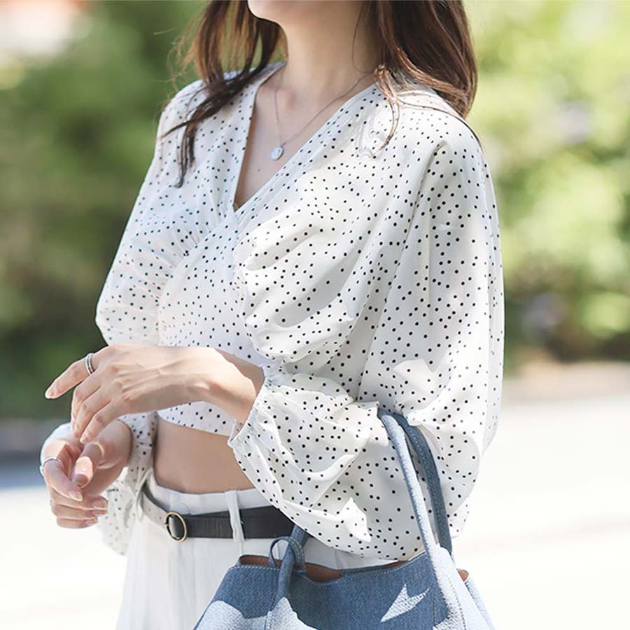 《ボリューム袖が可愛いドットブラウス♡》