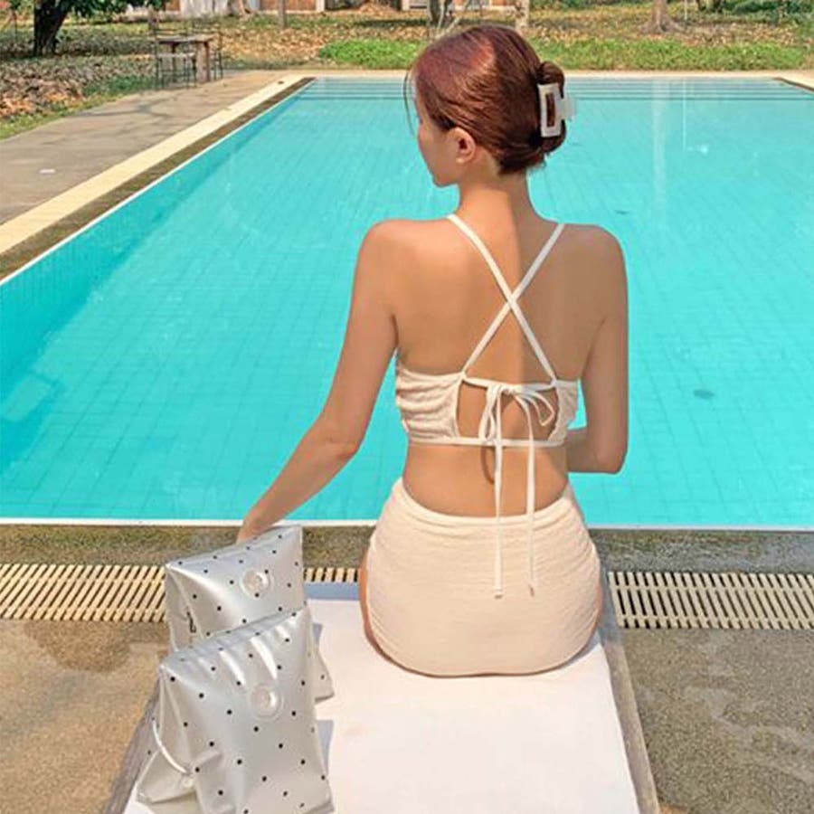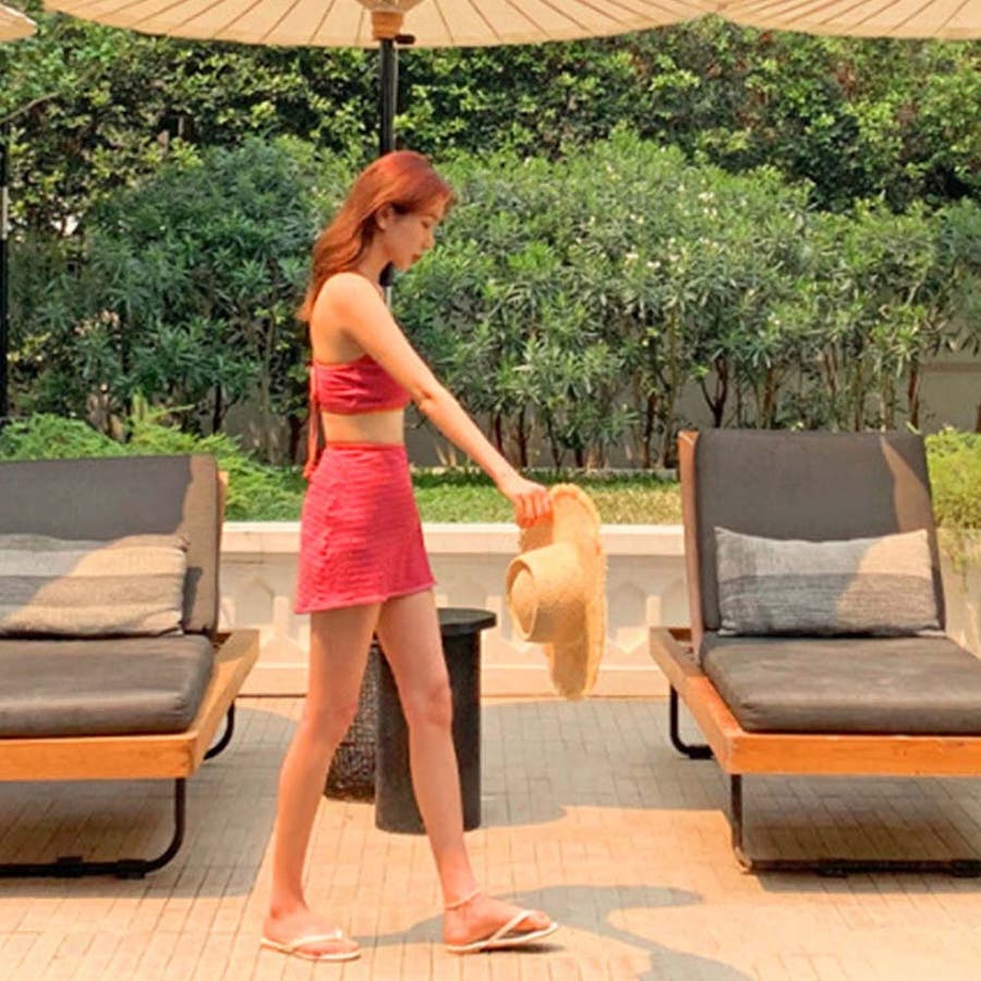 ママさんにも安心、体型カバーが叶うスカート付きのスイムウエア。