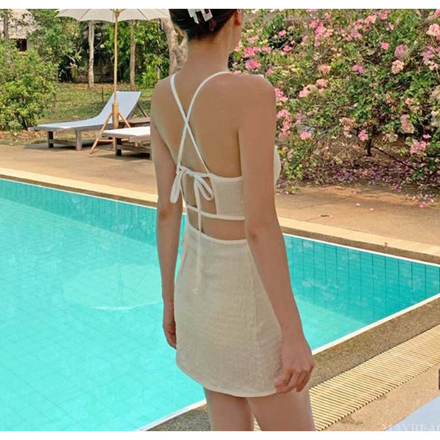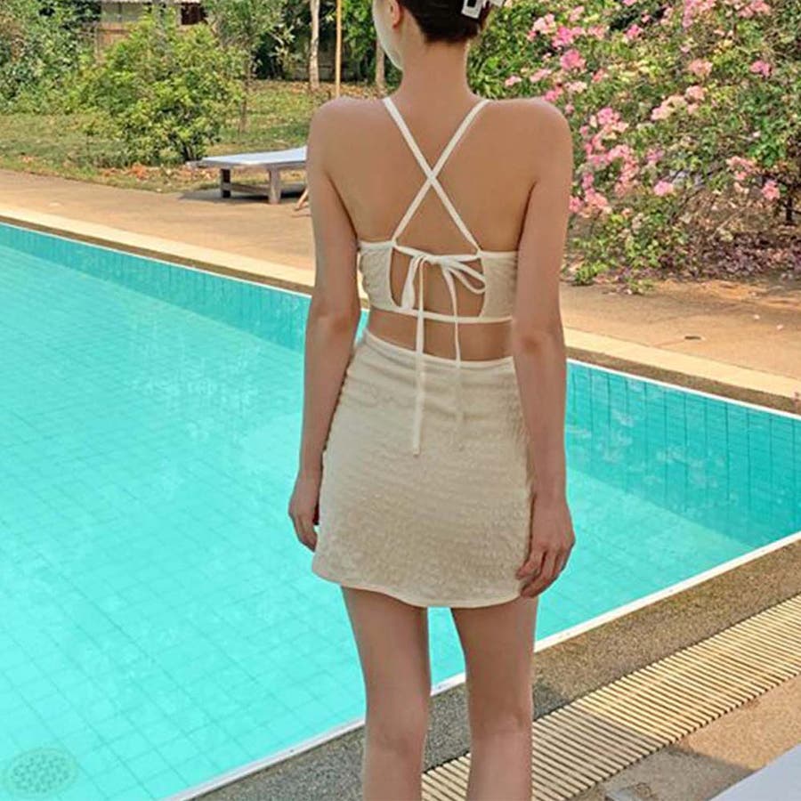 ホルターネックと背面の開き具合は紐で調節可能なのも嬉しいポイント◎