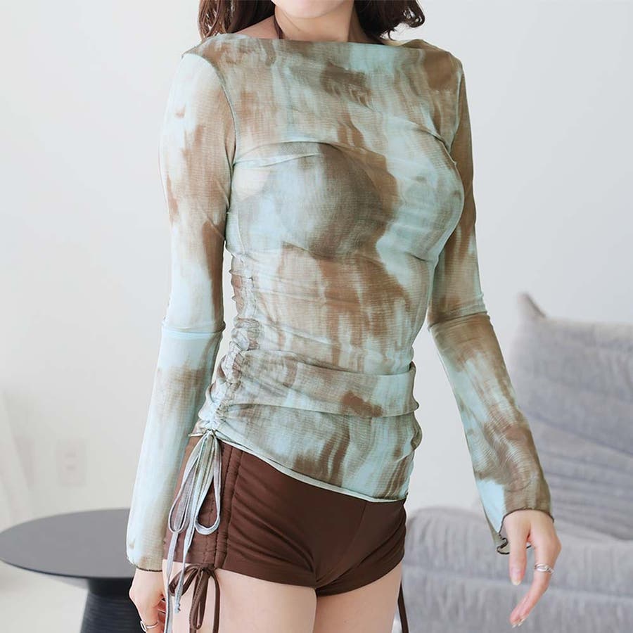 ・暗めのタイダイ柄とシアーな透け感でエッジが利いた、洗練されたデザインです。