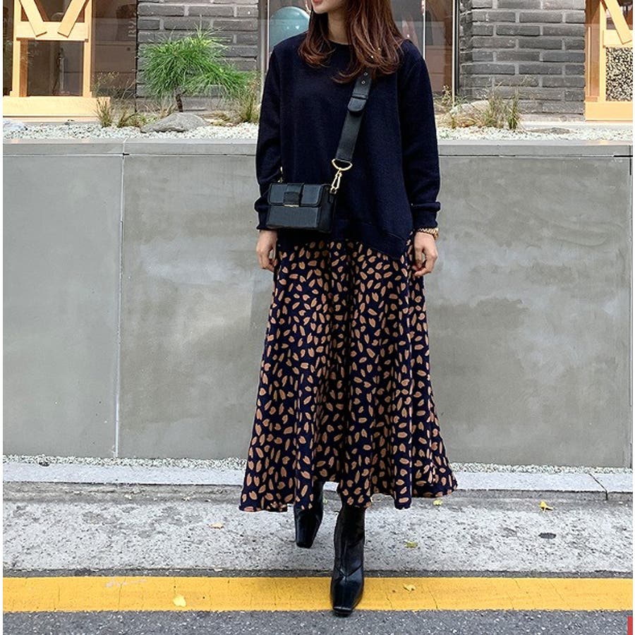 膝下ロングの丈感なので靴下やタイツとも相性良く、ショートブーツやロングブーツを合わせて楽しんでも素敵です。