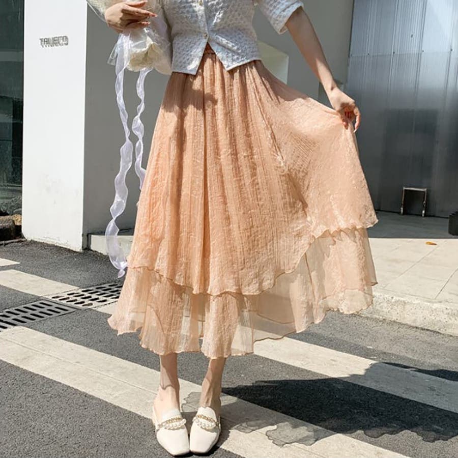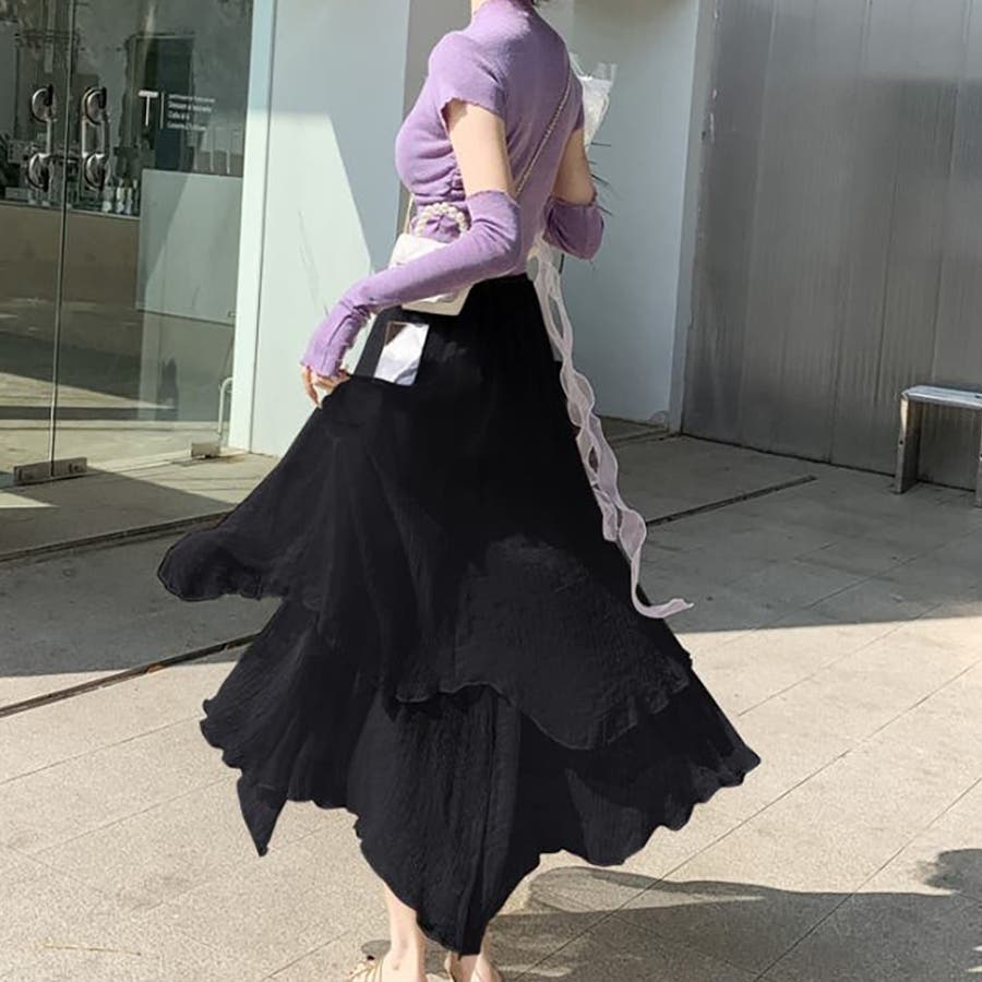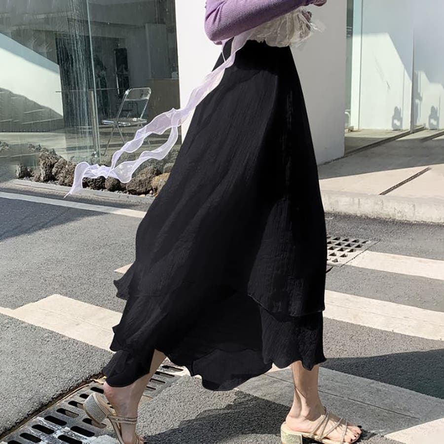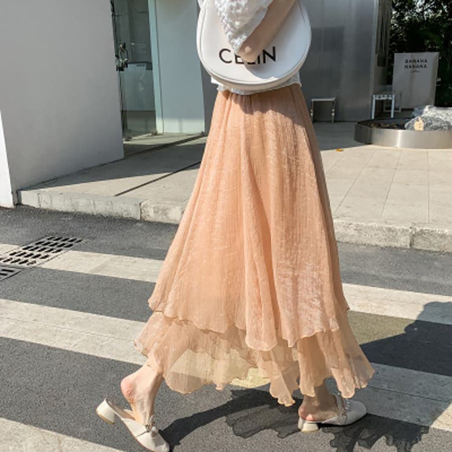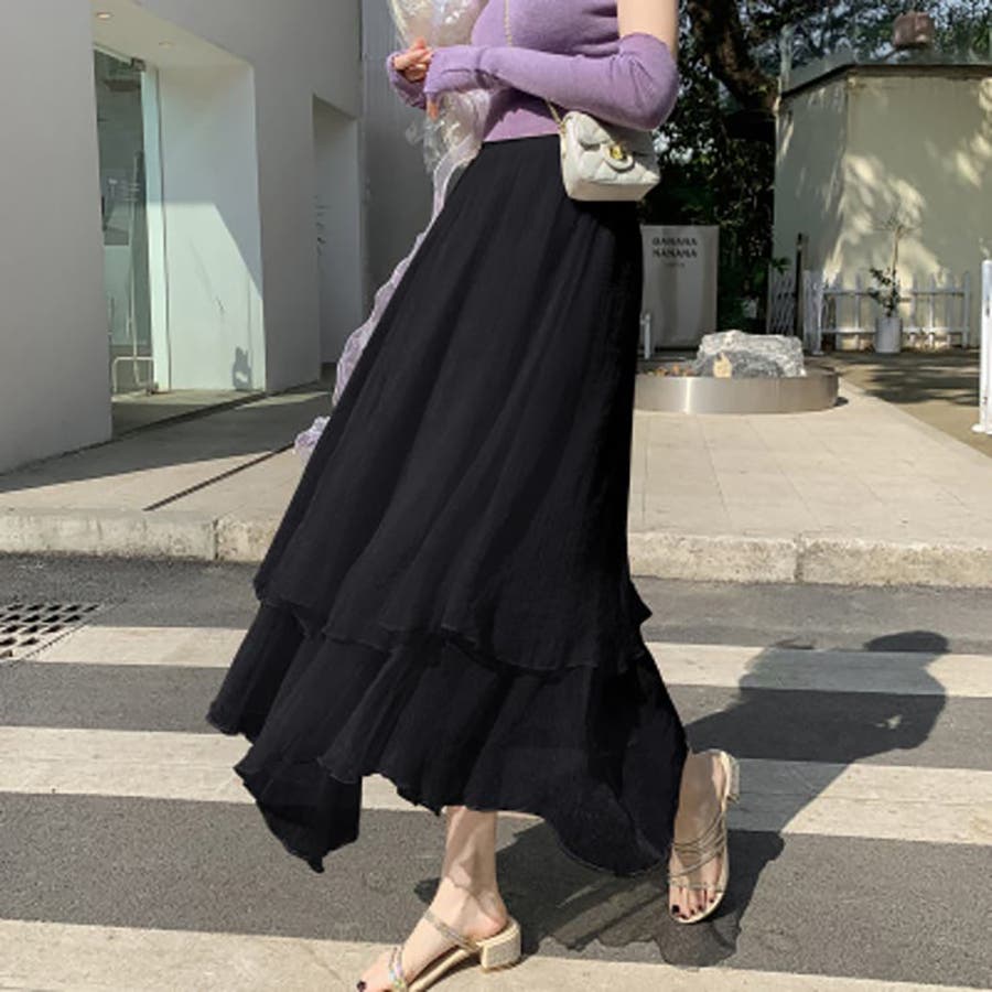 イレギュラーヘム シフォンフレアスカート【韓国ファッション】【春夏新商品】