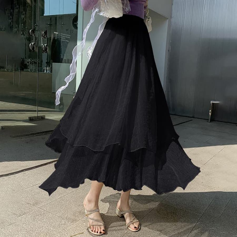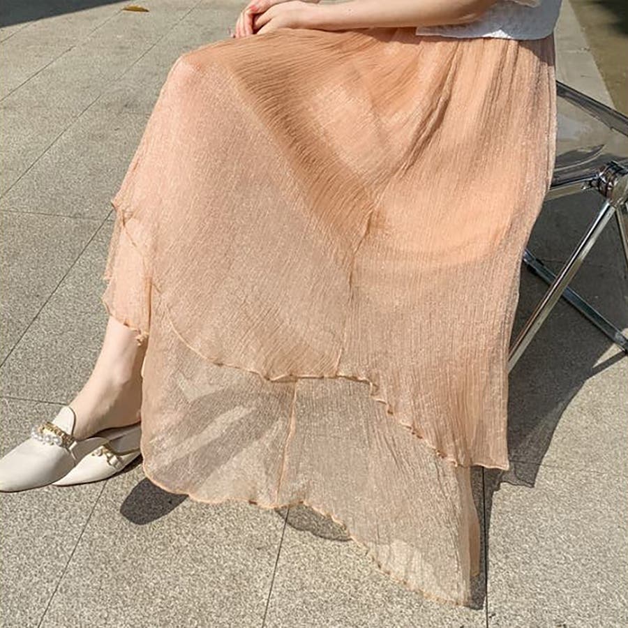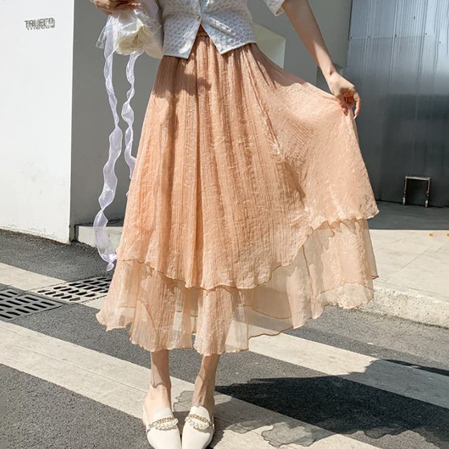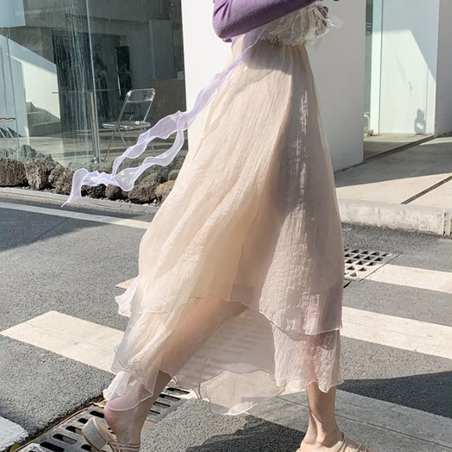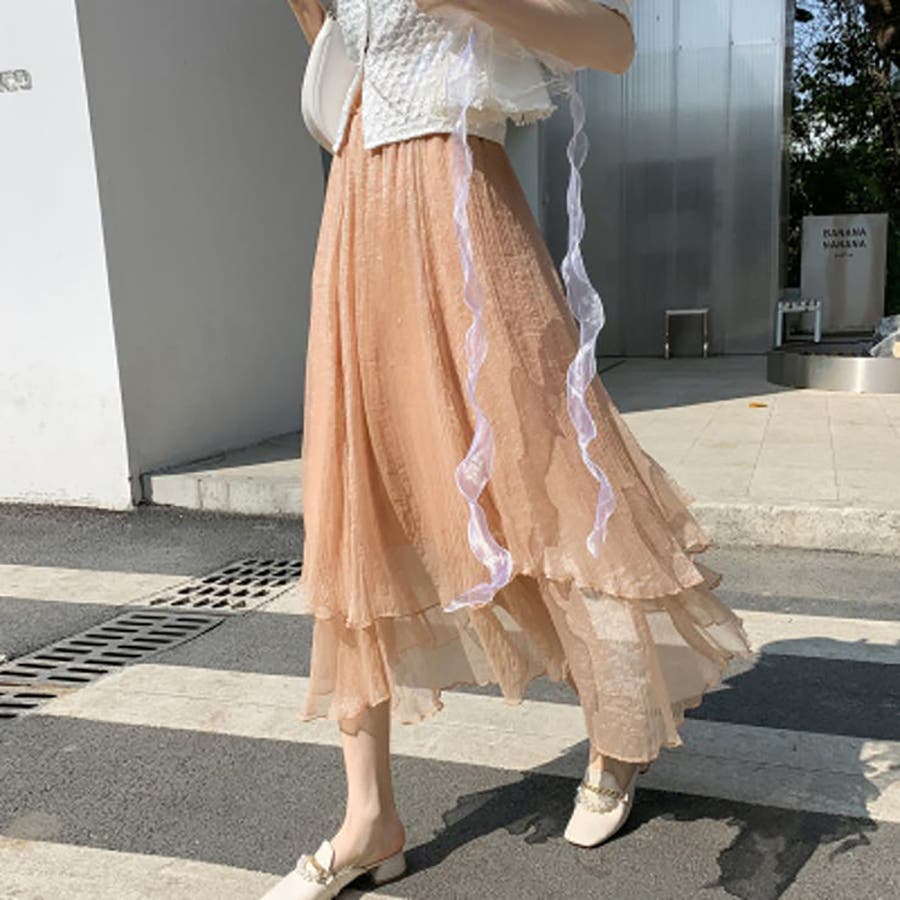 イレギュラーヘム シフォンフレアスカート【韓国ファッション】【春夏新商品】