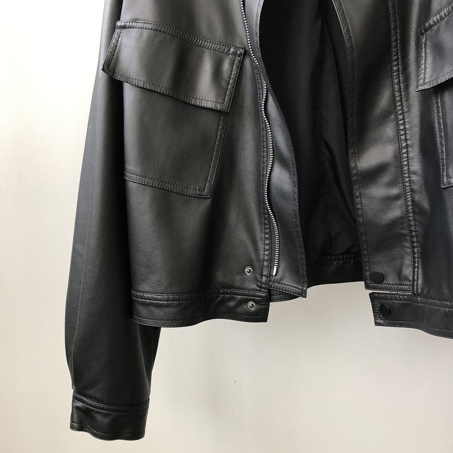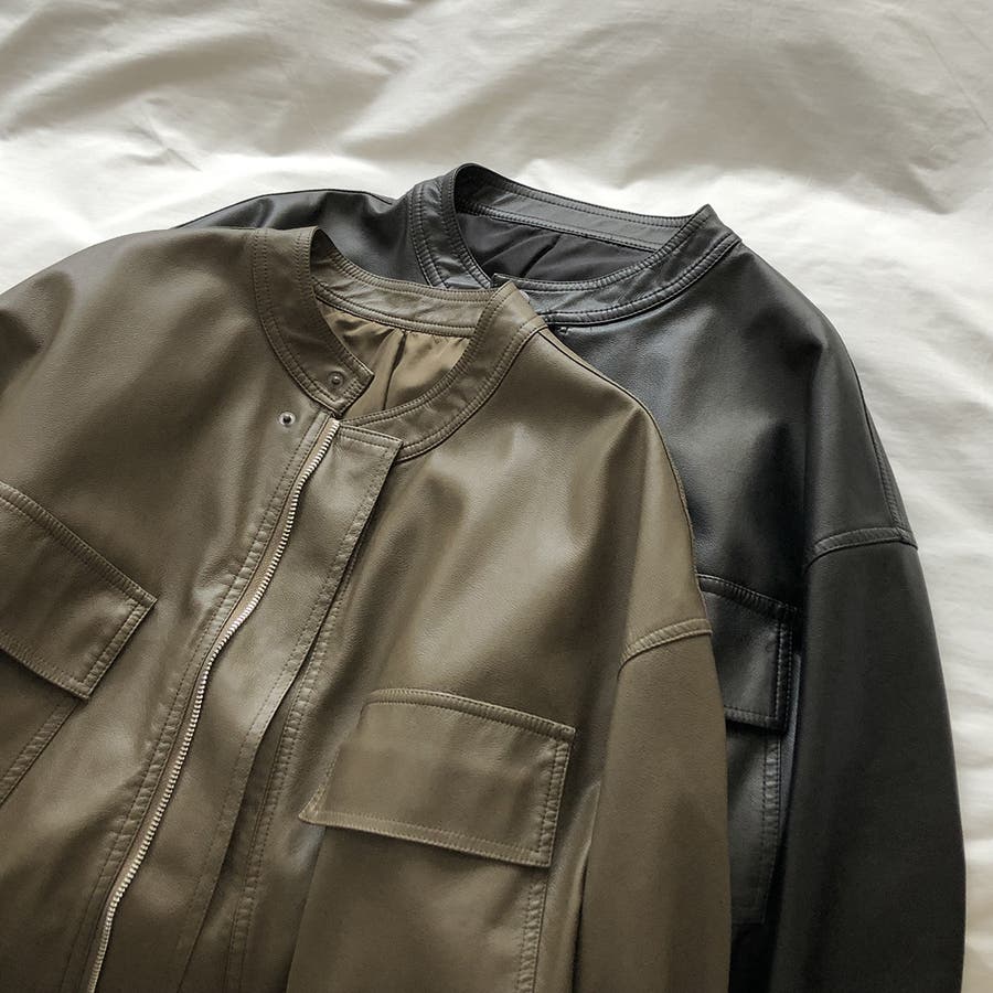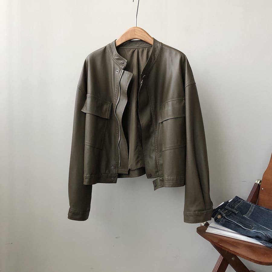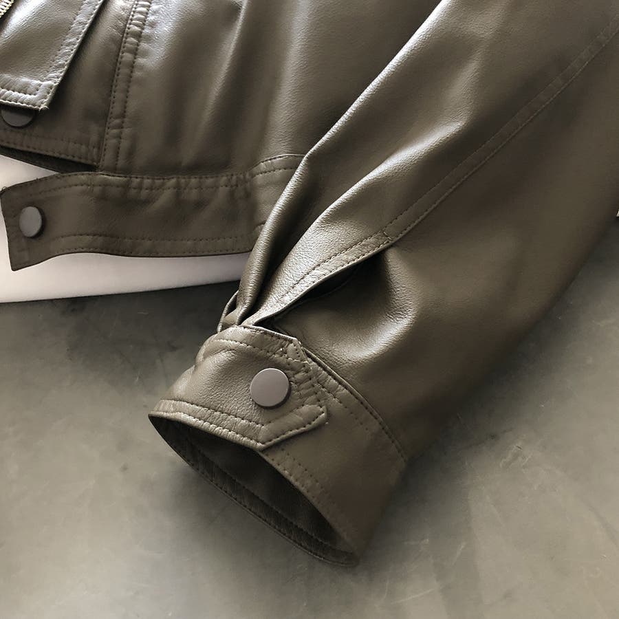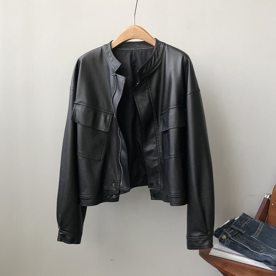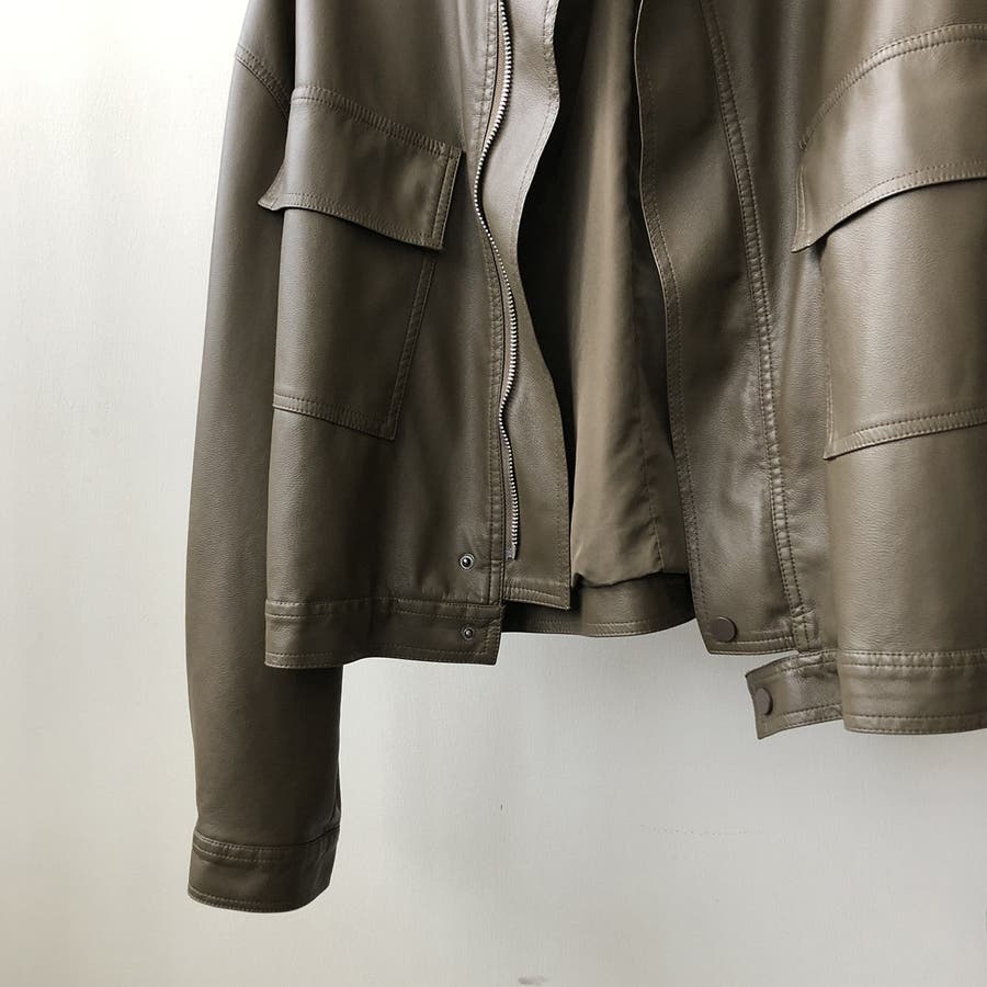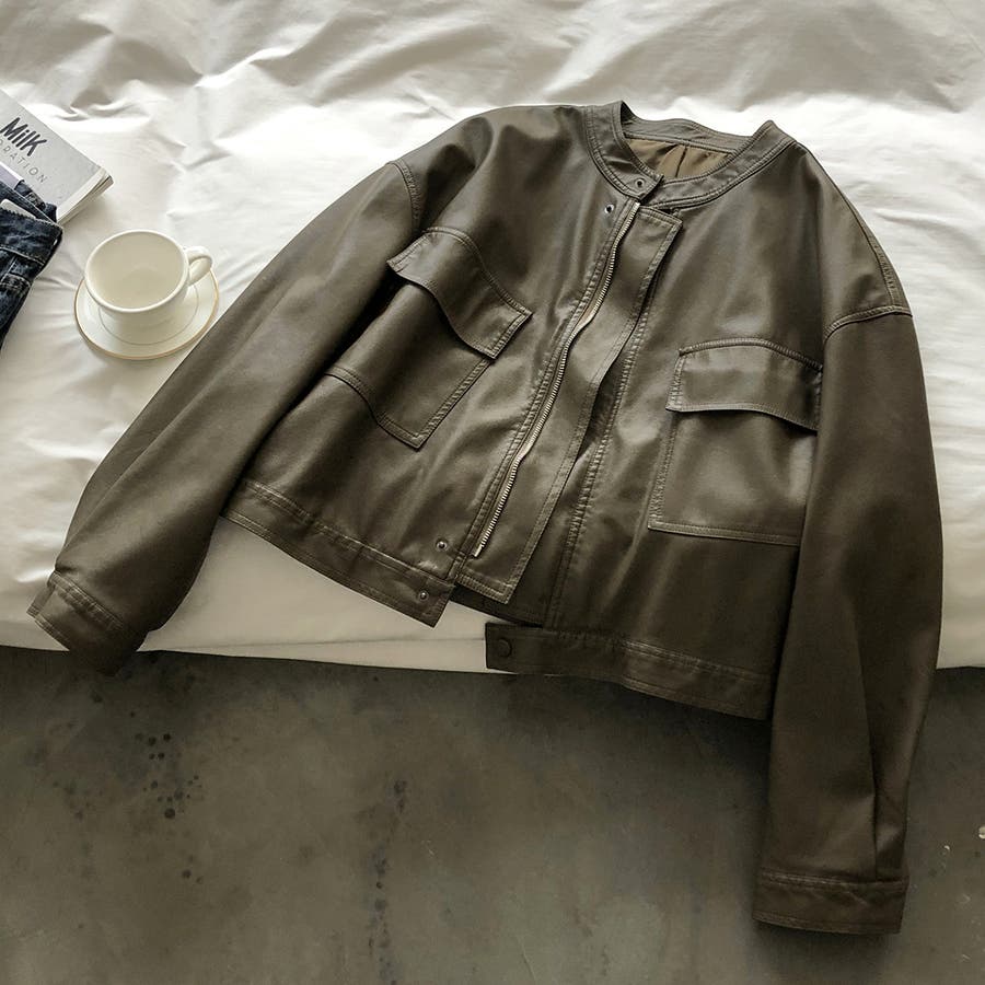 韓国ファッション 大人 春 夏 秋 冬 オフィスカジュアル 春服 夏服 秋服 冬服 事務服 通勤 上品 アウター フェイクレザー ブルゾン 韓国コーデ