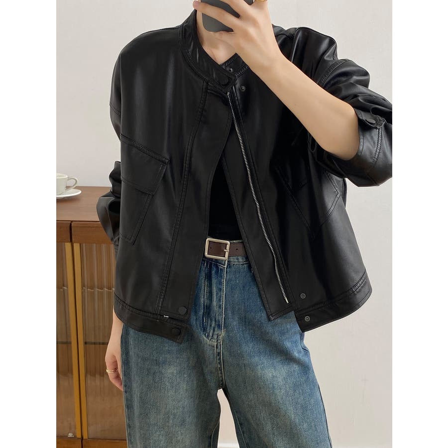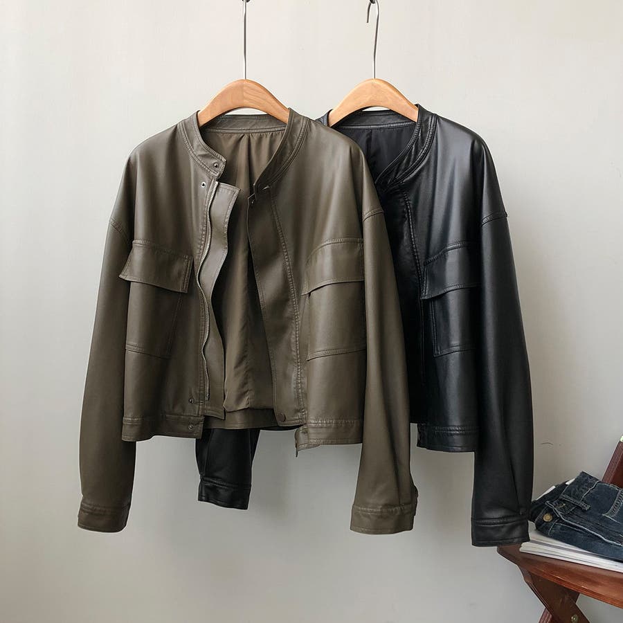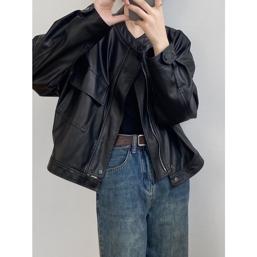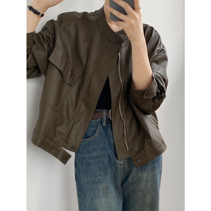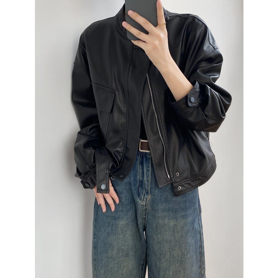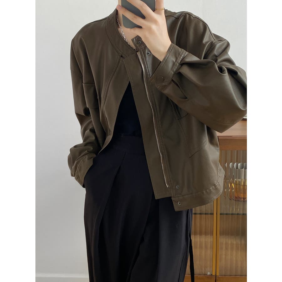 絶妙なサイズ感。PUエコレザーノーカラージャケット