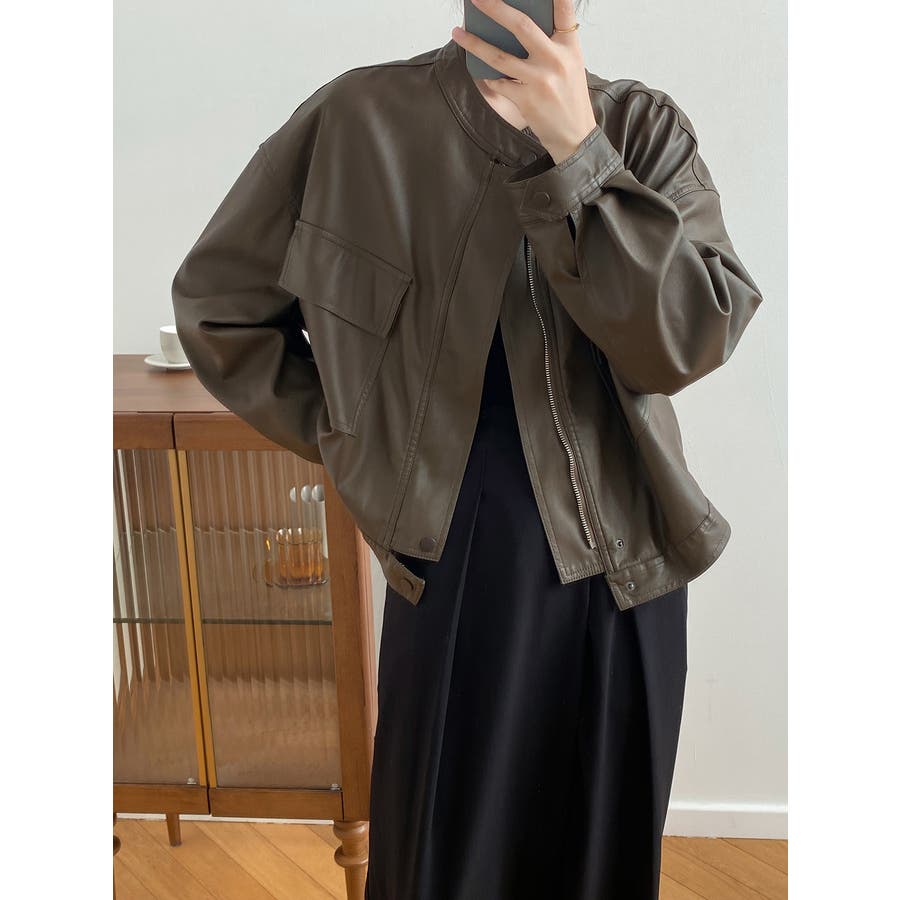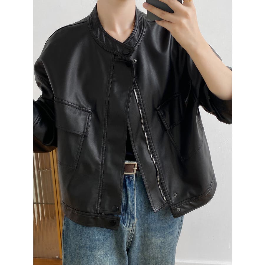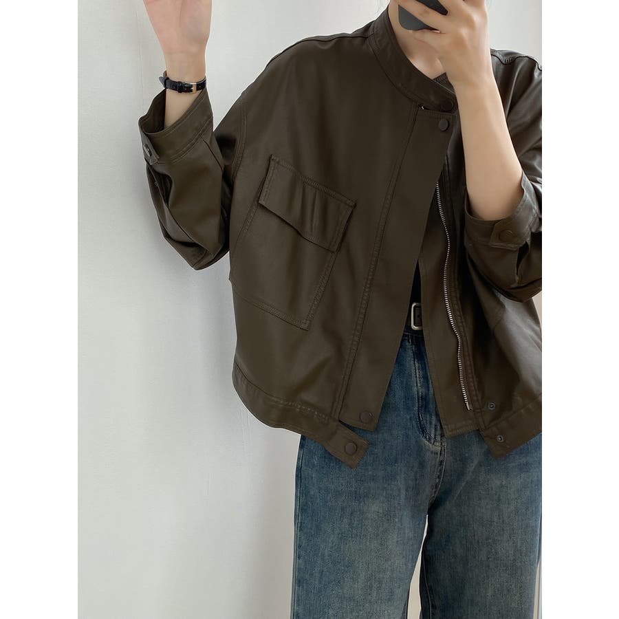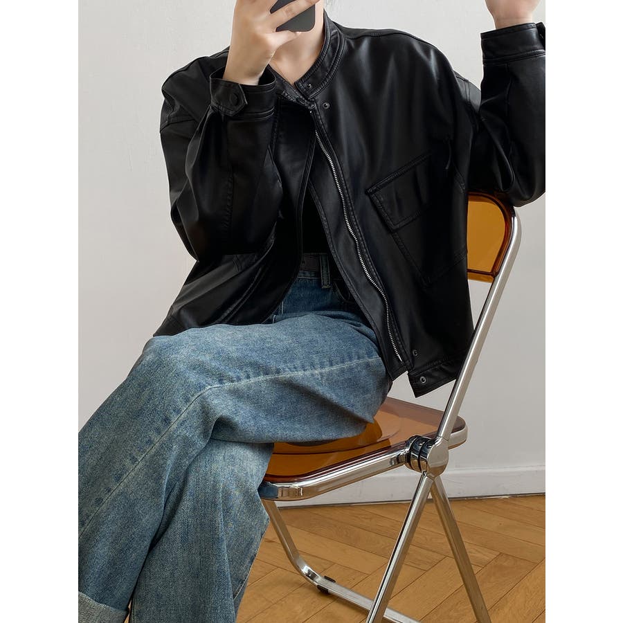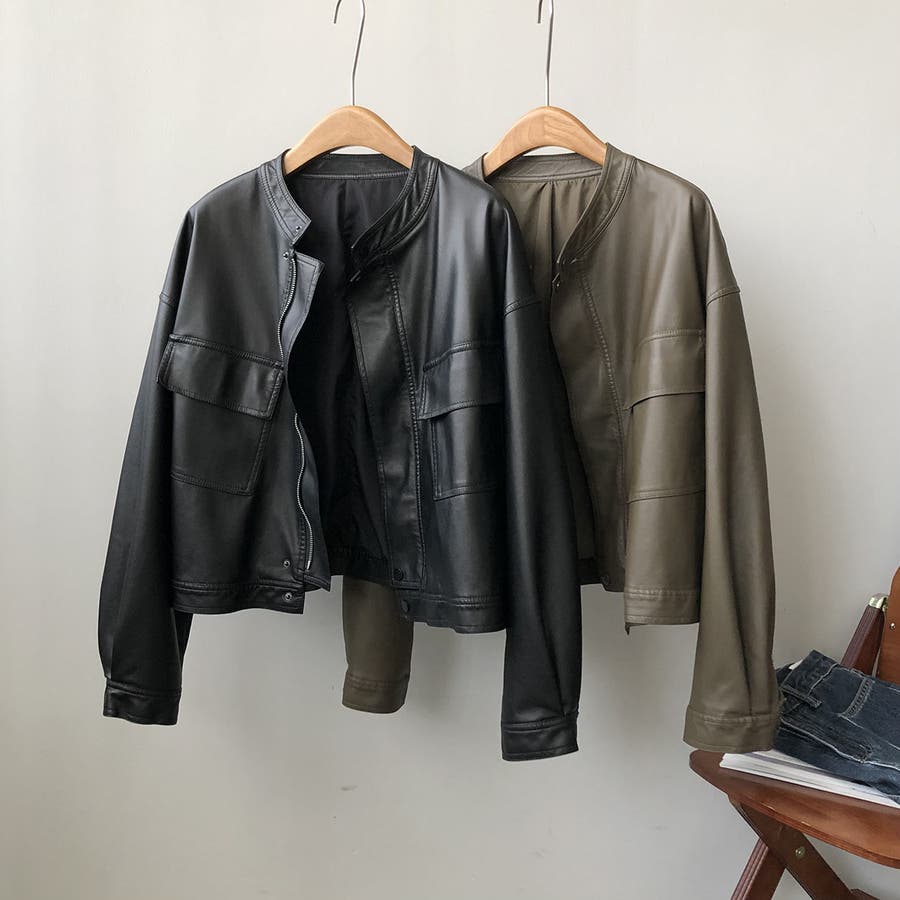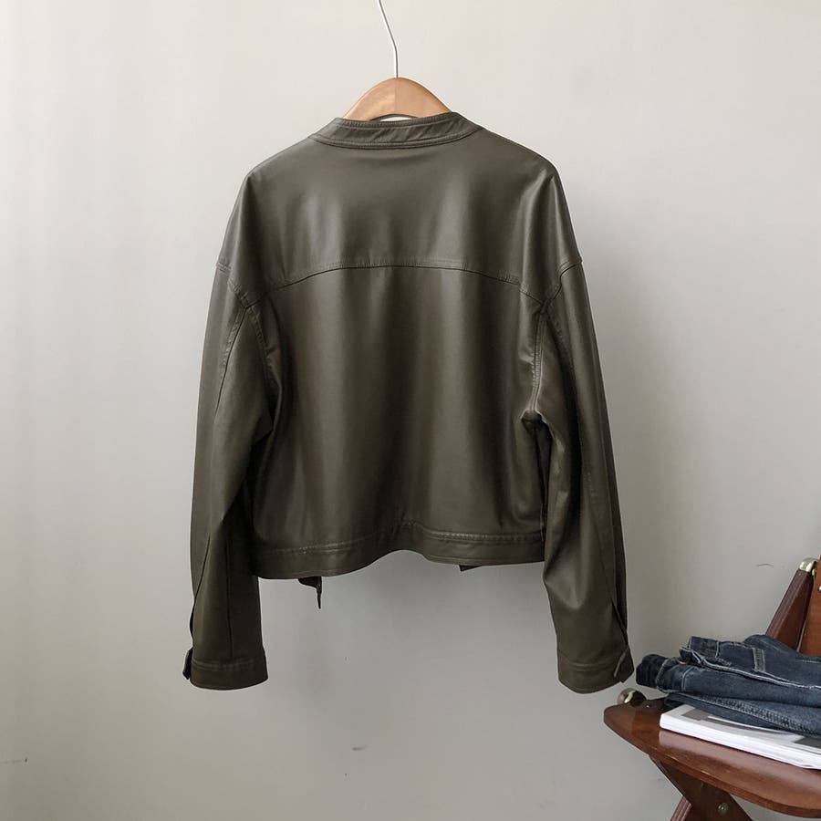 絶妙なサイズ感。PUエコレザーノーカラージャケット