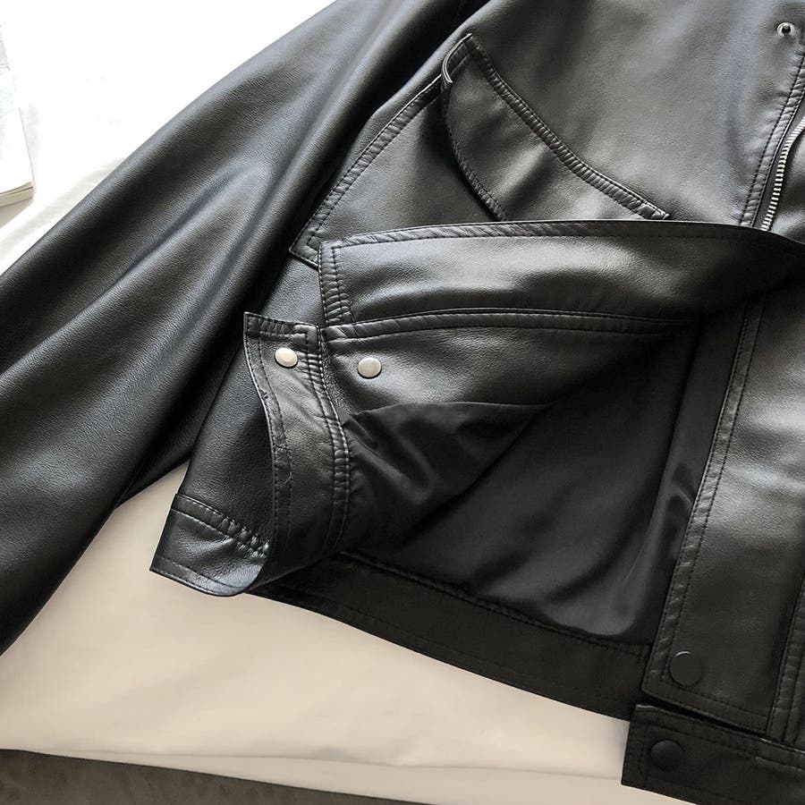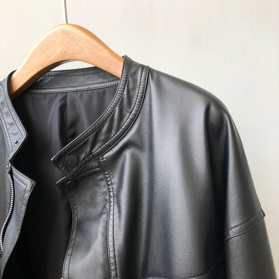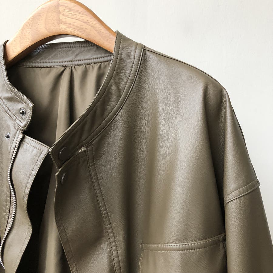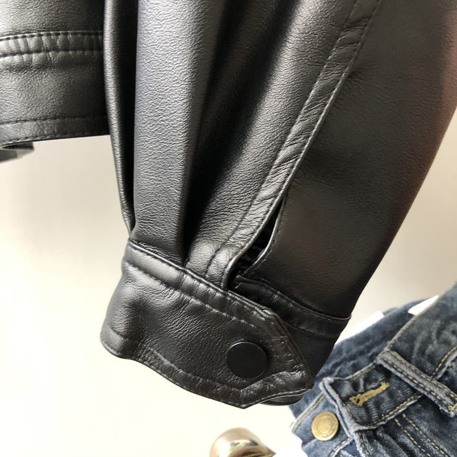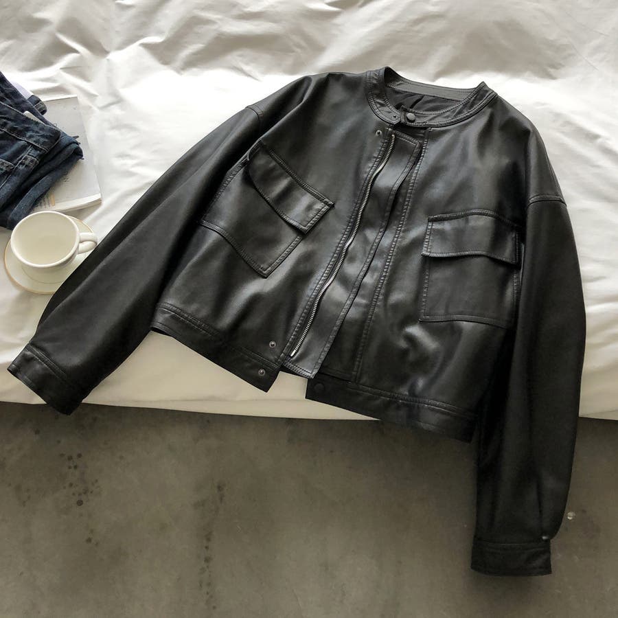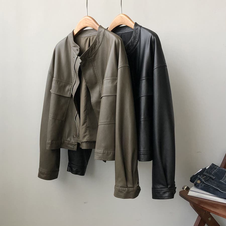 絶妙なサイズ感。PUエコレザーノーカラージャケット