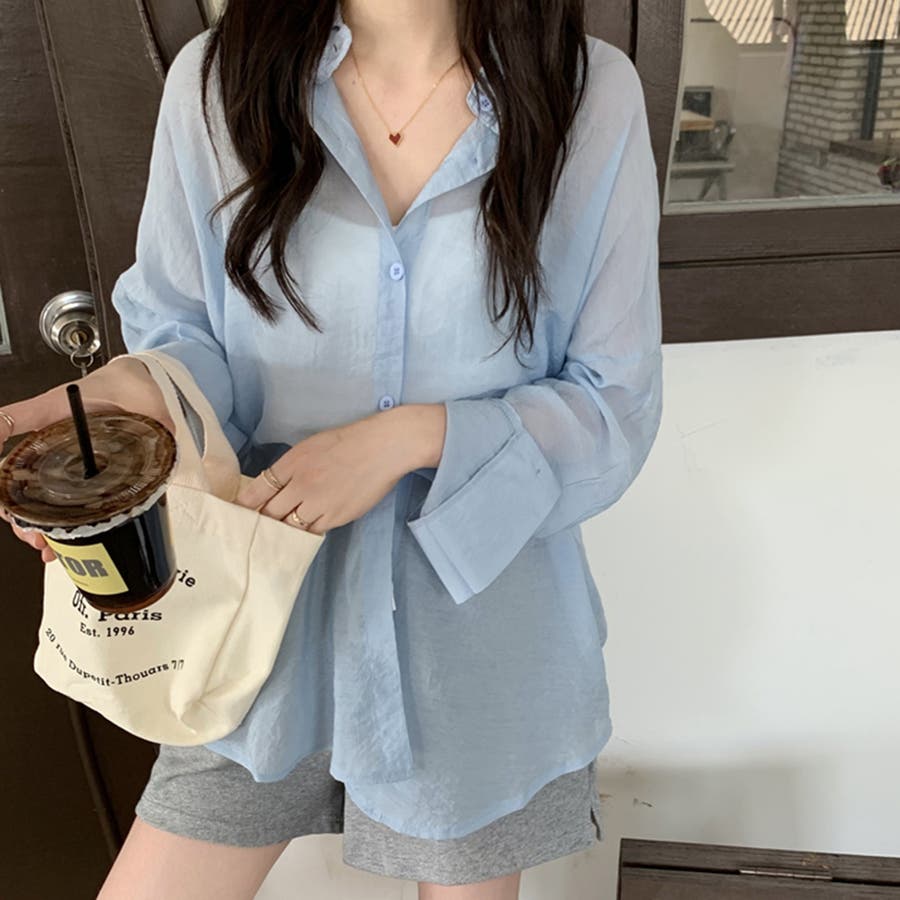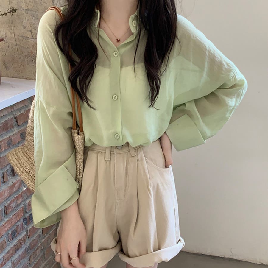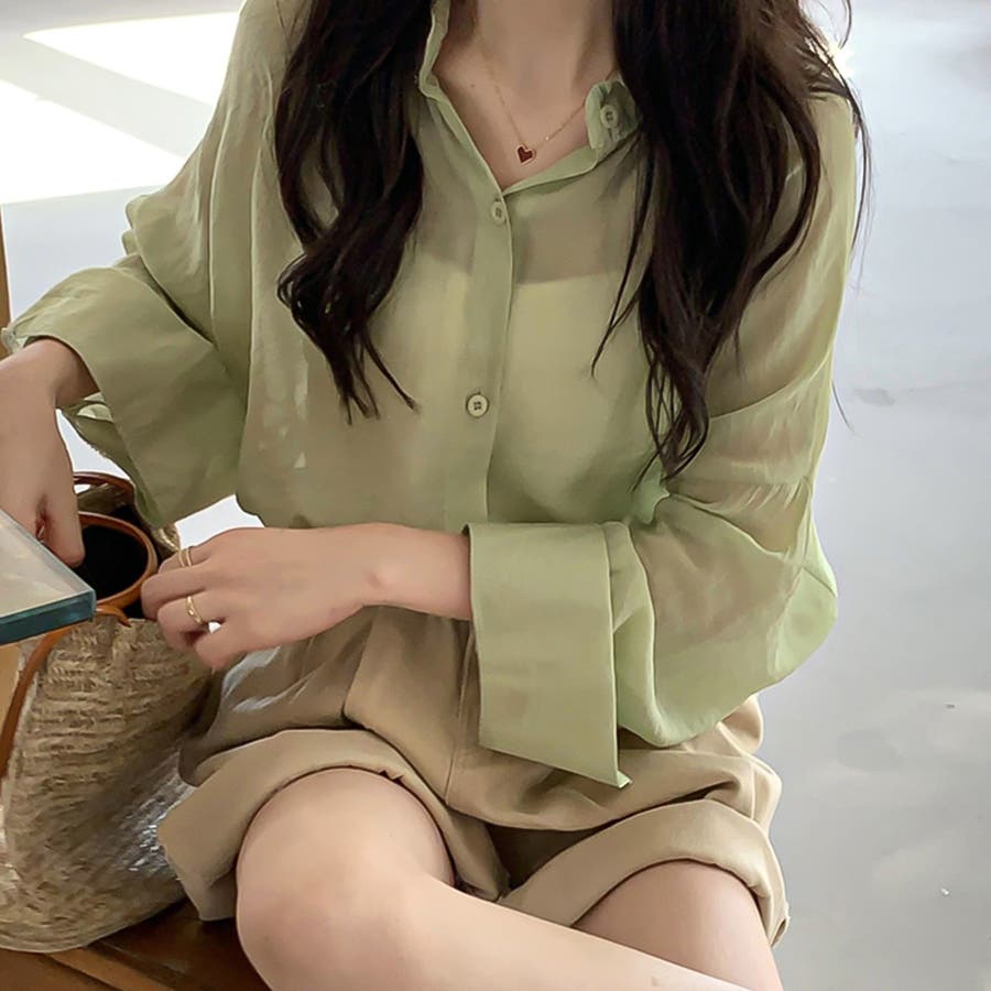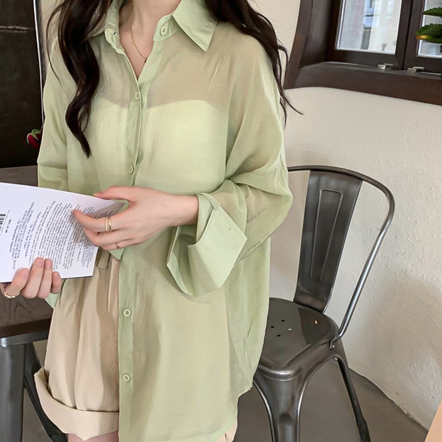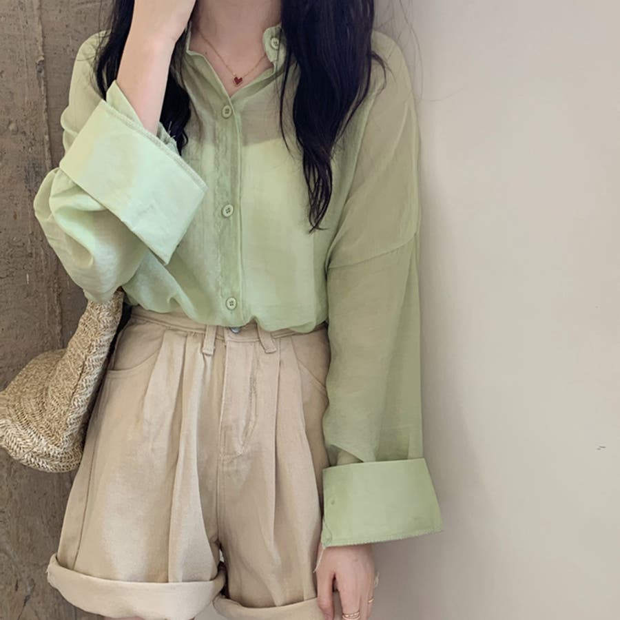 ・ヘルシーに肌見せ叶うシャーベットカラーシアーシャツ