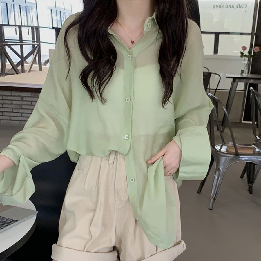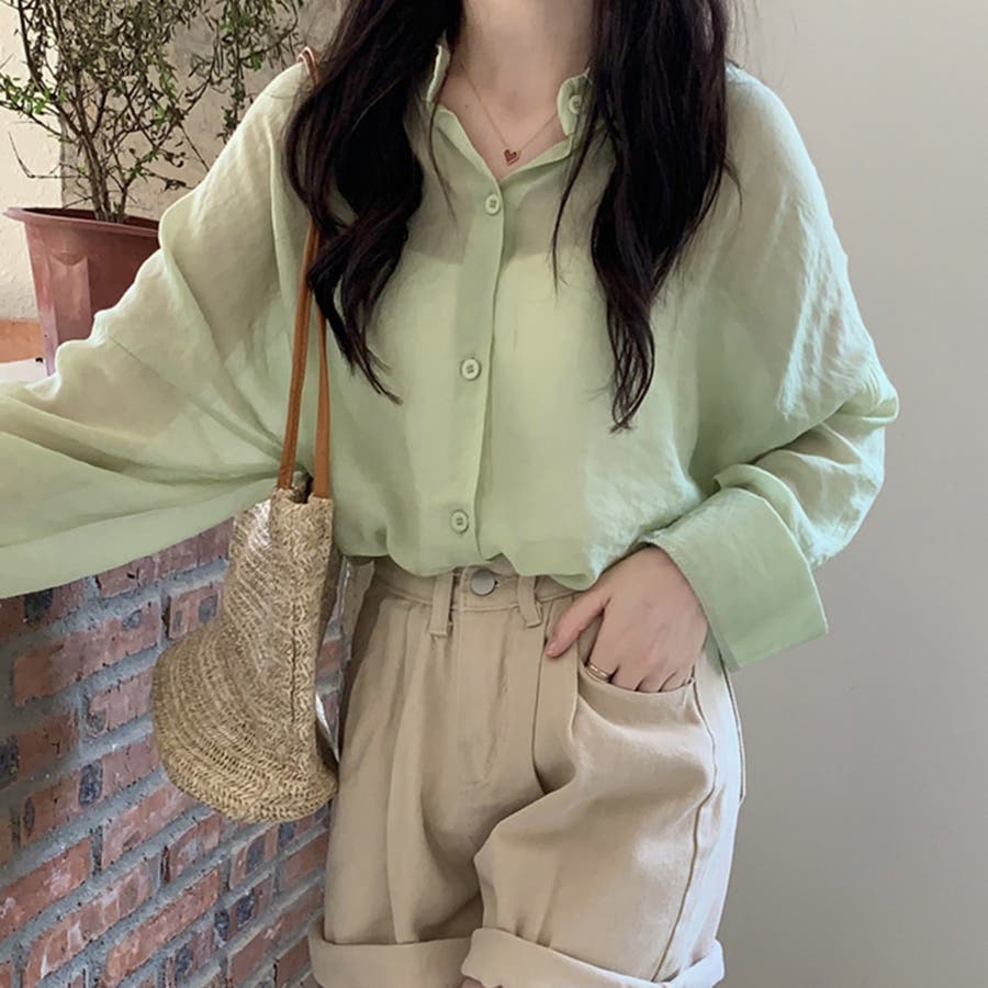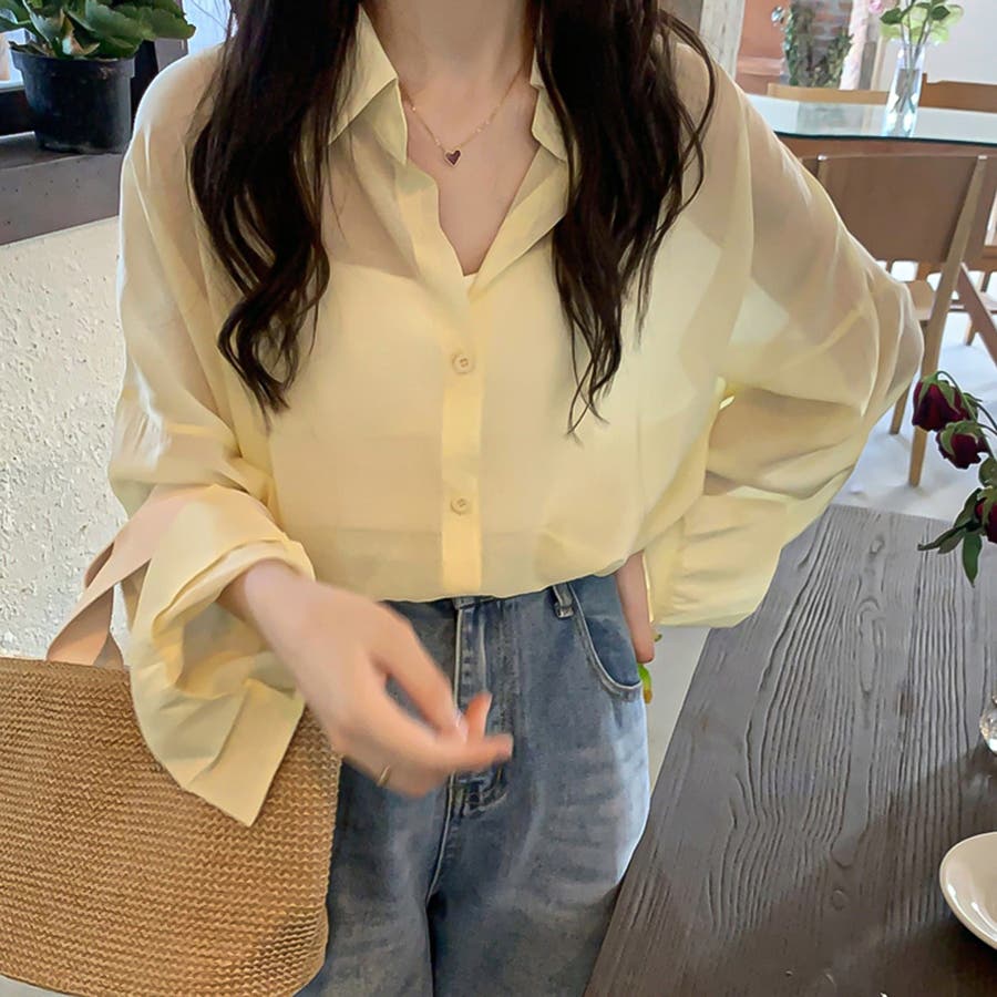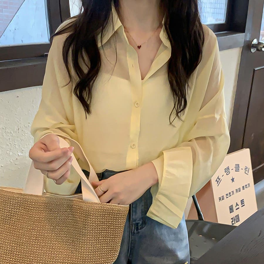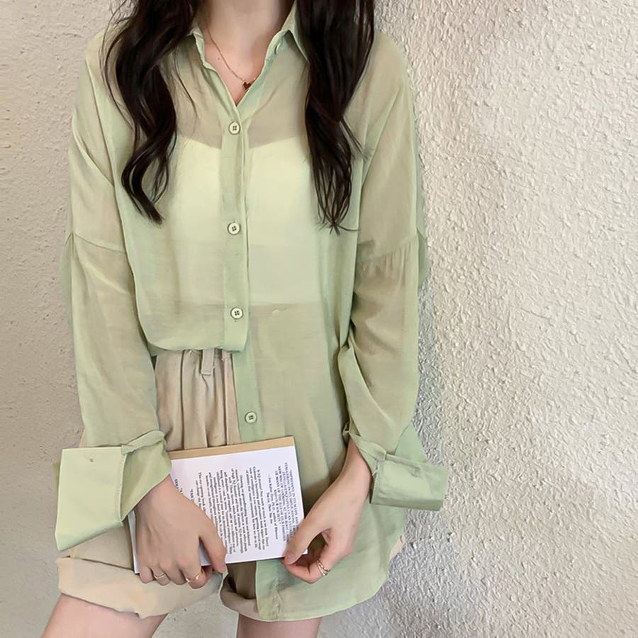 ・ヘルシーに肌見せ叶うシャーベットカラーシアーシャツ