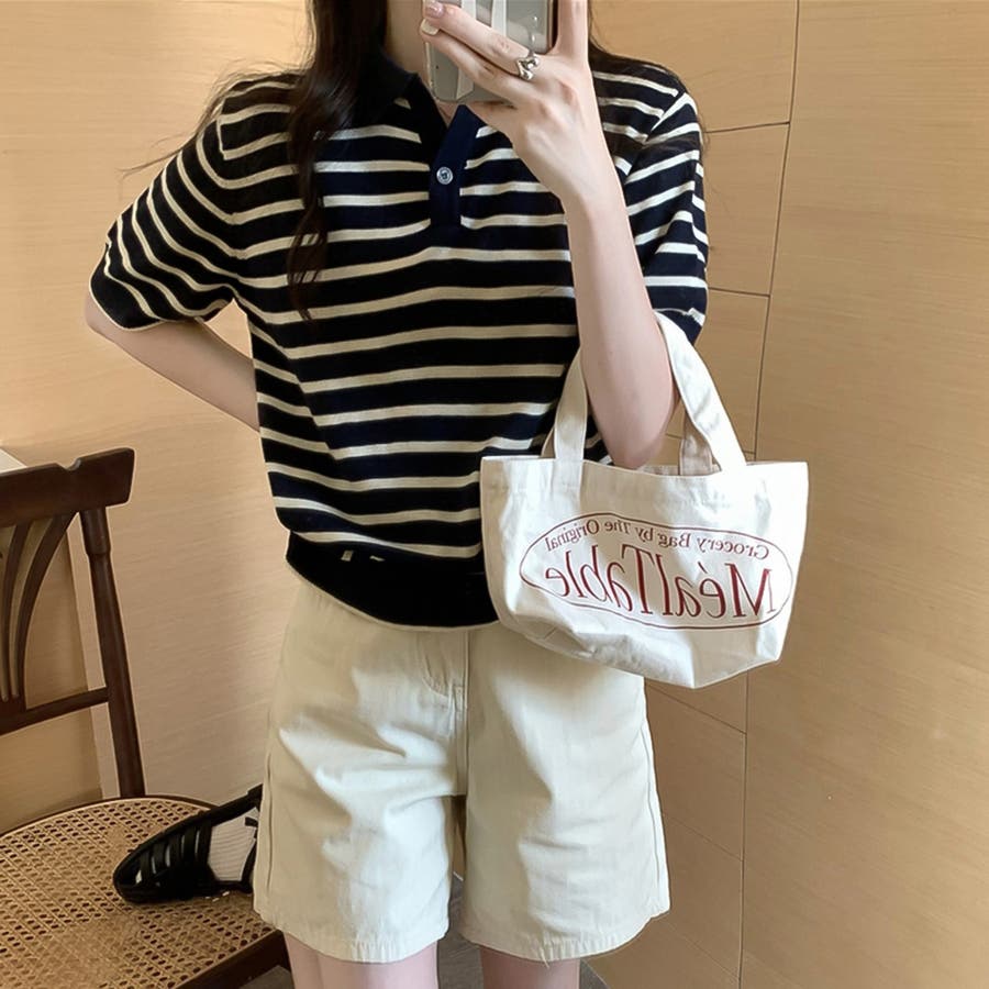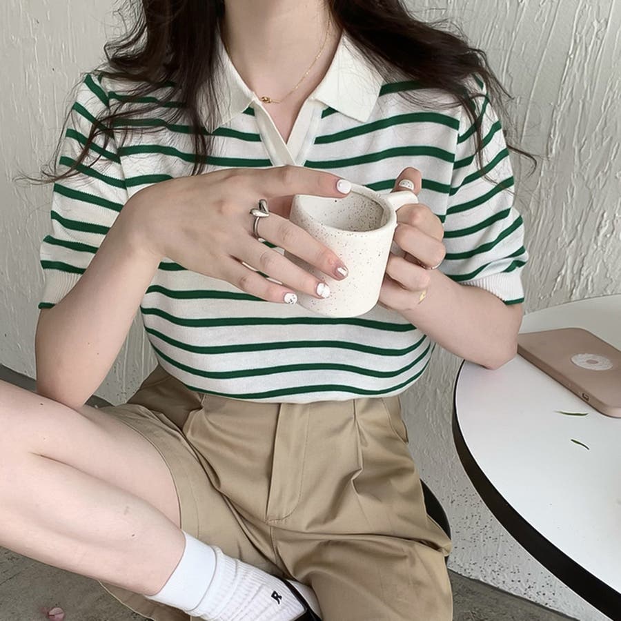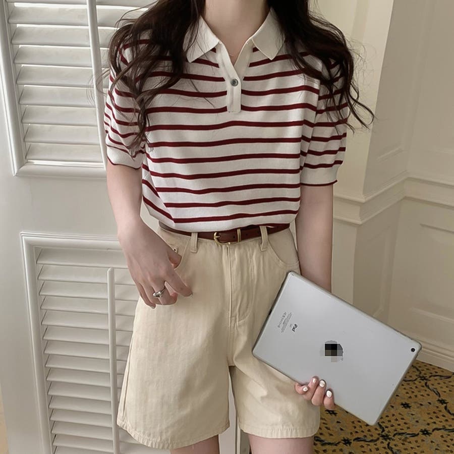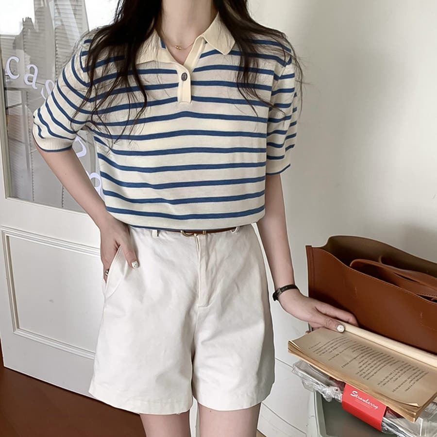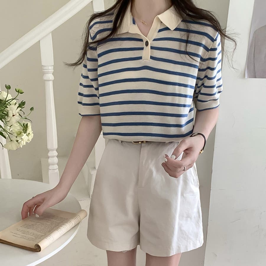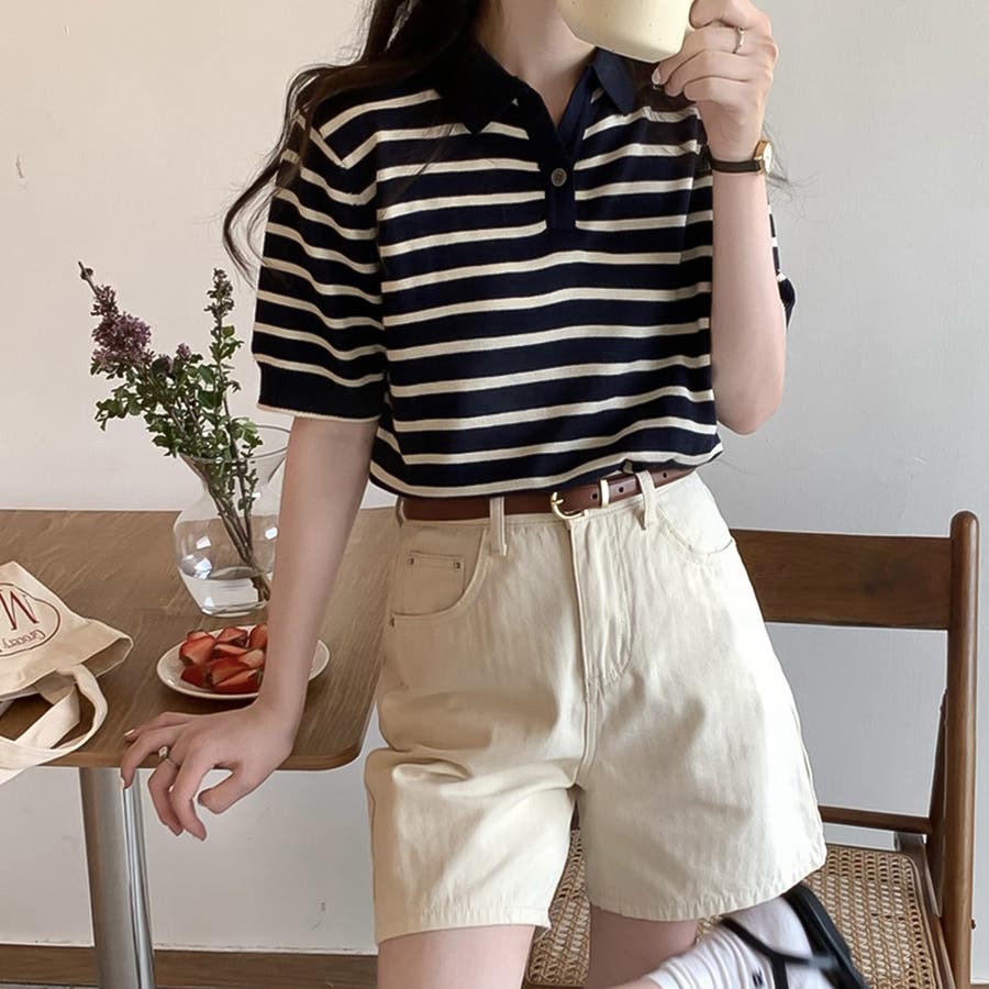 さわやかなマリンスタイルには欠かせないボーダー柄トップス。