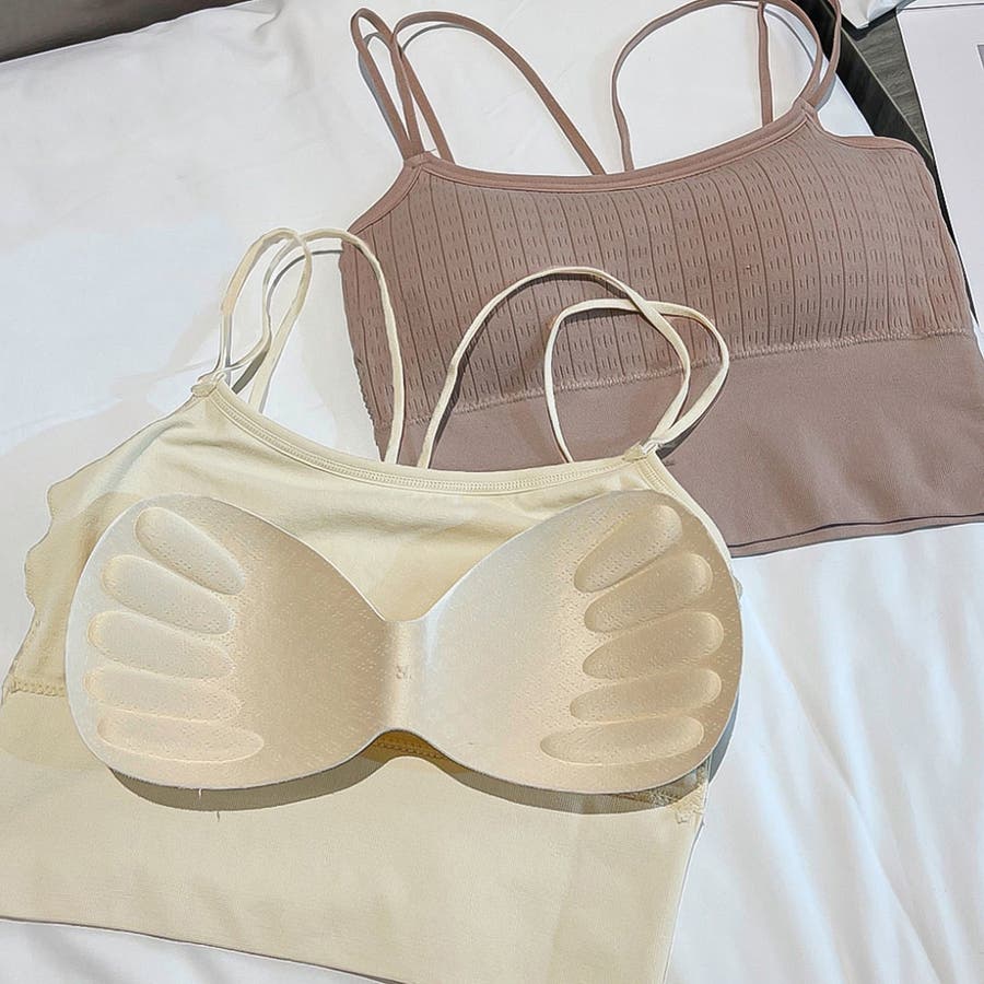 ストレスフリーなノンワイヤー設計で伸縮性のある素材が体にフィットします。