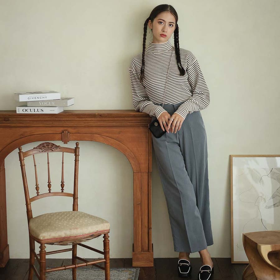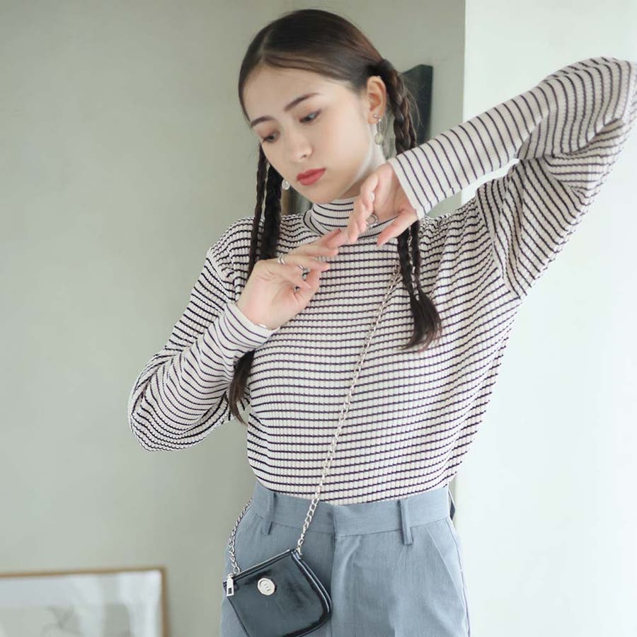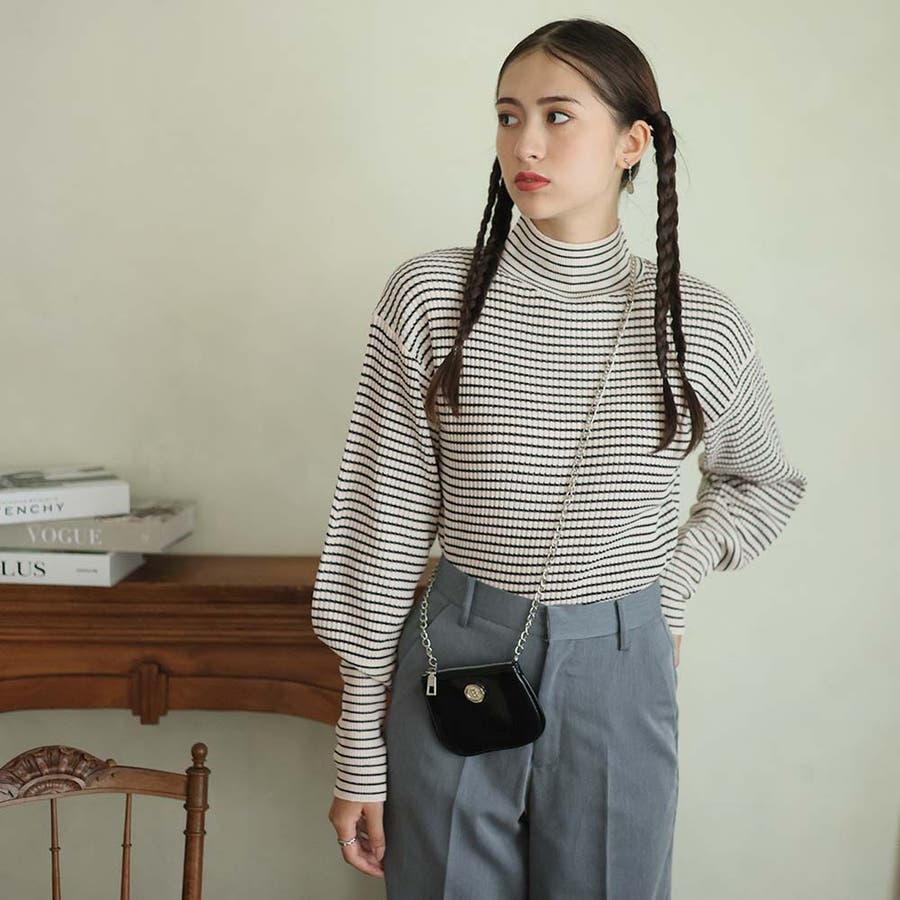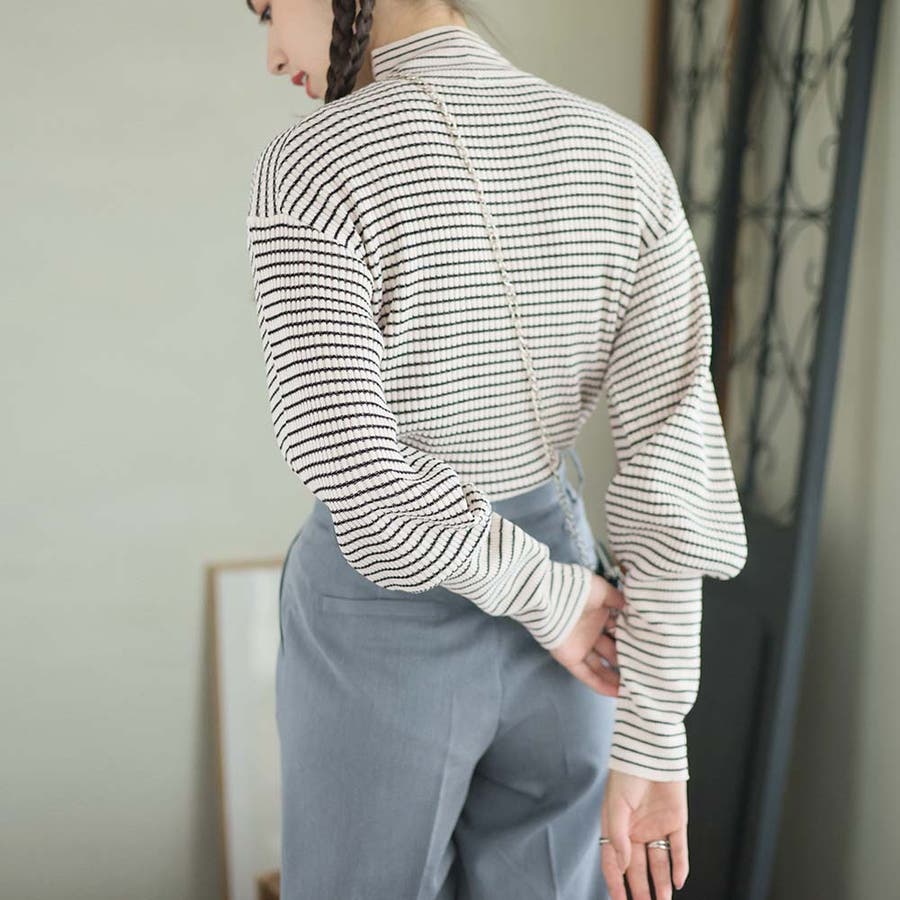 ・ドロップショルダーとボリュームスリーブがアクセントに。