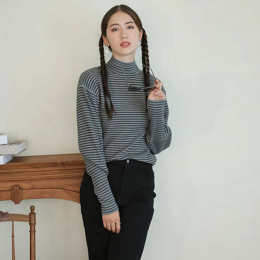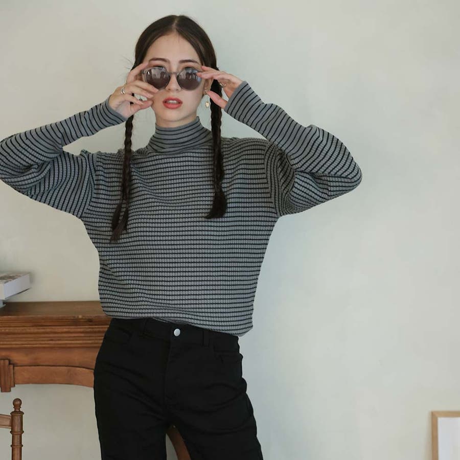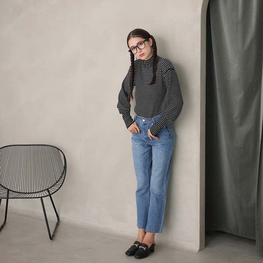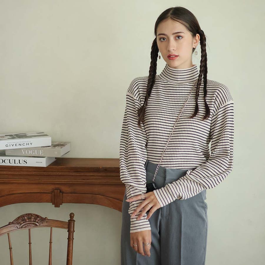 ・ドロップショルダーとボリュームスリーブがアクセントに。