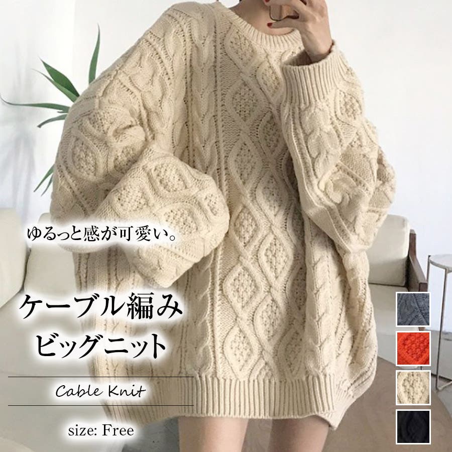 ざっくりケーブルニット・セーター【韓国ファッション】
