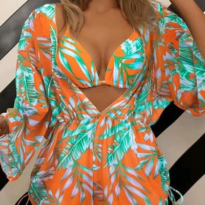 水着3点セット シアーサロペット&ビキニ【韓国ファッション】