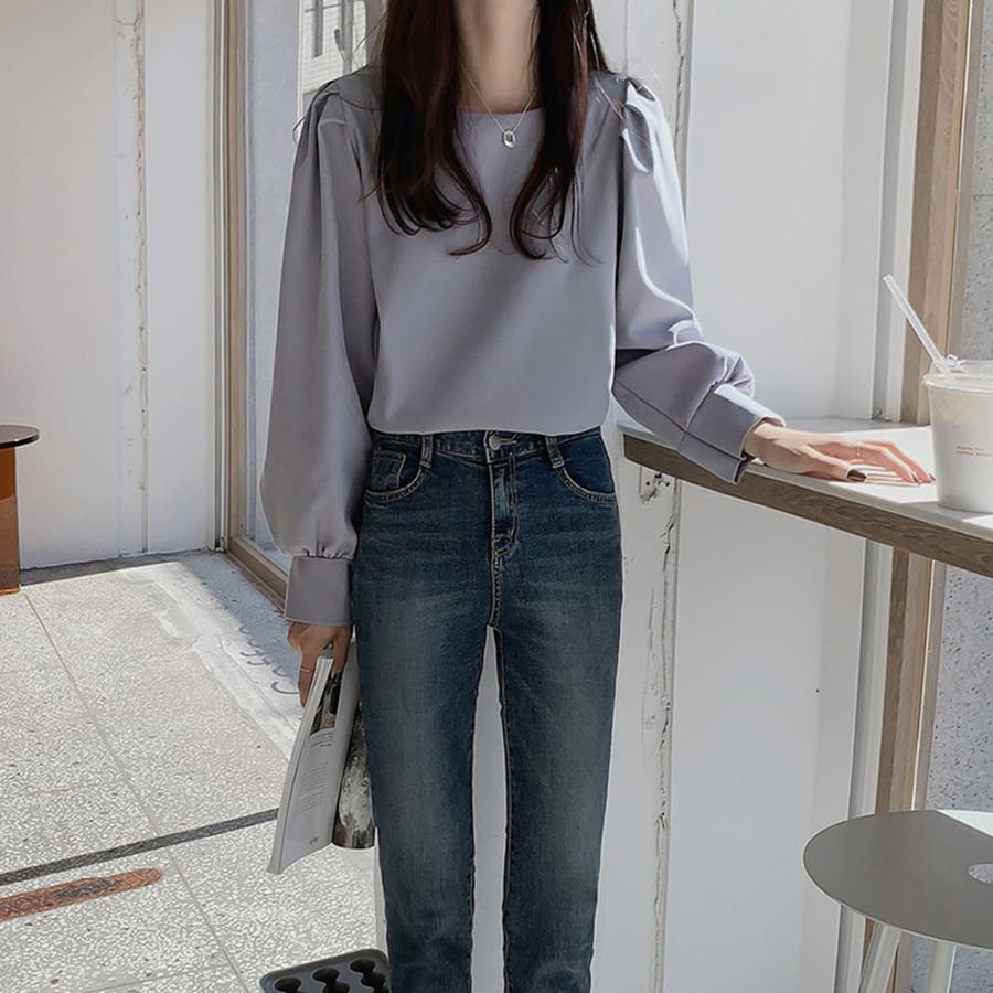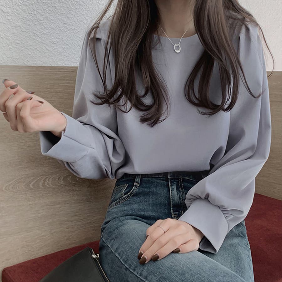 ギャザーボリューム袖ブラウス【韓国ファッション】