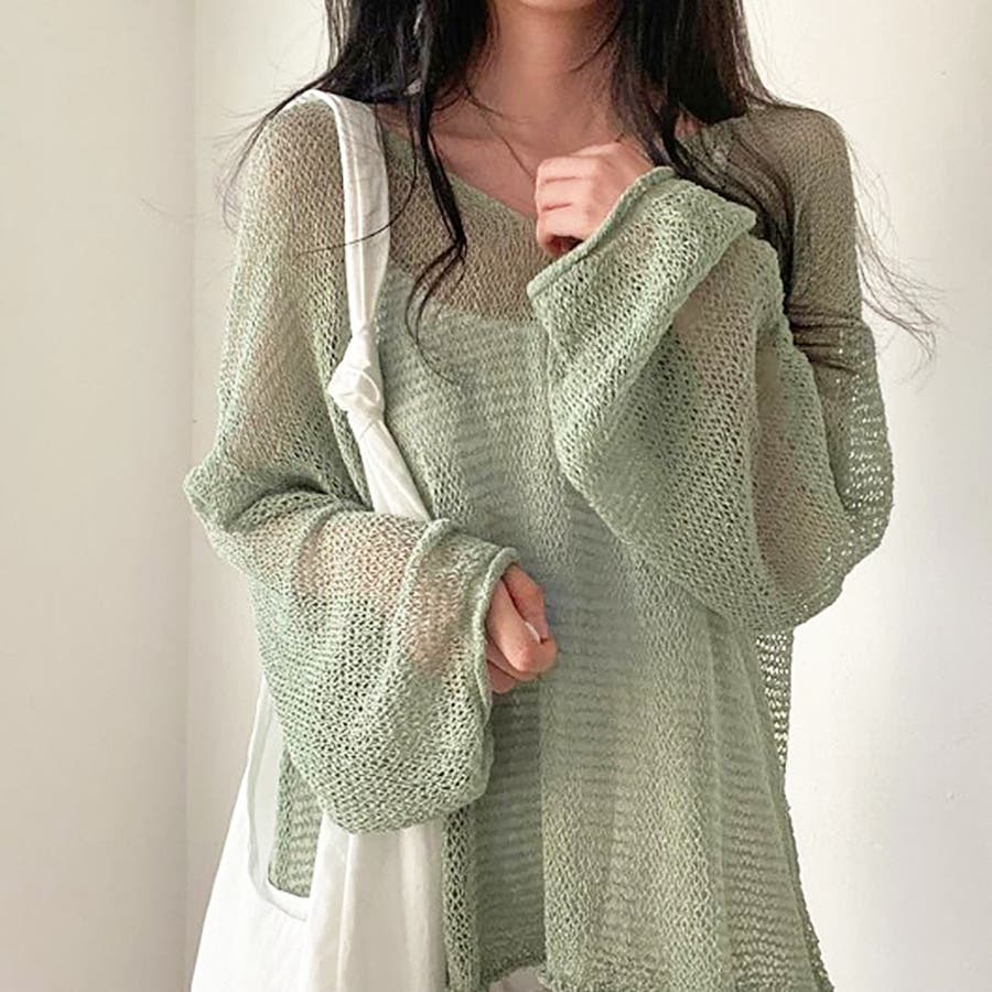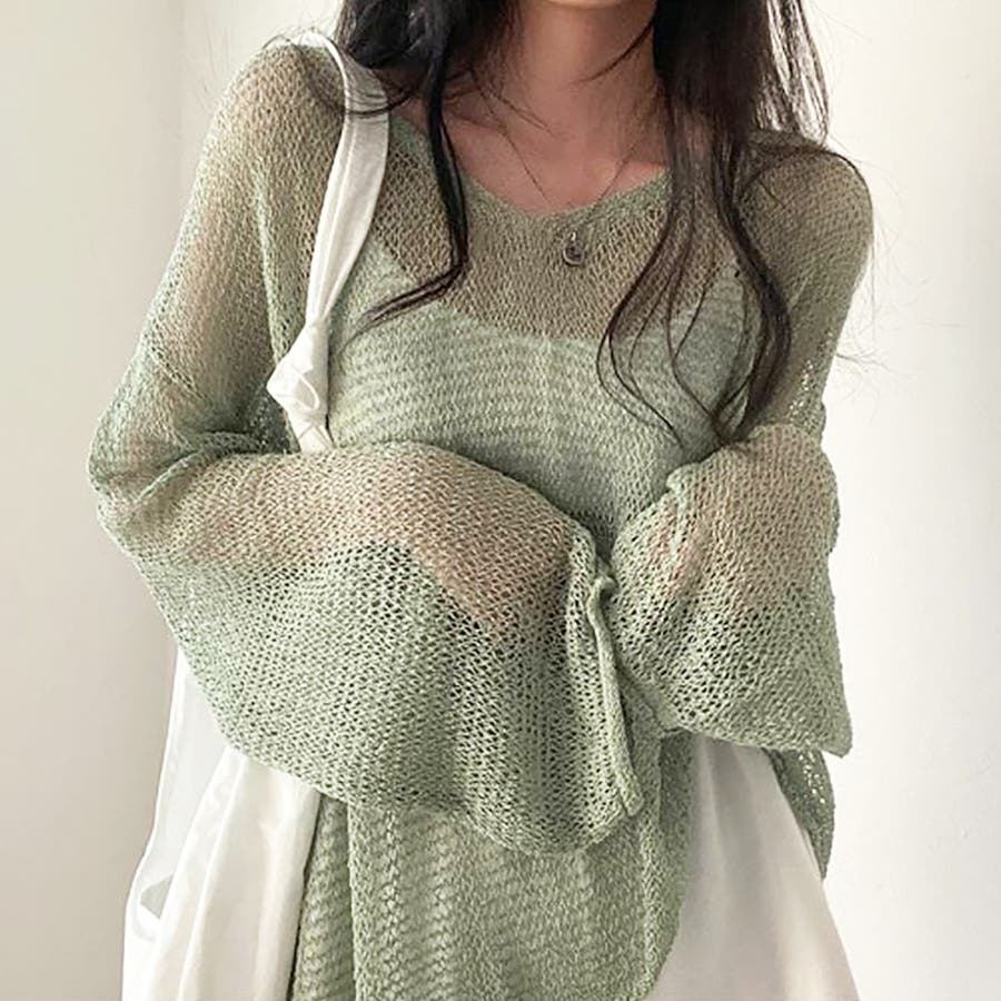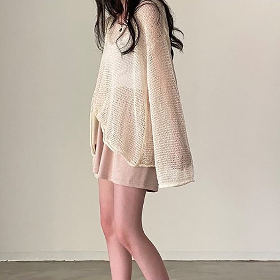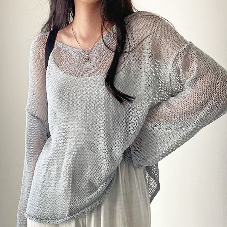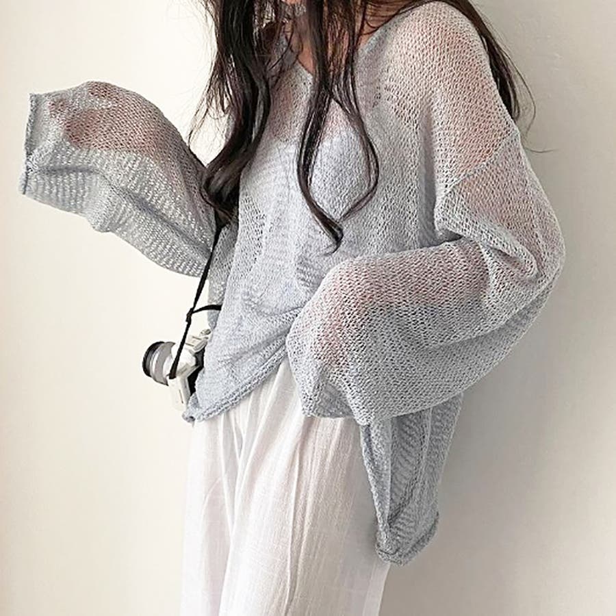 メッシュ編みでシアーな透け感を楽しめるプルオーバー